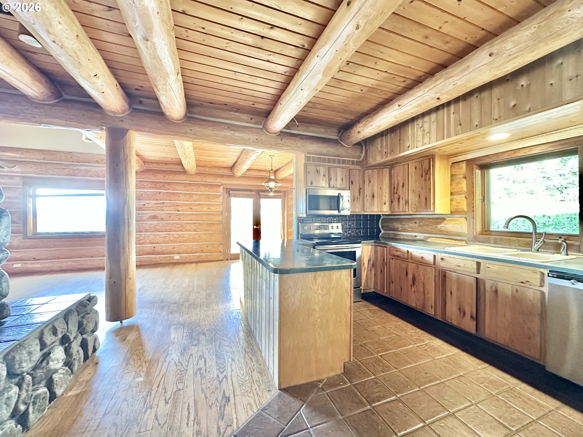 Stunning Log Home with Views, Shop, and Room for RVs!This three-level log home offers breathtaking views of the Coast Range, nearby vineyards, and golf course. New exterior paint through out. The property features a spacious 90x36 shop with an office, ample space for RVs and vehicles, and the potential for dual living. Shop currently built into few rooms but it's easy to convert it back. Enjoy low utility costs with efficient electricity just under $80/month and propane averaging $2,000/year. The quiet neighborhood provides privacy while still offering easy access off Highway 22. Experience the changing weather, beautiful sunsets, and local wildlife from your own backyard.Additional highlights include a 2,500-gallon water holding tank installed in February 2021 and Sept. land providing extra privacy.Come to check out this beautiful log home and make it yours. More photos are coming....