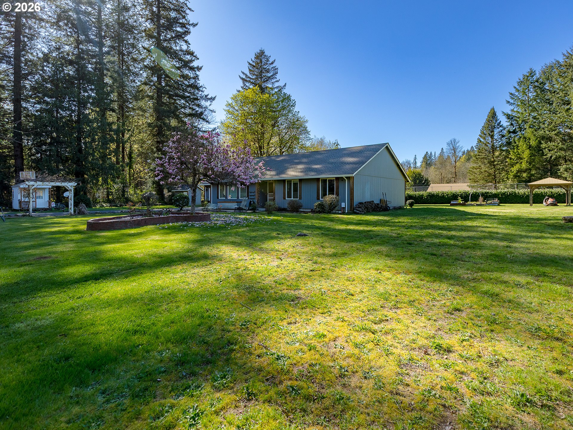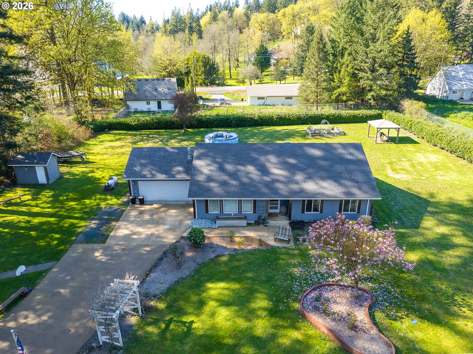 Welcome home to this charming and thoughtfully updated single-level residence, offering 3 bedrooms and 2 bathrooms—perfect for starting your next chapter. The inviting living room features a cozy propane stove, creating a warm and welcoming atmosphere year-round. The kitchen is both stylish and functional, highlighted by beautiful granite countertops that add a touch of elegance to the space. Recent upgrades include a new roof (2021) and updated flooring (2024), providing comfort, style, and peace of mind. Situated on a spacious and level 0.97-acre lot, the property offers endless potential for outdoor living, or future expansion. The raised garden beds and mature berry bushes makes this a great area to build a grand gardening space. The garage adds versatility with a pellet stove—ideal for a workshop, hobby space, or additional heated storage. Nestled on a quiet street and conveniently located near the local market for everyday essentials, this home blends charm, comfort, and opportunity in a desirable setting. Don’t miss your chance to make this inviting property your own!