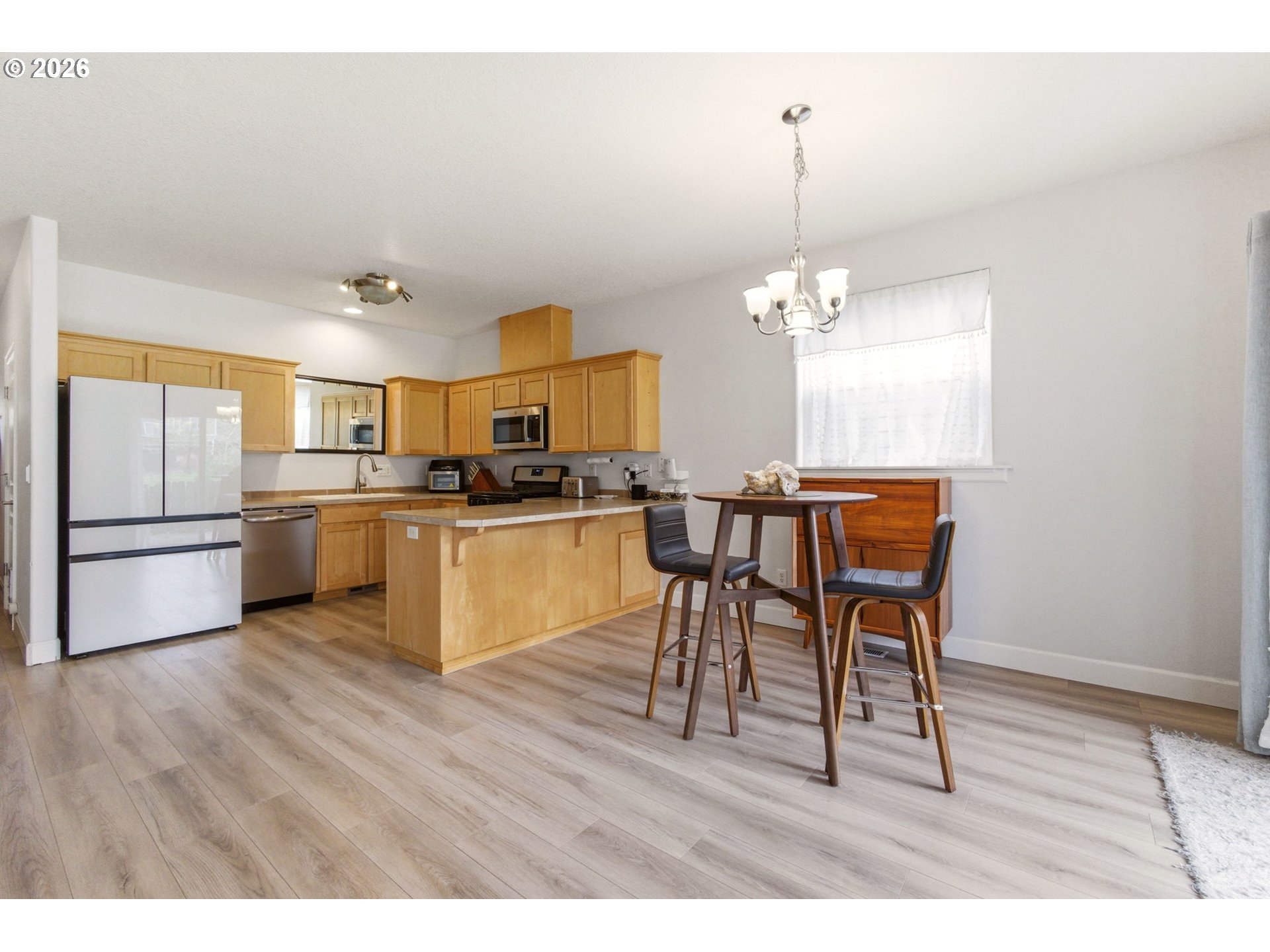 Why should one person get the better suite? In this thoughtfully designed townhome, two primary bedrooms, each with its own walk-in closet and private bath, make the layout especially appealing for shared living, long-term guests, or anyone who appreciates a little extra breathing room. The main level is warm, open, and easy to live in, with the kitchen, dining area, and living room all flowing together in a way that keeps everyday life feeling connected. The kitchen offers generous space to spread out, a breakfast bar for casual meals or conversation, and the added bonus of all appliances staying. Recent updates add even more value, including a 1 year new roof, BRAND NEW paint, newer appliances, and newer flooring. An electric car charger, complete with a wall box and mobile charger, brings added convenience for modern living. Near the entry, a convenient guest half bath adds function, while the oversized under-stair storage is the kind of feature people fall in love with, roomy, unexpected, and perfect for tucking away everything from seasonal décor to Costco runs. Harry Potter references may be unavoidable. A one-car garage, easy-care living, and a private back patio with Oregon Cascade views round out the appeal. Practical, comfortable, and just the right amount of fun, this townhome makes smart use of space in all the right ways.