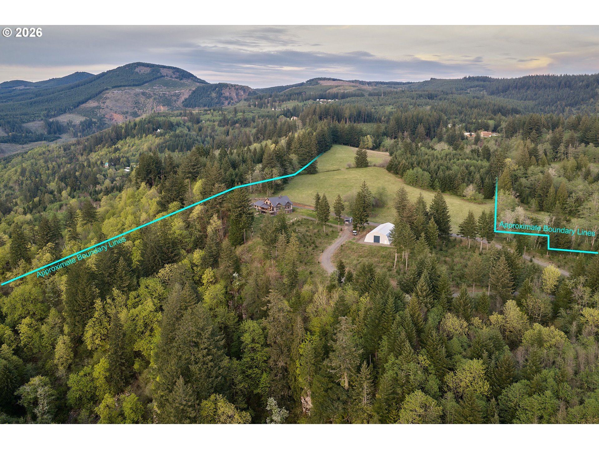 Welcome to the apex property of Washougal. Never has a more unique and astounding estate touched the market here. A 73 acre property encompassing wildly different terrains from rolling meadows, dense mature forests, massive boulder fields, a towering waterfall along a long basalt cliff, and expansive views for many, many miles. Currently 4 separate lots all zoned R-5, the residence is on its own nearly 50 acre lot, while the other 3 buildable lots add an additional 23 acres. Set right at the top of the bluff overlooking most of Washougal is an equally impressive home. With laminated, tongue and groove timber walls born from thermally modified Southern Yellow Pine utilizing the cutting-edge eco friendly and ultra energy efficient Enertia envelope, this bespoke luxury cabin is packed with every feature you can imagine. Two primary suites, a large multi-purpose/bunk room, cozy main living area around a huge central masonry heater fireplace, bright and airy sun room with hard-wired motorized windows, open flex space throughout the entire daylight basement, and multiple covered and open aired deck/patio spaces make all of the square footage usable for various needs. Outside you'll be amazed by the incredible 4,100 square foot Quonset hut with pull-through oversized 14' high roll-up doors. With high speed Starlink satellite internet (and fiber on the way!), a backup generator and underground 500 gallon propane tank, the wood fired masonry heater, and a large high production private well with heated oversized pump house shed, you can comfortably weather even the strongest of storms on your private compound. Reach out to your agent for a more detailed breakdown of all the incredible features of this home and property.