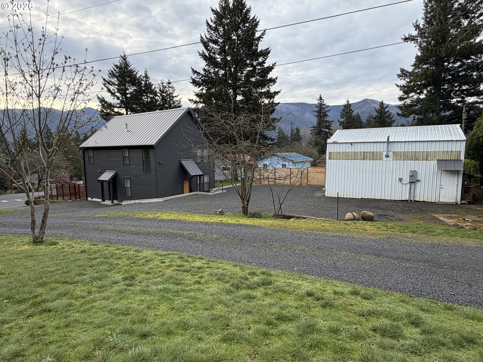 Located in the heart of the Columbia River Gorge in Stevenson Washington. This beautifully built 2023 residence offers the perfect blend of modern comfort and smalltown charm. Just a few short blocks away from local shops, award-winning breweries, restaurants and the vibrant Columbia River waterfront. This spacious 3-bedroom home plus dedicated office features 1,979 square feet of thoughtfully designed living space. Ideal for multi-generational living or income producing with flexible main and 2nd story living options! The main level features a full setup with 2 bedrooms, kitchen, living, laundry hook-ups and a full bath. The upstairs features a bedroom, office, living room, laundry hook-ups and a kitchenette. Plus, separate entrance abilities. Situated on a generous 1/3-acre lot, the property includes a 20X20 shop, off street parking, underground utilities, and full connection to city sewer and water. Additional features include an efficient heat pump and water heater, electric vehicle charging capability, and a durable show roof designed for year-around reliability. COME HOME TO THE GORGE!