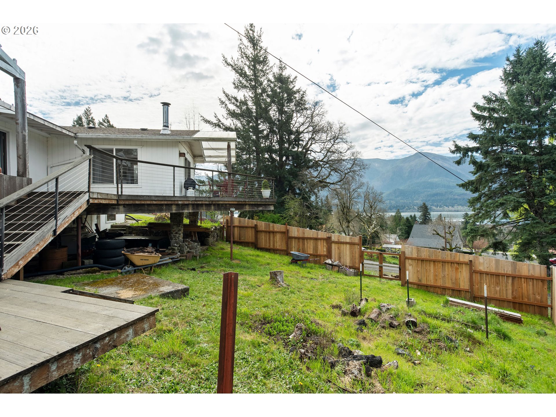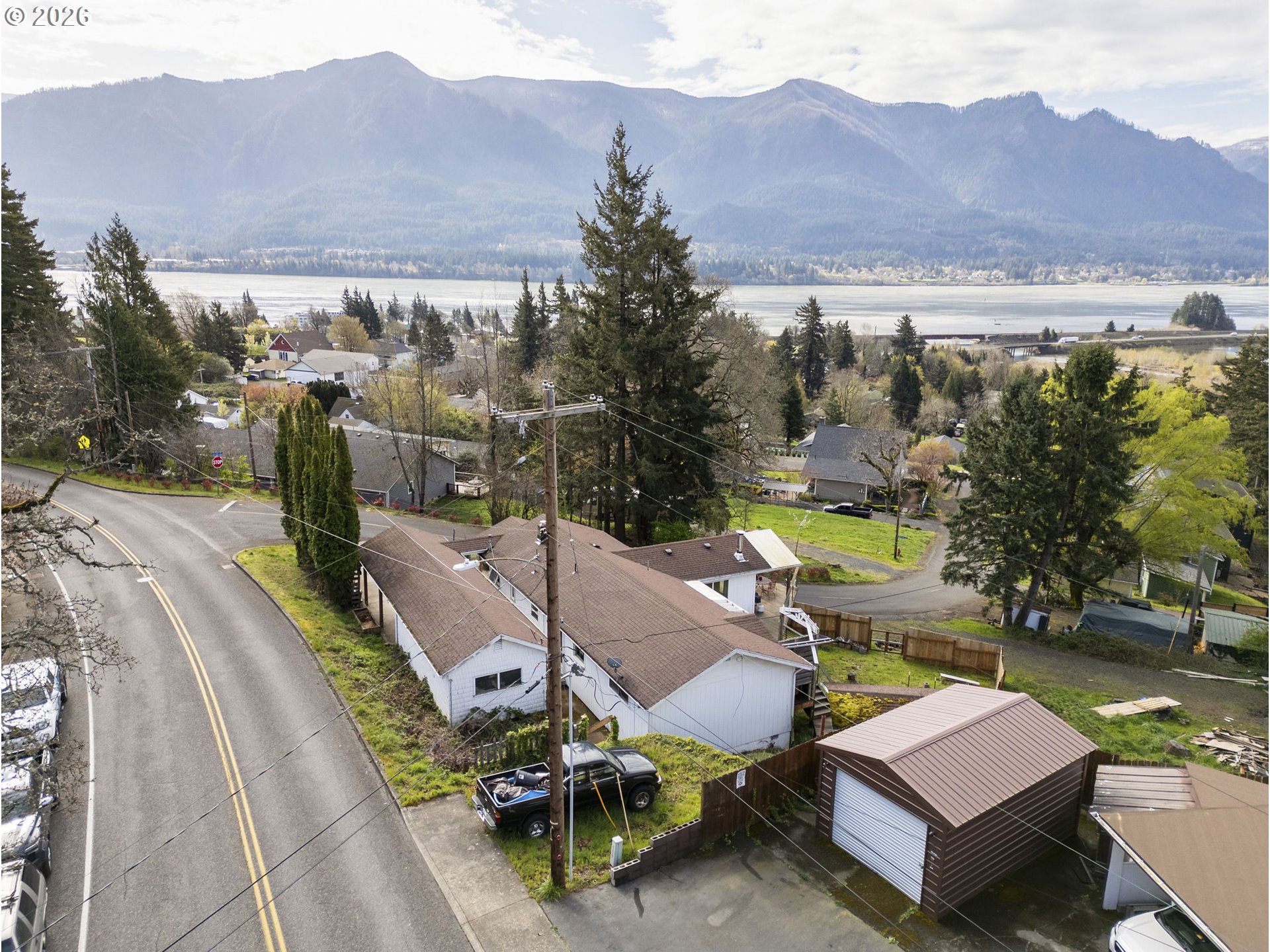 From its elevated position above the river, this Stevenson home looks out over the Columbia River, Bridge of the Gods, Thunder Island, and Cascade Locks.Inside, the main living space is centered around the view. Large windows keep the river in focus, while the wood-burning stove adds a comfortable, steady warmth. The kitchen features tile flooring and built-in appliances, while hardwood floors carry through the dining area and hallway.Out on the deck, the setting opens up even more, with a clear view of the river and surrounding landscape.Just minutes from downtown Stevenson, with convenient access to local shops, dining, and waterfront areas. Portland International Airport (PDX) is about a 48-minute drive in normal traffic, making travel in and out simple.Suitable for full-time living, part-time use, or investment. Buyer to verify short-term rental feasibility.
