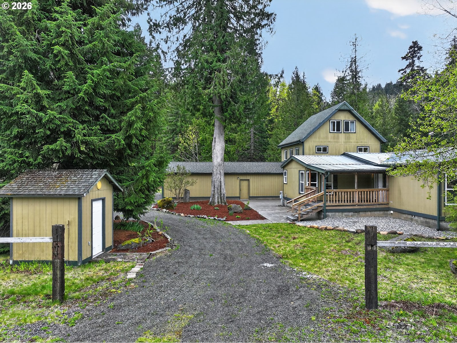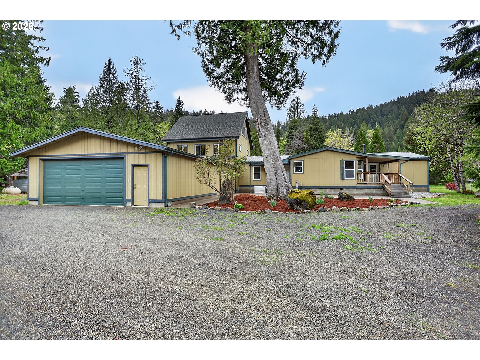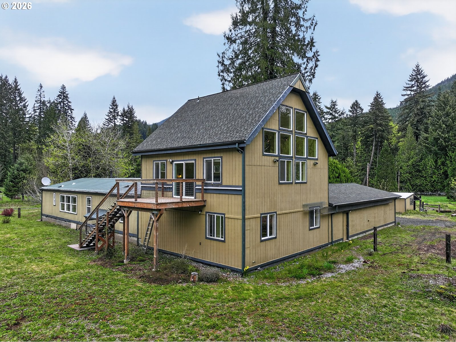 Peaceful 5-acre setting in Cook, WA with level, usable land bordered by mature evergreens. Adjacent to Big Cedars Park, which offers access to the Little White Salmon River and just minutes from recreation in the Gifford Pinchot National Forest enhancing this special rural location. The property features a 1997 manufactured home with 3 bedrooms, 2 baths, updated kitchen, and open-concept living, plus an attached stick-built 2-story addition with an additional bedroom and bath on the main level, large upper-level family room, loft space, and deck overlooking the land. The versatile layout may lend itself to multi-generational living, guest space, or potential separation for extended living needs, with possible kitchenette opportunity in the addition subject to buyer verification. Large 24 x 48 attached garage provides excellent room for vehicles, storage, or projects. A peaceful property with flexibility, function, and a strong connection to the outdoors. Cook, WA offers the kind of setting many land buyers are looking for—open space, natural beauty, and a peaceful rural atmosphere in the Columbia River Gorge. The area is known for its scenic surroundings, access to outdoor recreation, and a climate that includes warm, dry summers and mild to cool winters. Whether for a full-time residence, recreation, or a getaway property, Cook appeals to those who value privacy, fresh air, and room to enjoy the outdoors. Conveniently located approximately 20 minutes from the Hood River Bridge, with easy access to Hood River, White Salmon or Bingen for shopping, dining, and other Columbia Gorge amenities.