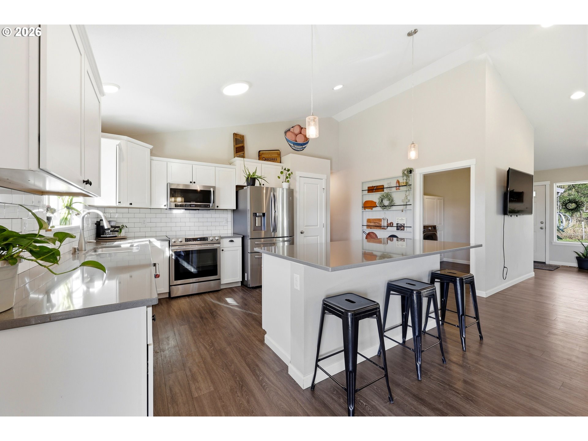 EngineeredHardwood, GarageDoorOpener, HighCeilings, HookupAvailable, Laundry, Quartz, Skylight, VaultedCeil