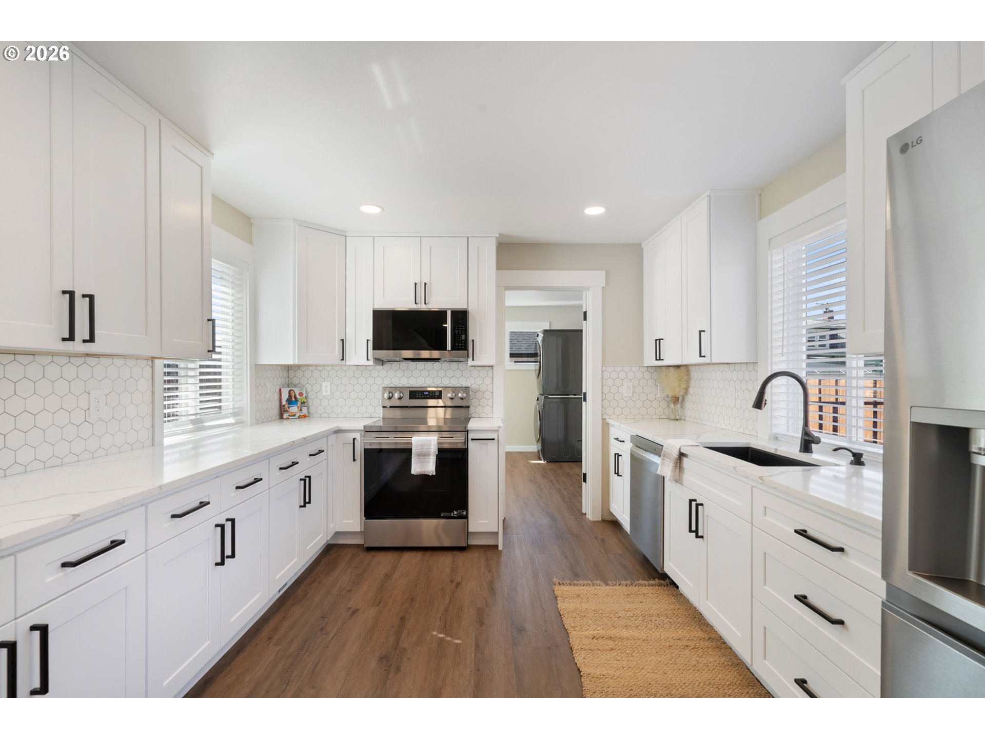Welcome to this beautiful fully remodeled home in the heart of Tillamook. This home is like new! Tastefully updated from down to the studs with quality high-end finishes throughout. Fully fenced yard with parking for boat/RV and a cute detached outbuilding that can be converted to a cozy home office/sauna or anything you can think of. Home offers a grand craftsman kitchen with a generous quarts island. Two bedrooms on the main floor with a full bathroom and oversized laundry room that can be used as a den/office. Two bedrooms upstairs with a bathroom. This home was remodeled with intentions to keep and every part of the remodel used upgraded items such as: fully insulated interior walls for and 5/8 sheetrock for extra sound/weather insulation, quality LVP flooring, quality heating system, craftsman kitchen. Other upgrades include: NEW --> siding, roof, windows, concrete/pavers, electrical, plumbing, lighting fixtures, bathrooms, all new interior, appliances. It's a fully remodeled home that is LIKE NEW. Everything you need - Close to schools, parks, YMCA, Safeway and local hospitals. A grocery store is only 5 minutes away making daily essentials effortless. When it's time to unwind, the beach is less than 10 miles from your doorstep offering a perfect coastal escape. A great blend of comfort, convenience and seaside charm.