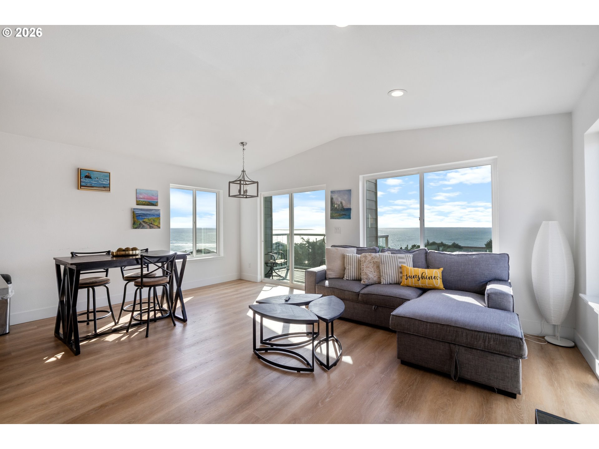 Welcome to your coastal retreat in Oceanside, OR. Enjoy panoramic views of the Pacific Ocean, Three Arch Rocks, and Cape Lookout. This 3 bedroom, 3 bath home offers high ceilings throughout and a practical layout, with two bedrooms featuring en suite bathrooms. The open upper level allows for seamless interaction between the kitchen, dining area, and living room, all oriented toward the view. Interior features include vinyl plank flooring, tiled showers, and a mini split for year round comfort. The kitchen offers custom cabinetry, stainless steel appliances, quartz countertops, and a large island. Access from both Crescent Street and Reeder Street provides added flexibility. Being sold fully furnished, this property is ready for immediate enjoyment or investment.