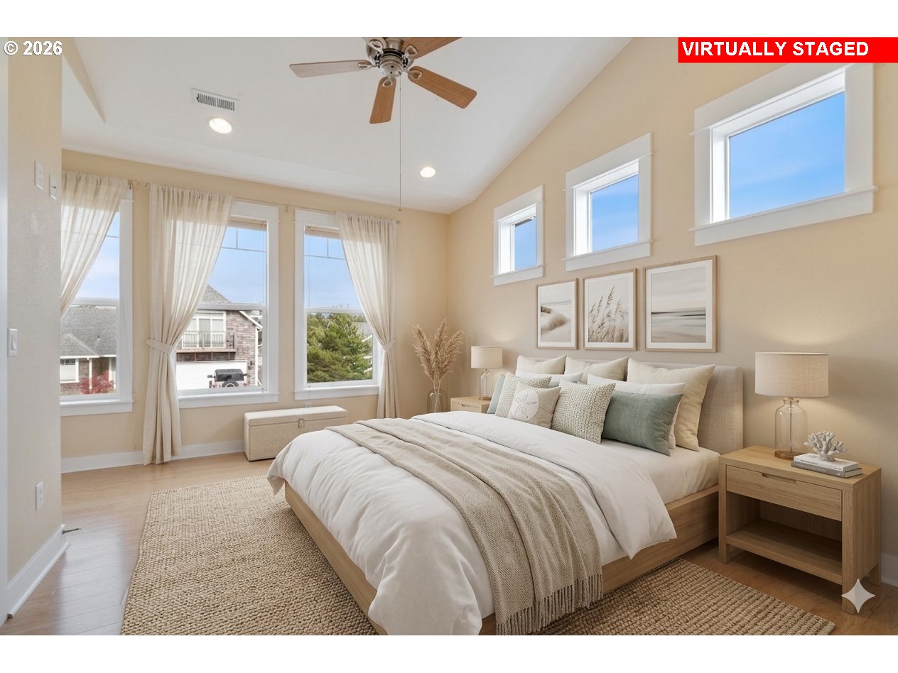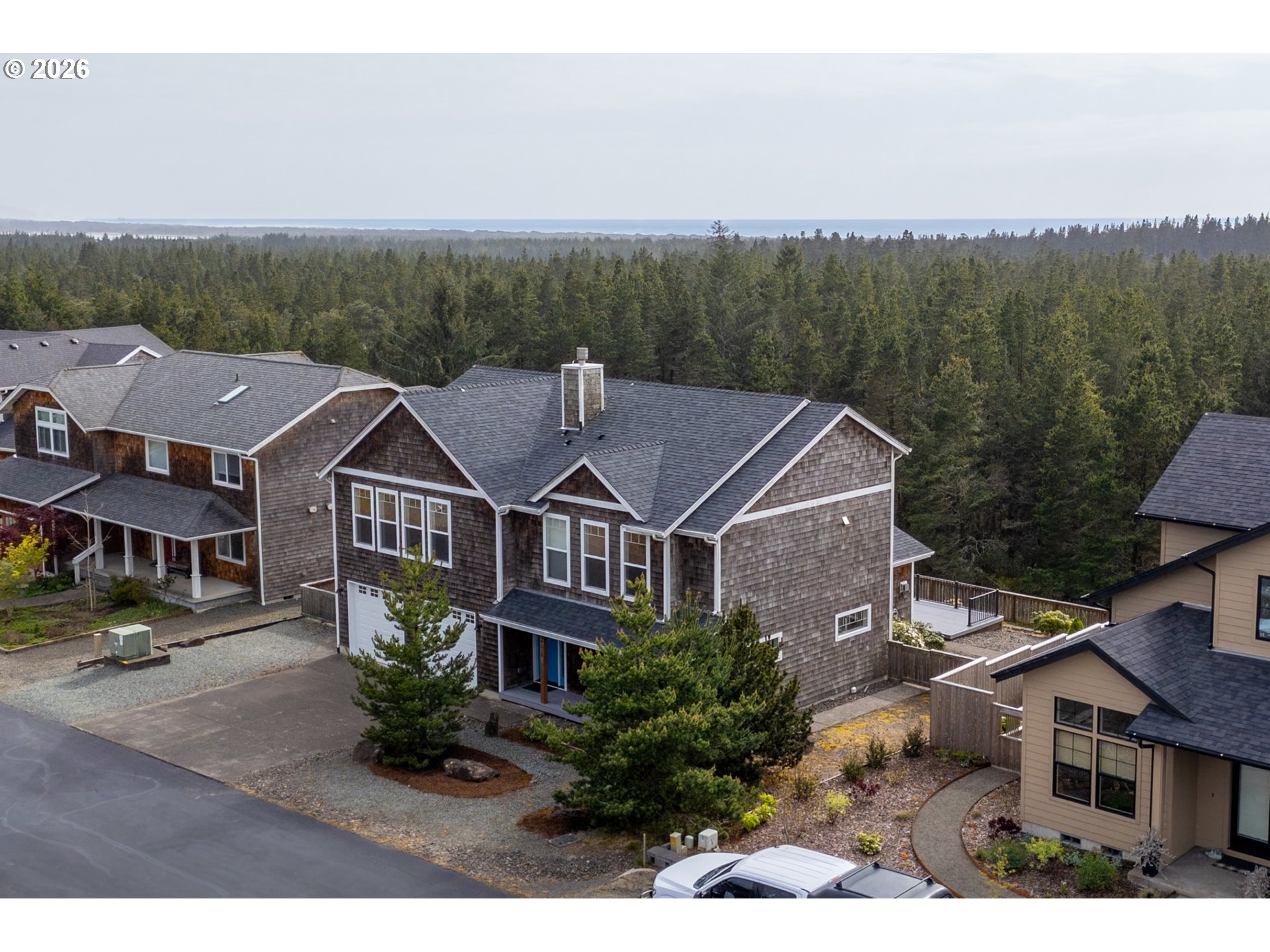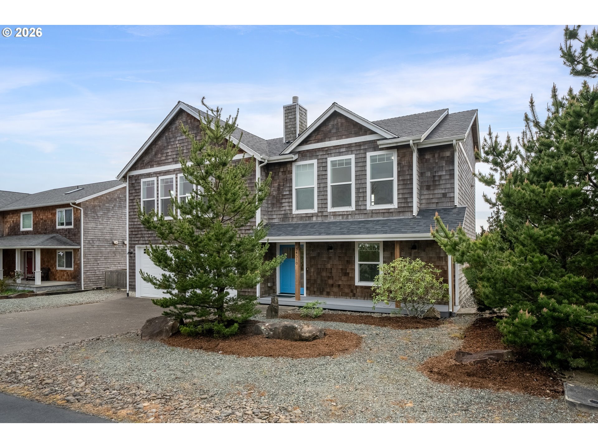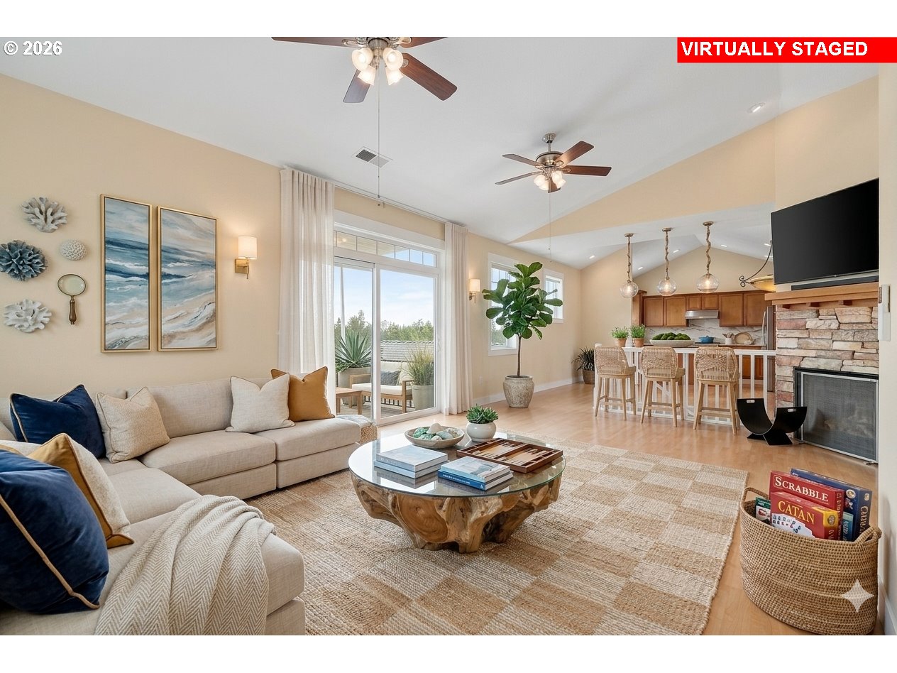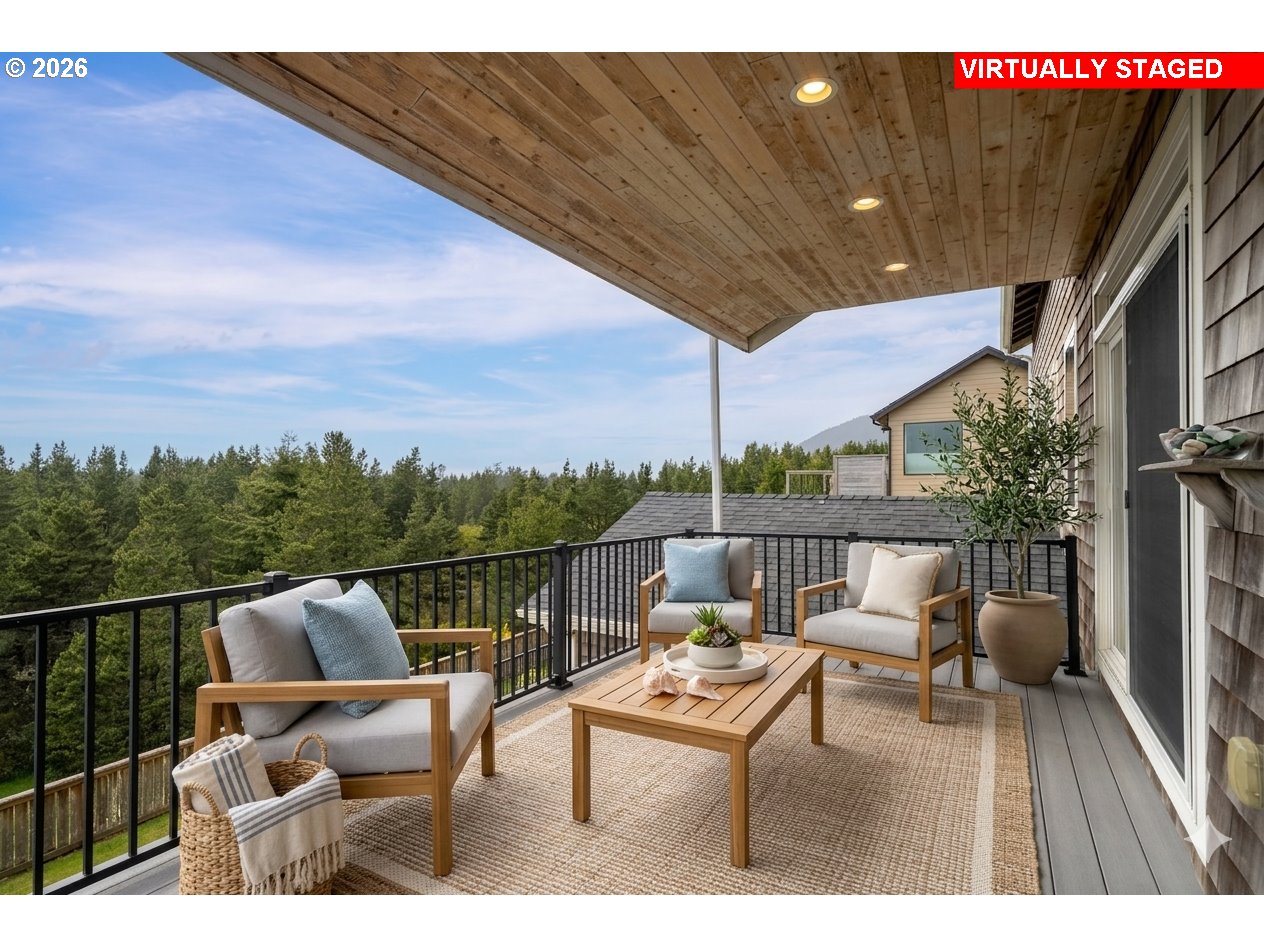 Scenic views and a peaceful natural backdrop sets 34510 Pinyon Drive apart in the sought-after Pine Ridge neighborhood. With the home backing to trees and open space, you get the privacy and quiet that's hard to find. While Manzanita beach, Nehalem Bay State Park, and the golf course are all just minutes from your door. Inside, the open floor plan feels warm and welcoming, with vaulted ceilings, engineered hardwood, granite countertops and stainless steel appliances. Natural light pours in throughout the day, making the space feel bright and alive in every season. Dual primary suites — one upstairs, one down — make it easy to host family and friends while everyone still has their own comfortable retreat. Whether you're looking for a full-time residence or a coastal getaway, this is a home that delivers the view, the nature & the lifestyle.