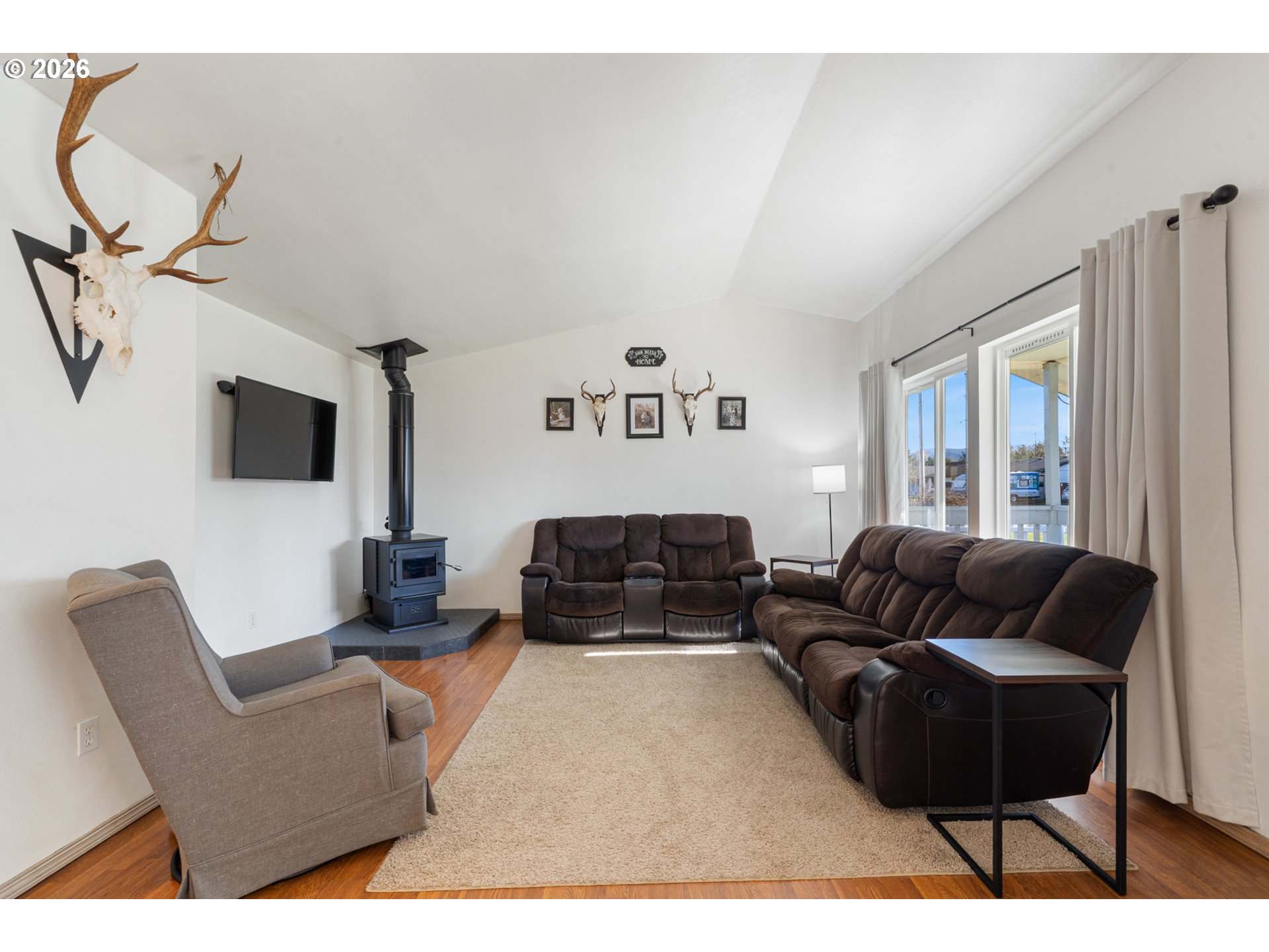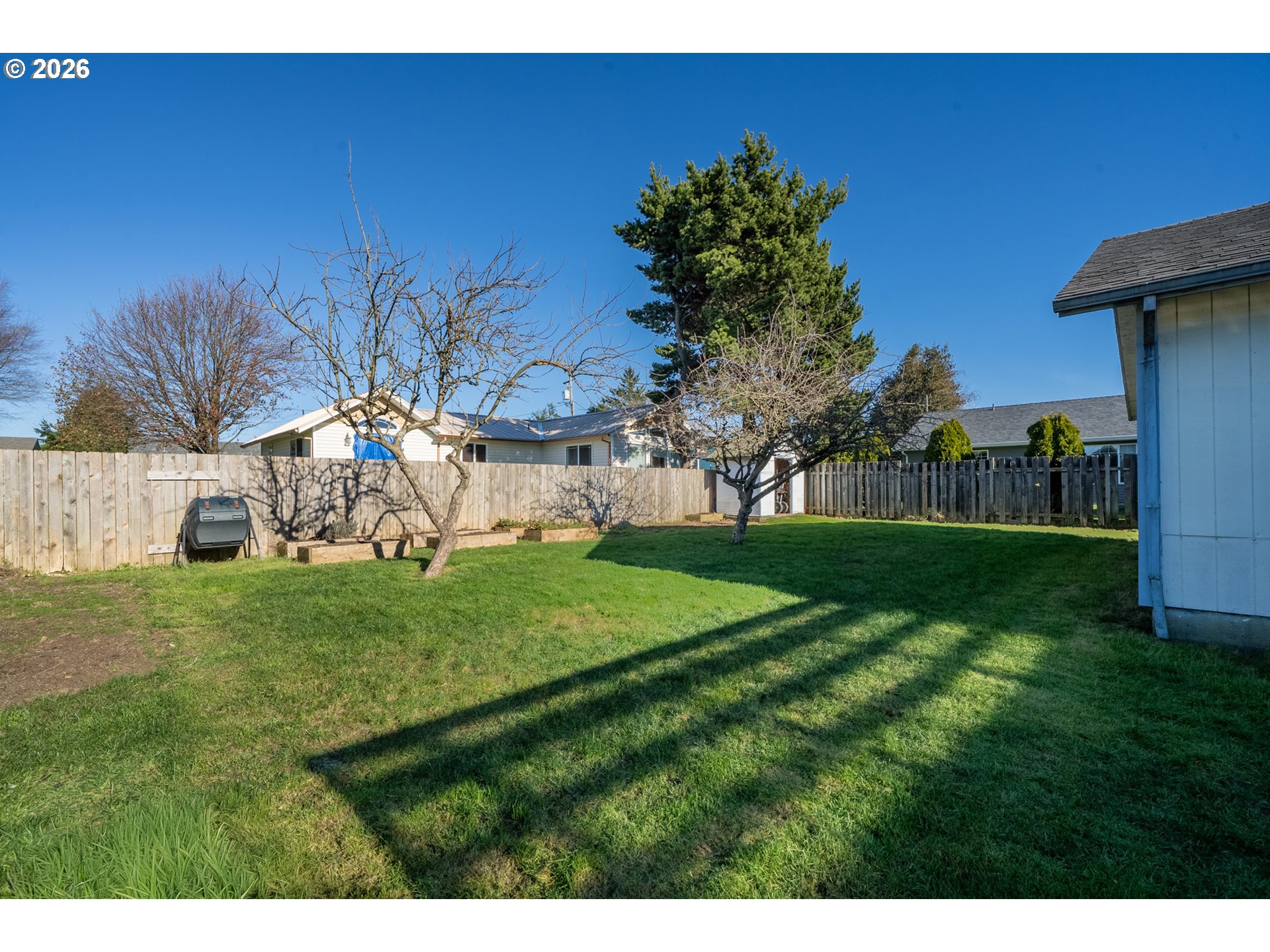 Priced to sell & move-in ready! Perfect for a first time buyer or those looking to downsize, this one level low maintenance home offers unique flair beyond the cookie cutter norm. Clean, modern, and welcoming, it features a charming covered front porch that leads into a bright living room with high angled ceilings and a cozy wood stove. Down the hall are two spacious bedrooms & an updated full bath, plus a newly painted primary bedroom complete with it's own bath, walk-in shower and multiple closets. The over-sized kitchen boasts white cabinetry, a neutral color palette, stainless appliances and an adjoining dining area - ideal for everyday living & entertaining. Versatile family room provides flexibility as an office or potential fourth bedroom, with access to a covered deck & private fenced back yard. Outdoor features include raised garden beds, fruit trees, & storage shed perfect for gardening & relaxing. Tucked in a quiet neighborhood within city limits, the home is close to schools & amenities. Additional highlights include a two-car garage, attic storage, trailer or RV parking, and a professionally encapsulated crawl space (approximately $30k investment) can be used for extra storage. A truly beautiful home with thoughtful updates and plenty of room to grow!
