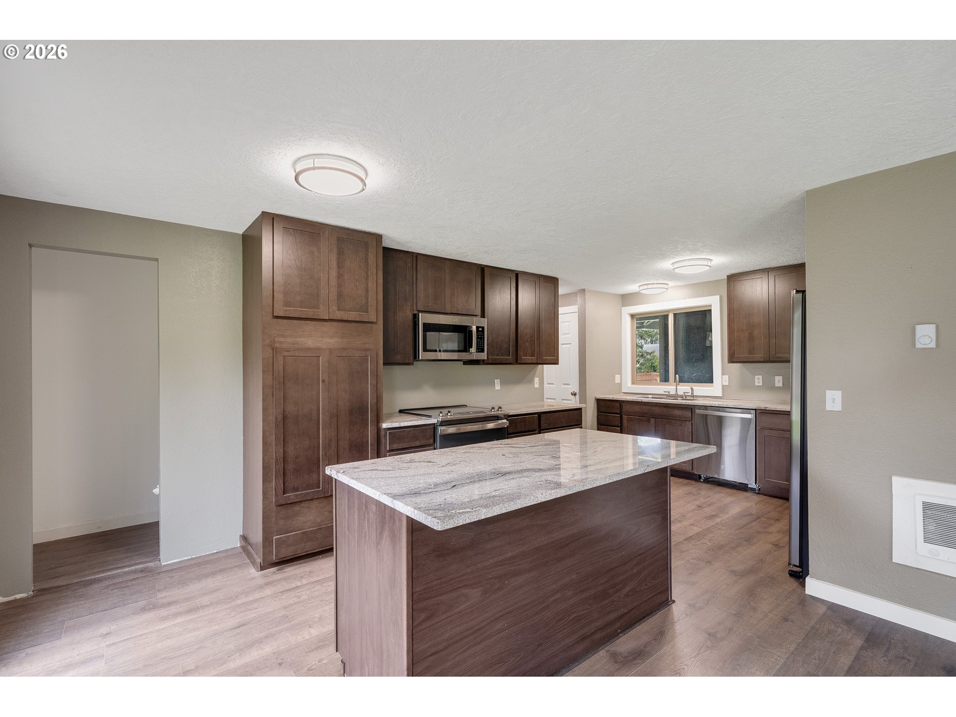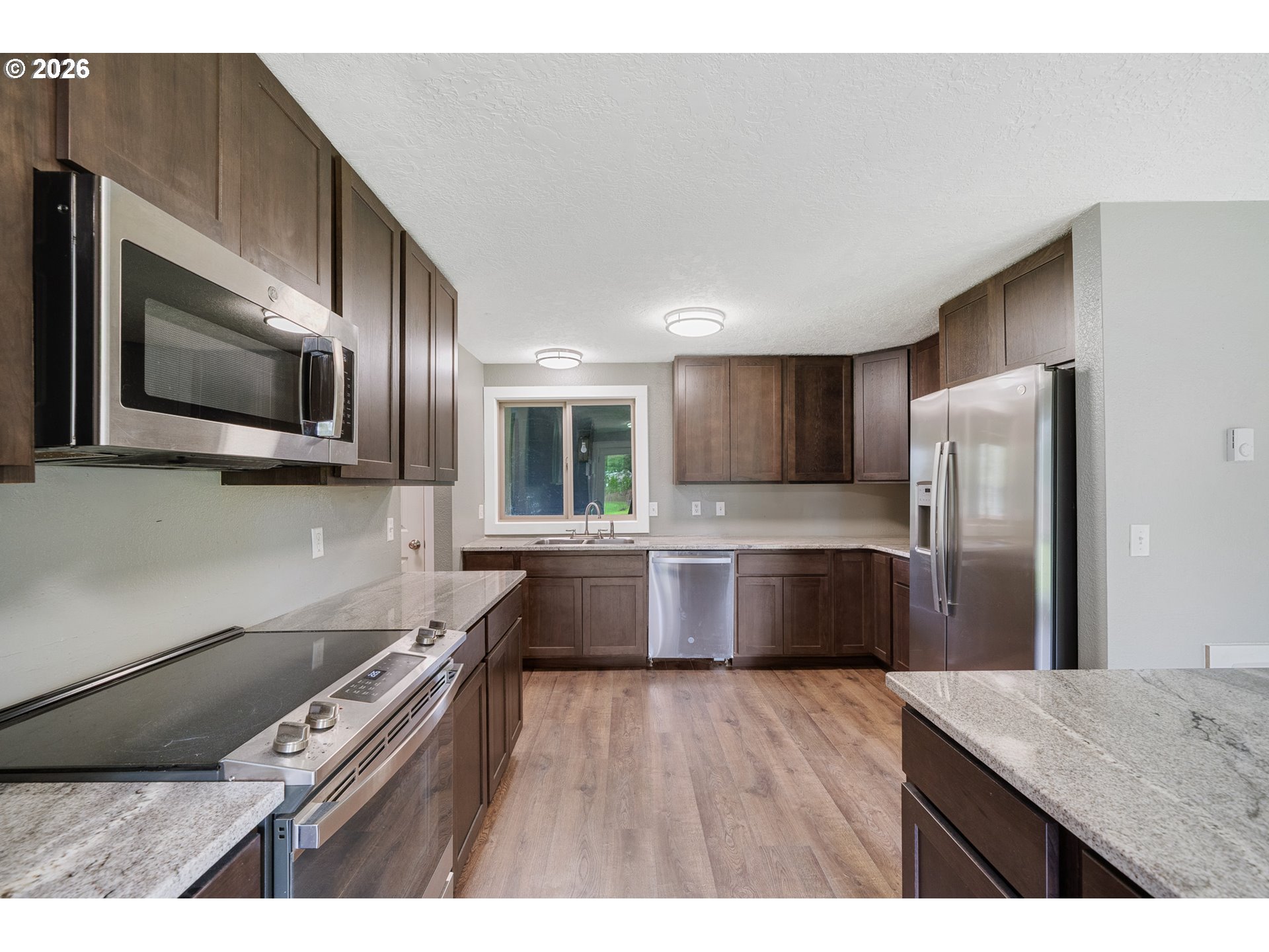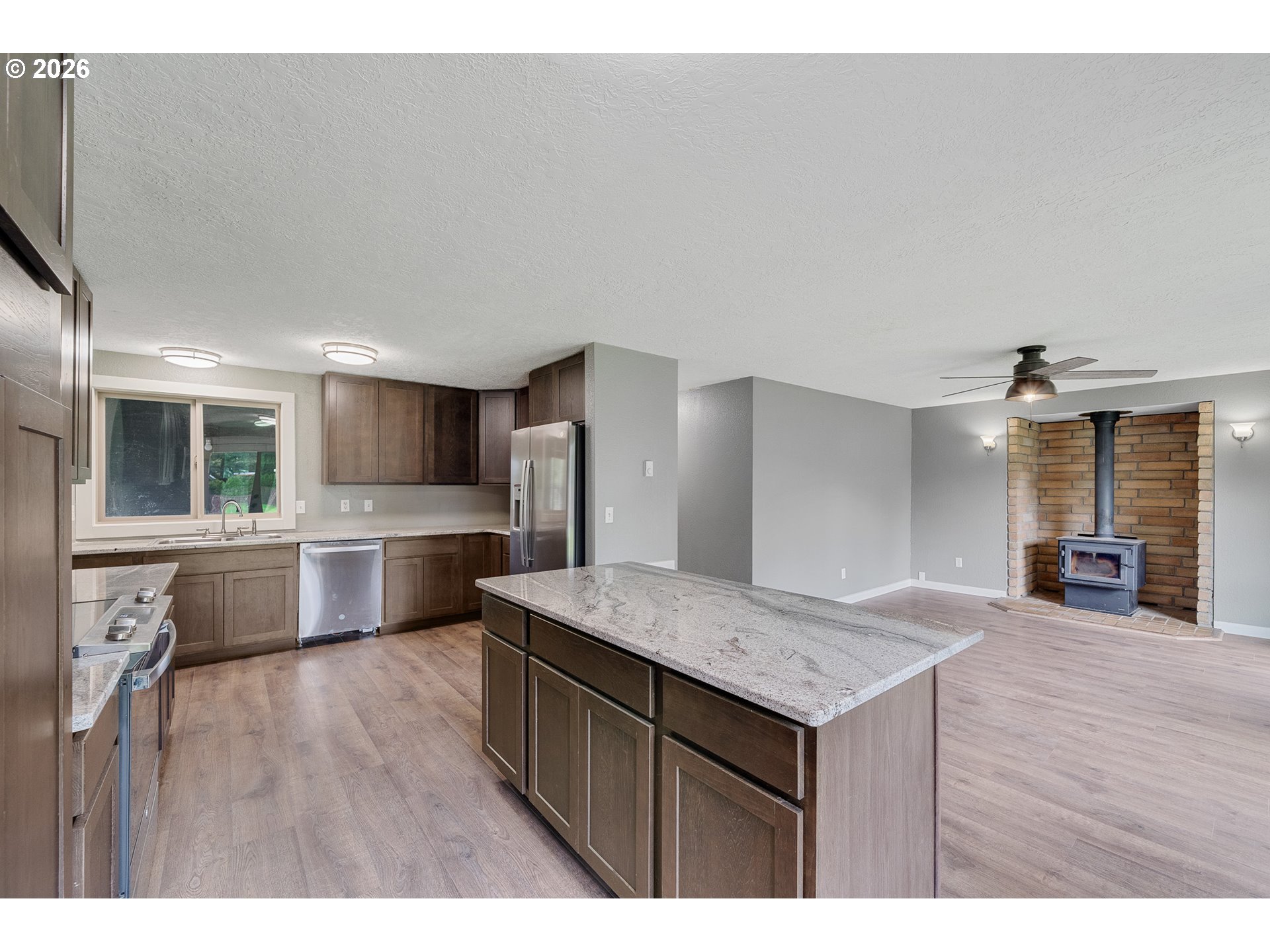 Dishwasher, FreeStandingRange, FreeStandingRefrigerator, Granite, Island, Microwave, StainlessSteelApplian
