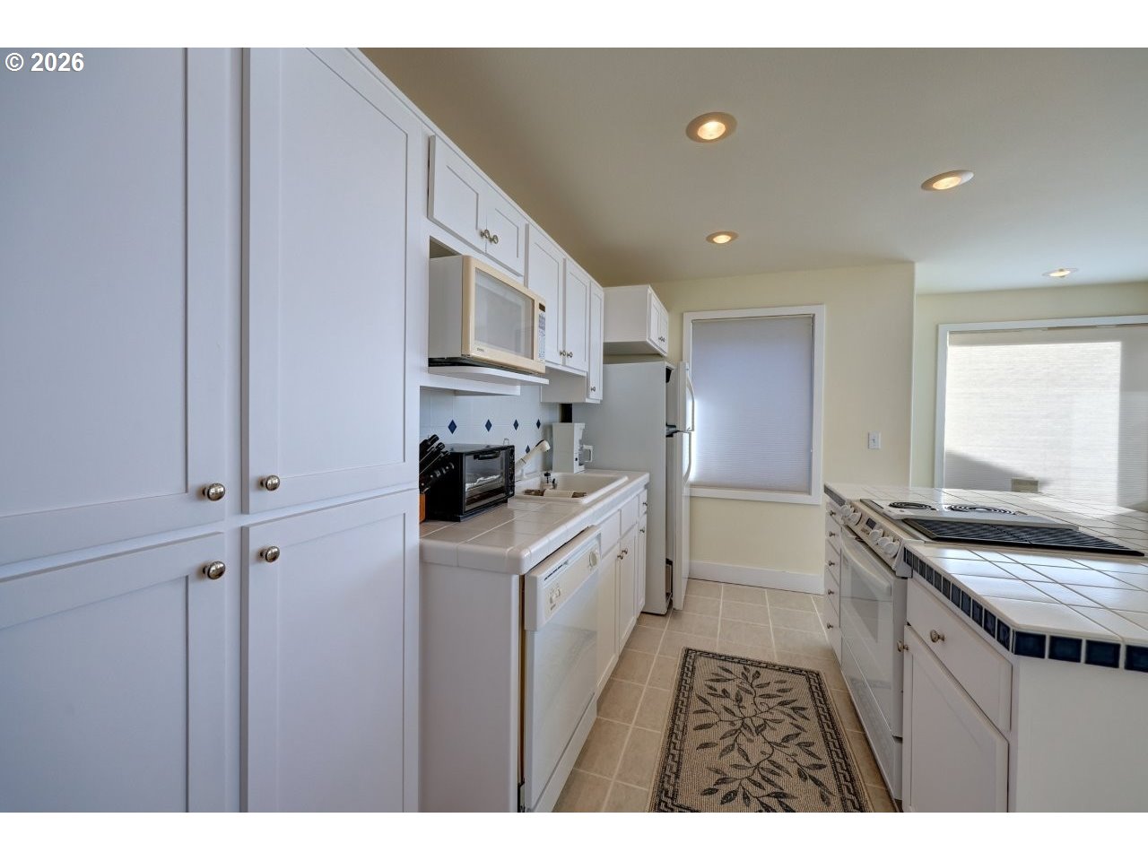 OCEAN VIEW COASTAL ENJOYMENT at its Best! Fabulous Ocean and white Cap Views! ~ out of the Tsunami Zone. Private community with walking Trails to the Sand. Other Association Amenities include private beach access,bocci ball, tennis court, community party center, and an on-site manager. Other amenities include: living room Plus a cozy Fireplace area with wood storage, berber carpeting, kitchen with divided farm sink and much drawer/cupboard spaces,cooking island built-in stove top and oven with down draft, plus island and eating nook seating,washer/dryer hookup closet with room for vacuum, spacious bedroom and full bath with double sinks and a roomy shower, and great storage, Perfect for long-time living or short relaxing visits.