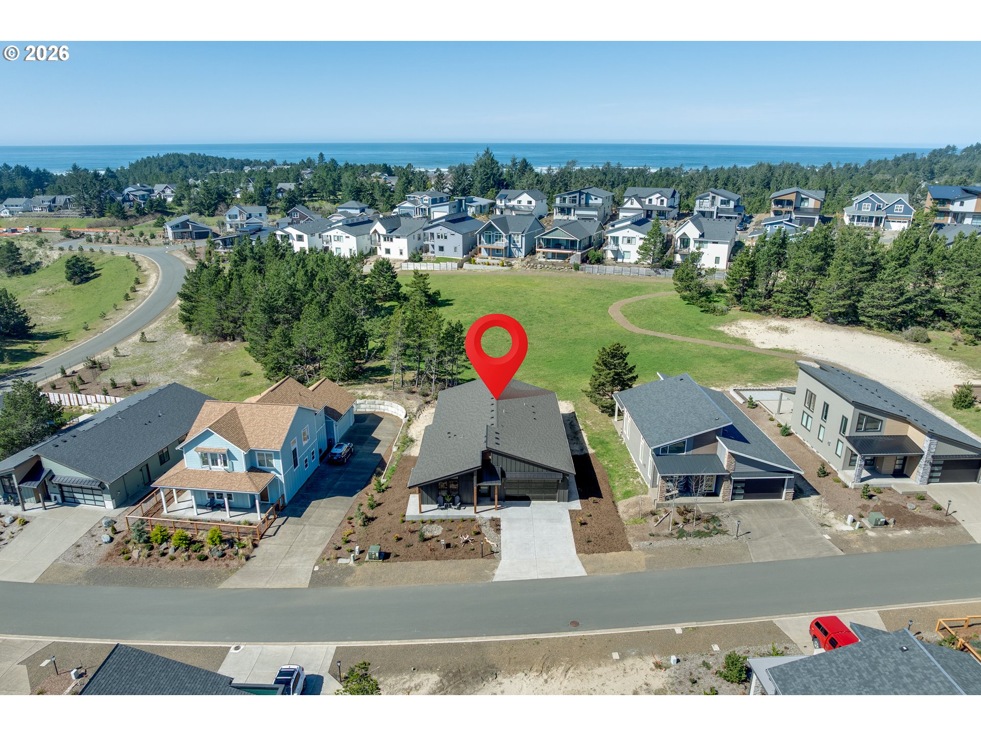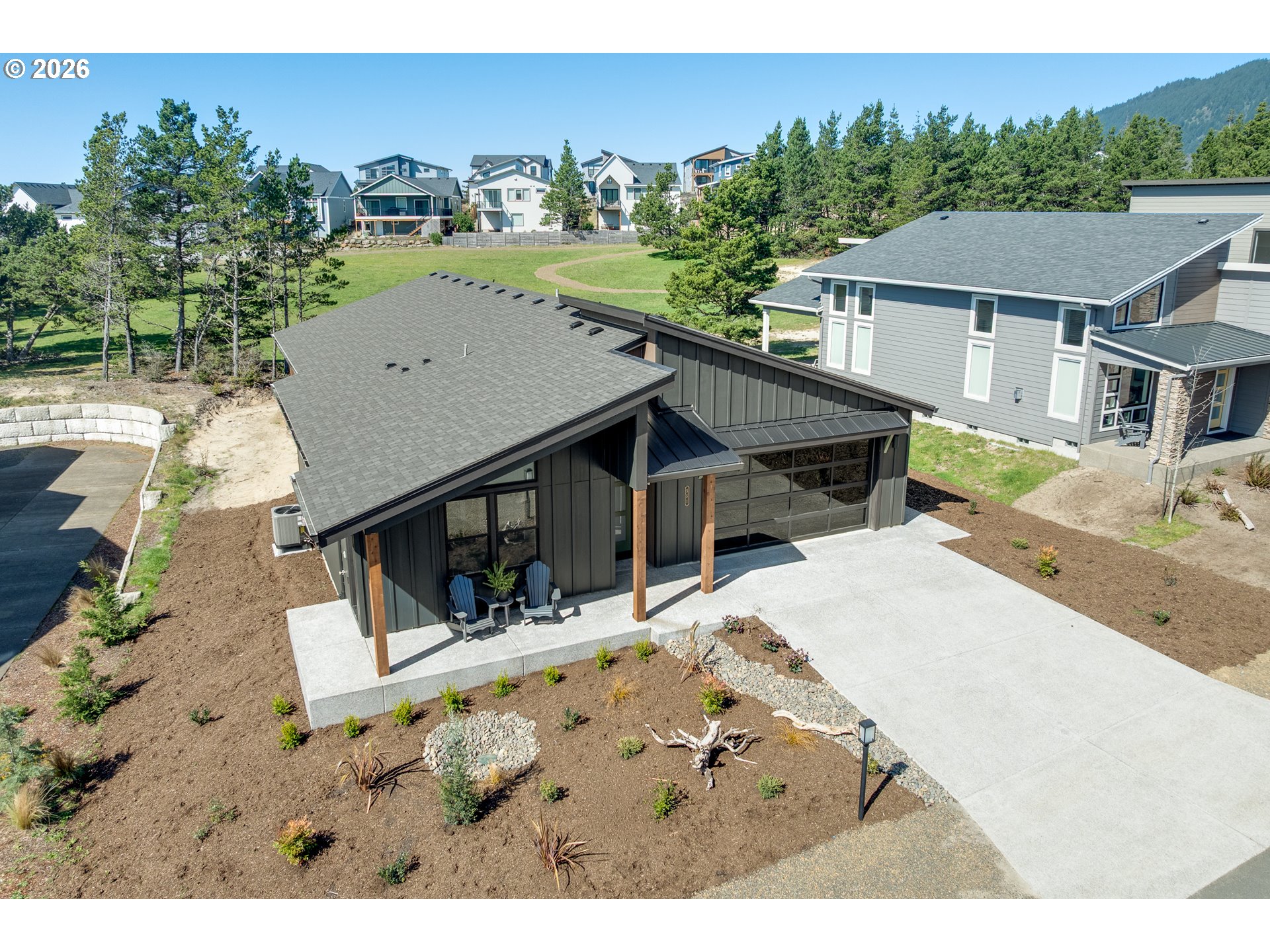 Fall in love with this this modern mid-century ranch coastal home. Plans feature the potential for an ADU with its own separate keyed entrance, bedroom, bathroom & kitchenette area. Vaulted ceilings throughout. This residence offers an unparalleled opportunity to embrace a coastal lifestyle amidst the splendor of nature. Conveniently located close to the golf course, quaint village, and breath-taking beach. This home is the epitome of modern coastal living with beautiful, high-end finishes throughout, large kitchen with upgraded Professional Appliances including an induction cooktop, and state-of-the-art electric fireplace. Primary suite with impressive free standing jacuzzi tub plus separate tiled shower. House is wired for total generator with an outside plug & switch (generator not included). There's even an EV plug in the garage. Located in the newest coastal subdivision with green spaces, walking trails and just blocks to the main street in Manzanita for shopping and restaurants.