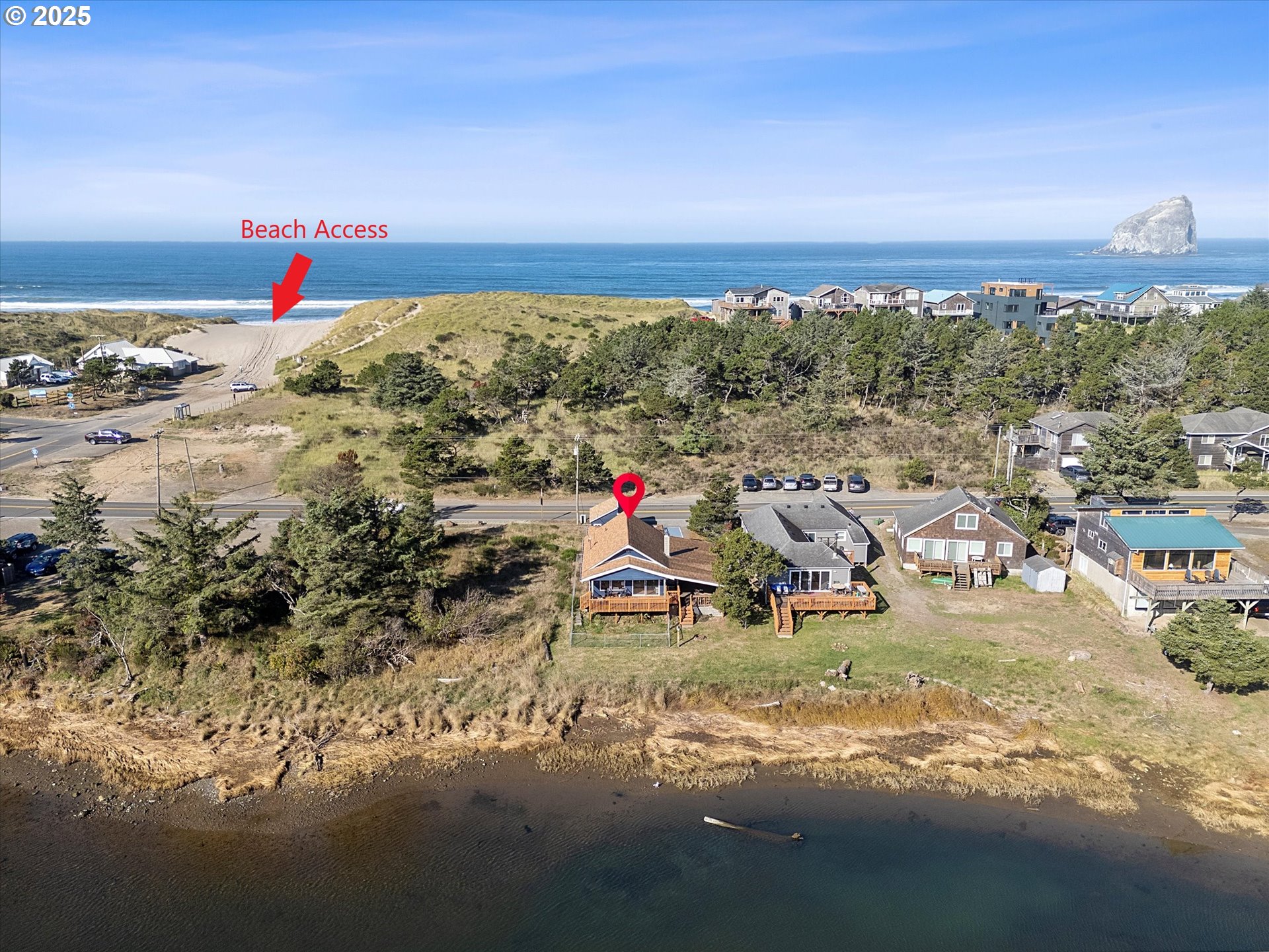 This commanding Brooten Mountain viewpoint is tough to beat with its sweeping 180* views from Nestucca Bay, Nestucca River, Pacific Ocean, Haystack Rock and Cape Kiwanda - with show stopper sunsets. There are height restrictions in place for the vacant lots in front; info available upon request. New in 2019, meticulously maintained and spotlessly clean, with a well appointed and tasteful interior. Offered turn-key with furniture and furnishings. Beautiful Pacific Seawatch community offers a clubhouse, indoor pool and hot tub, fitness center, and a mini golf course. This home’s upper floor features an open great room layout, vaulted ceiling with exposed beam, electric fireplace, spectacular kitchen with island, front deck and rear patio, huge primary suite and bathroom, 2nd bedroom, guest bath, and a laundry room with storage space. Separate ADU guest suite on ground level has its own exterior entrance (or enter through garage), oversized 2 car garage, and entry mudroom for all your sandy beach gear, with built-ins. Level 2 EV charger is included. Low maintenance fully landscaped yard. Future short term rental potential, it's on the Tillamook County STR waitlist. Listing agent is related to seller. Seller is a licensed realtor in the state of Oregon. Seller is to do 1031 exchange at no cost or delay to buyer.
