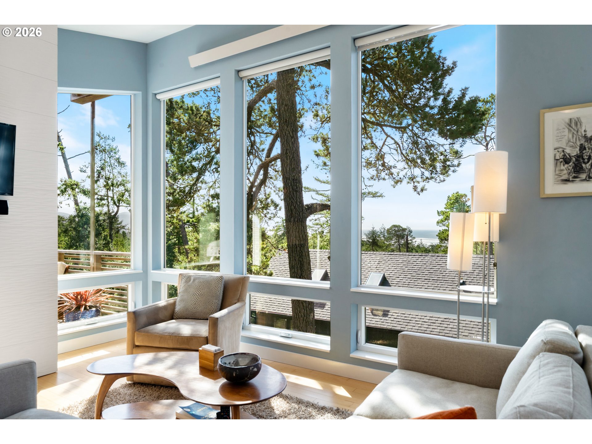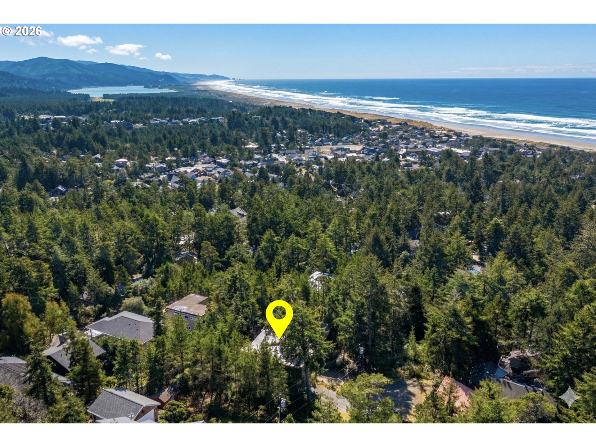 SLEEK & STUNNING modern ocean-view home tucked away on a quiet street in the coveted Classic Ridge Beach neighborhood of Manzanita. Enjoy the best of coastal living with beach and downtown each within 6 blocks. A striking inverted-pitch roof and smart reverse floor plan elevate the main living area to capture sweeping ocean views from both the interior and the expansive deck, enhanced by dramatic six-foot windows that flood the living space with natural light and frame the coastal scenery. Private backyard creates a serene coastal retreat, while thoughtfully designed interior showcases quartz countertops, light maple hardwood floor, and custom cabinetry throughout. The open kitchen is ideal for entertaining, featuring upscale appliances including a newer 5-burner gas range and Fisher & Paykel whisper-quiet dishwasher and in the dining area a temperature controlled wine closet. This home has a proven income history, having operated as a successful short-term rental for seven years. 4 bdrms plus an office.