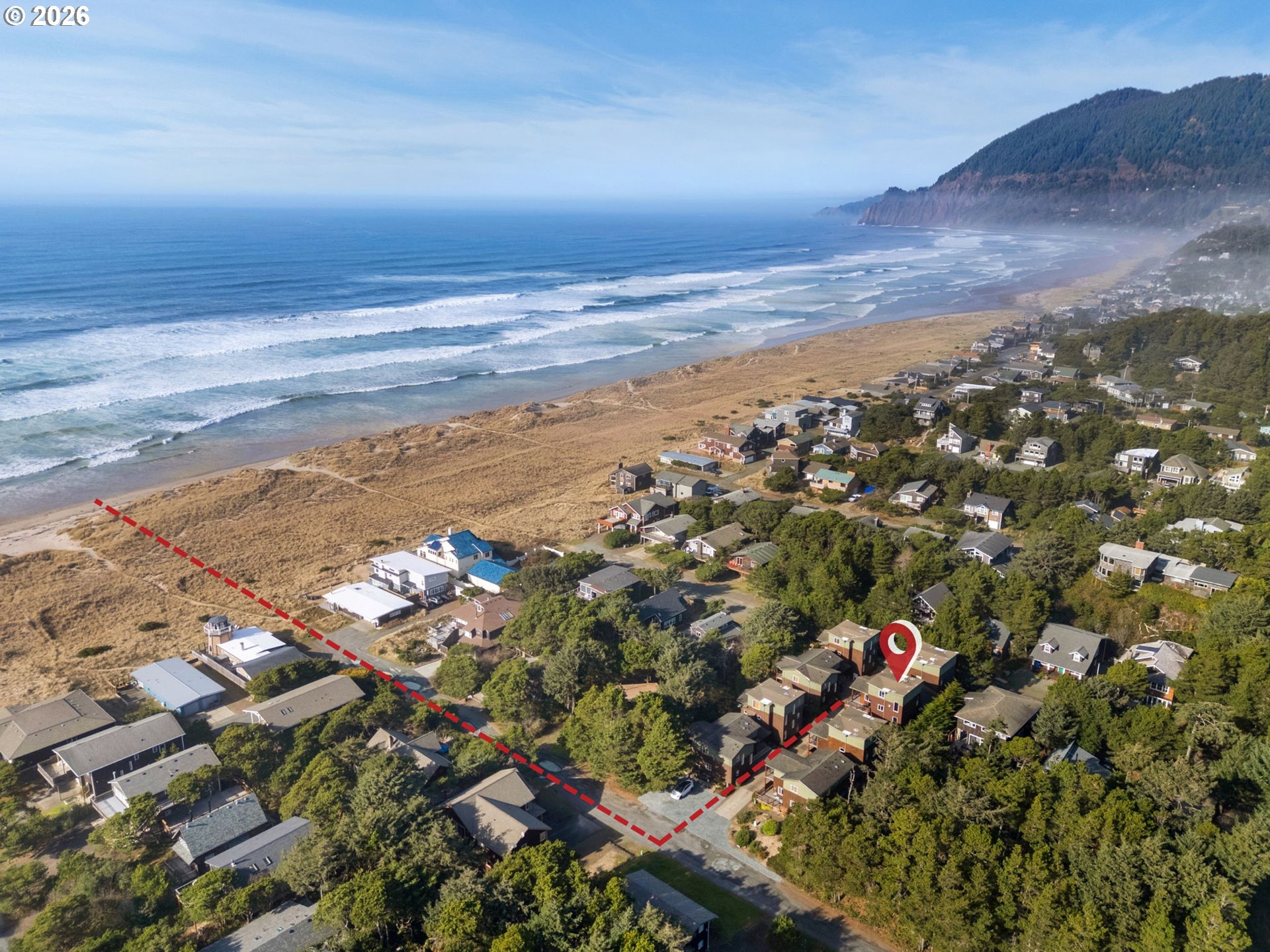 Located half a block from beach access, this 1,661 sq ft turnkey tri-level condo offers refined coastal living with an interior elevator & no shared walls, providing rare privacy. Light filled & thoughtfully designed in a NW contemporary style, featuring fir trim, durable tile flooring, a propane fireplace, & live edge granite. The ground level includes 2 bedrooms, deck access, and a full bath. The 2nd level is the heart of the home, with an open great room, south facing windows, a half bath, & a wrap around deck. The private 3rd floor primary suite offers a walk-in closet, jetted soaking tub, & partial ocean views. The HOA maintains exterior building upkeep, driveway maintenance, landscaping, & building insurance for those wanting low maintenance living. Contact your broker to schedule a showing.
