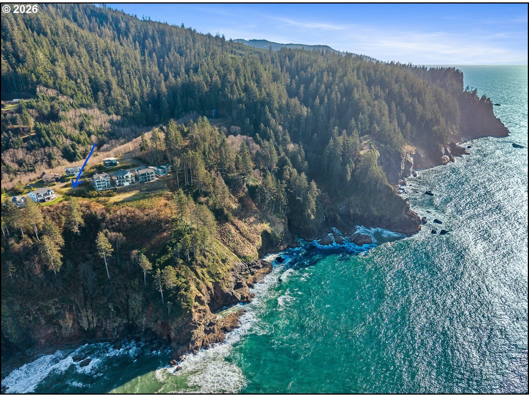 RARE LEVEL HOMESITE WITH DRAMATIC OCEAN VIEW, ready to build. Power & water available, underground utilities. Special community septic system (step system) where you install tank on your lot and the drain field is shared offsite. This large flat lot would accommodate a very large house. Gated community. High on a bluff. Restaurants & beach within half mile and Lincoln City, 10 minute drive. Road & Gate Maintenance $500 per year. Contact broker to see the geo and more info.