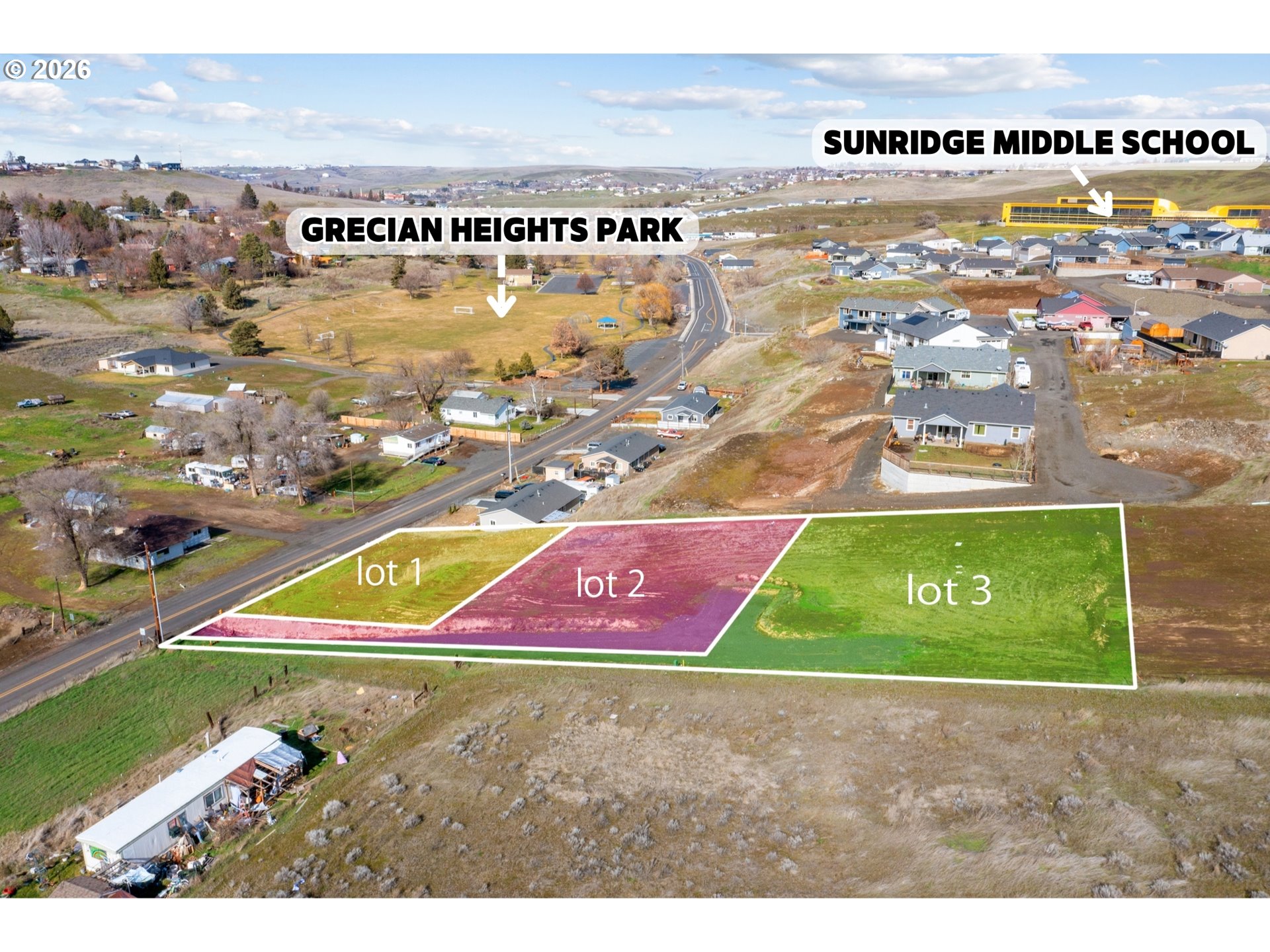 Sitting prominently in the contemporary "Sundridge Subdivision" - LOTS #1,2,3 are build ready. 3 Parcels available. Lots 1,2,3. See MLS#’s 245496233, 338399274, 482384223...$55k, $65k, $75 These prime parcels offer impressive mountain views - the higher up the hill - the better the view. Nestled on a generous corner lot at the edge of the city limits, these prime buildable lots are just a few steps away from Pendleton's gorgeous Grecian Heights Park - with close proximity to Sunridge Middle School, medical facilities and shopping. The sewer tap is on the lot and water is stubbed in. Electrical and Gas readily available. Build!