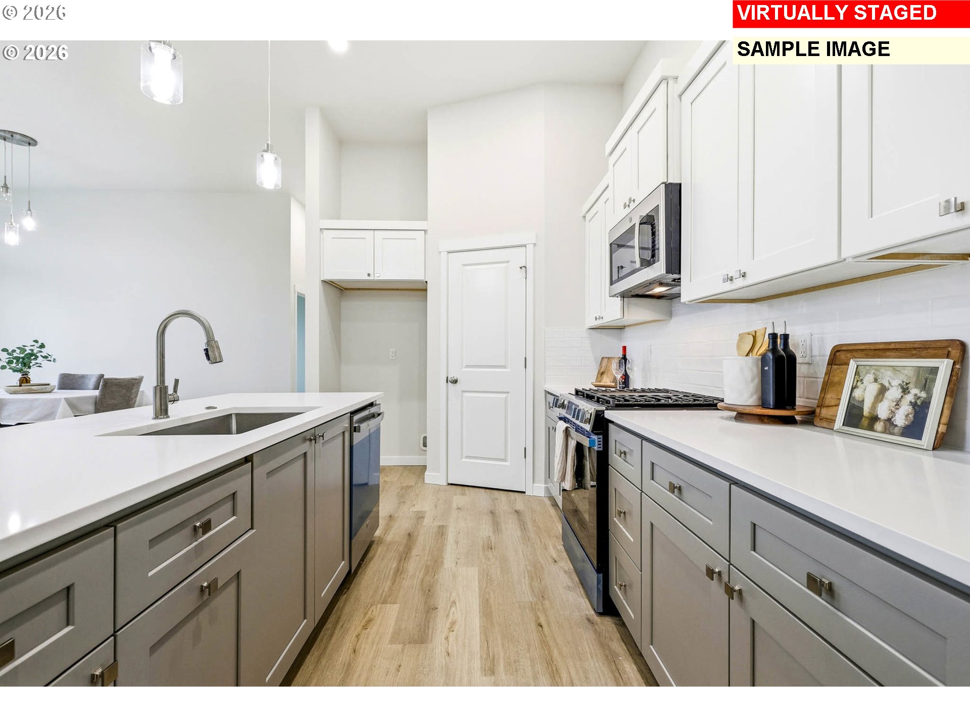 Dishwasher, Disposal, FreeStandingRange, Island, Microwave, Pantry, Quartz, SolidSurfaceCountertop, Stainles