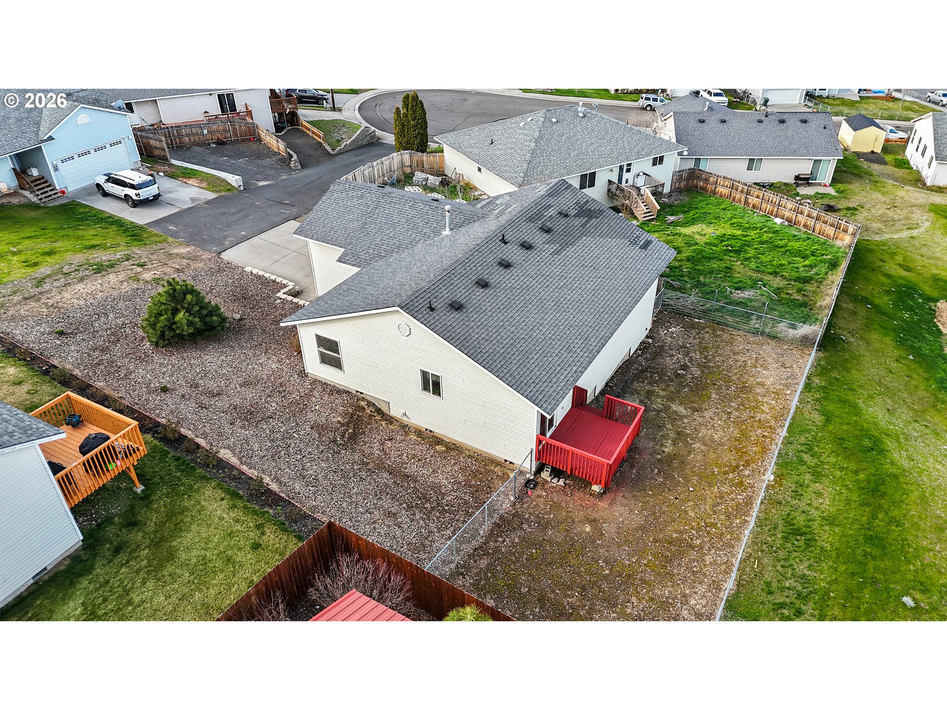 Tucked privately off a quiet cul-de-sac, this well-kept 3 bed, 2 bath home offers comfort, privacy, and modern touches throughout. A private driveway leads to the double car garage, while inside you’ll find a bright interior filled with natural light. Plank flooring runs through the living, kitchen, and dining areas, creating a clean, modern feel. The kitchen stands out with tasteful updates including solid surface countertops, tile backsplash, and stainless steel appliances. Down the hallway, the spacious primary suite offers a comfortable retreat with a walk-in tile shower through one door and a walk-in closet through the other. You’ll also find centrally located laundry, a second full bathroom, and two additional bedrooms. Outside, the front yard features low-maintenance bark landscaping, while the fully fenced backyard is ready for pets, play, or future plans.