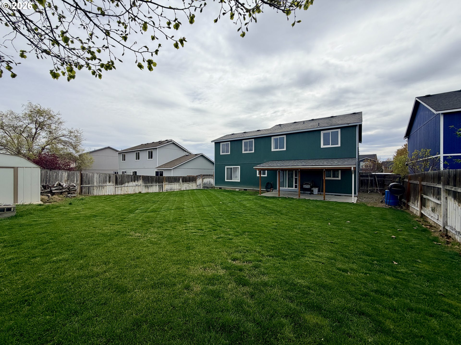 Space to spread out and a backyard that checks off all the boxes! Inside, the layout just makes sense. Gather in the family room around the gas fireplace, spread out in the separate living room, or let the kids disappear into their own spaces — because with five genuine bedrooms, everyone gets one. No converting an office. No sharing unless they want to. Real bedrooms, real closets, real breathing room. The primary suite features vaulted ceilings, a walk-in closet, and elongated bathroom to cover all your needs. The kitchen flows naturally with an eating bar and dining area — stainless appliances, slide-in double oven, microwave/convection combo, Corian sink, and an oversized walk-in pantry. Then there's the backyard. Expansive in size, gates on both sides, underground sprinklers, metal storage shed, and a rock climbing wall! Plus the covered patio offers you a place for summer dinners, birthday parties, quiet mornings with coffee, and every season in between. Big-ticket updates are already taken care of, allowing you to move right in and settle down: a recently replaced furnace and A/C, fresh exterior paint, upgraded carpet/padding in some rooms, and covered patio space. Start living your best life here.