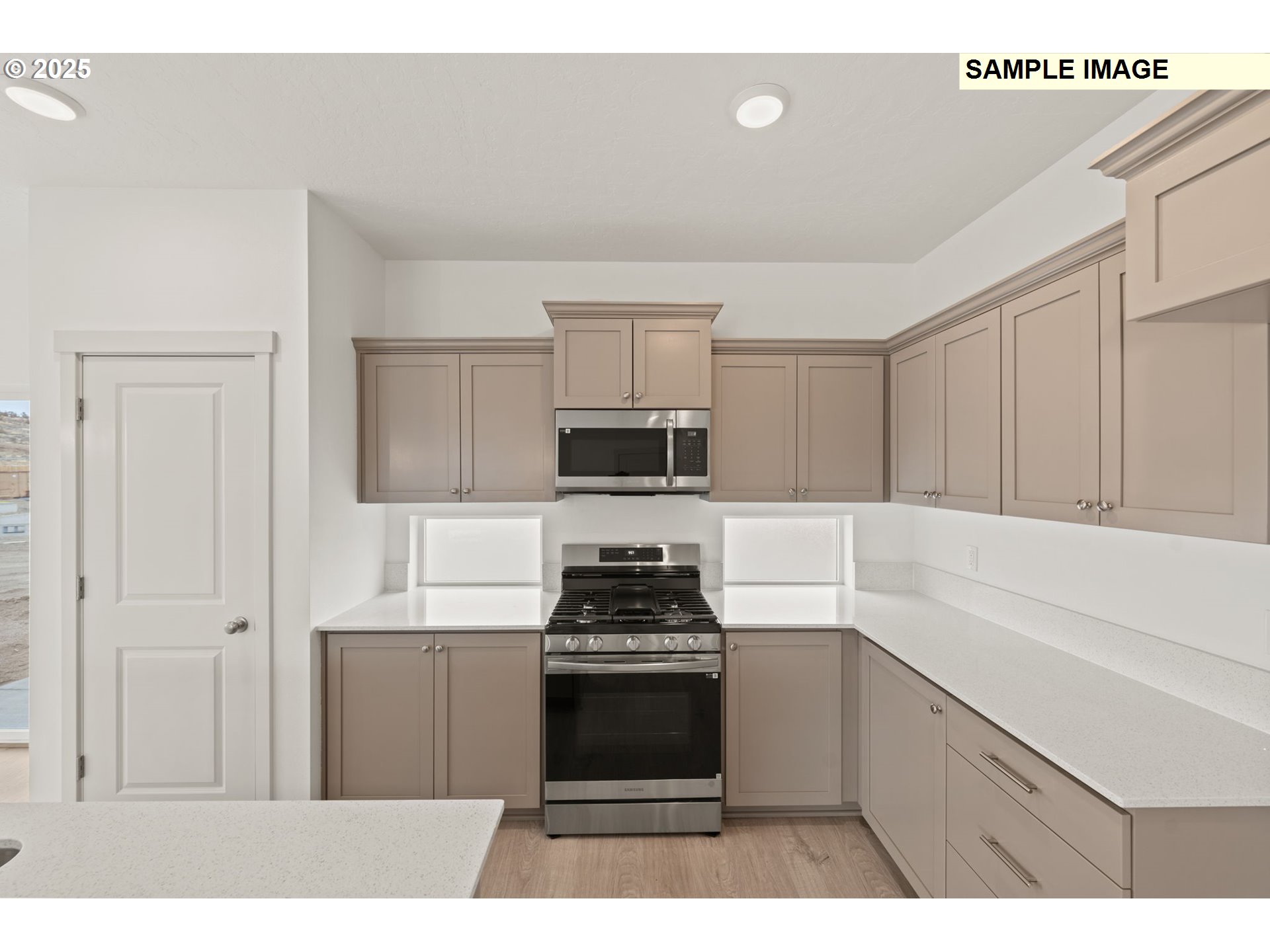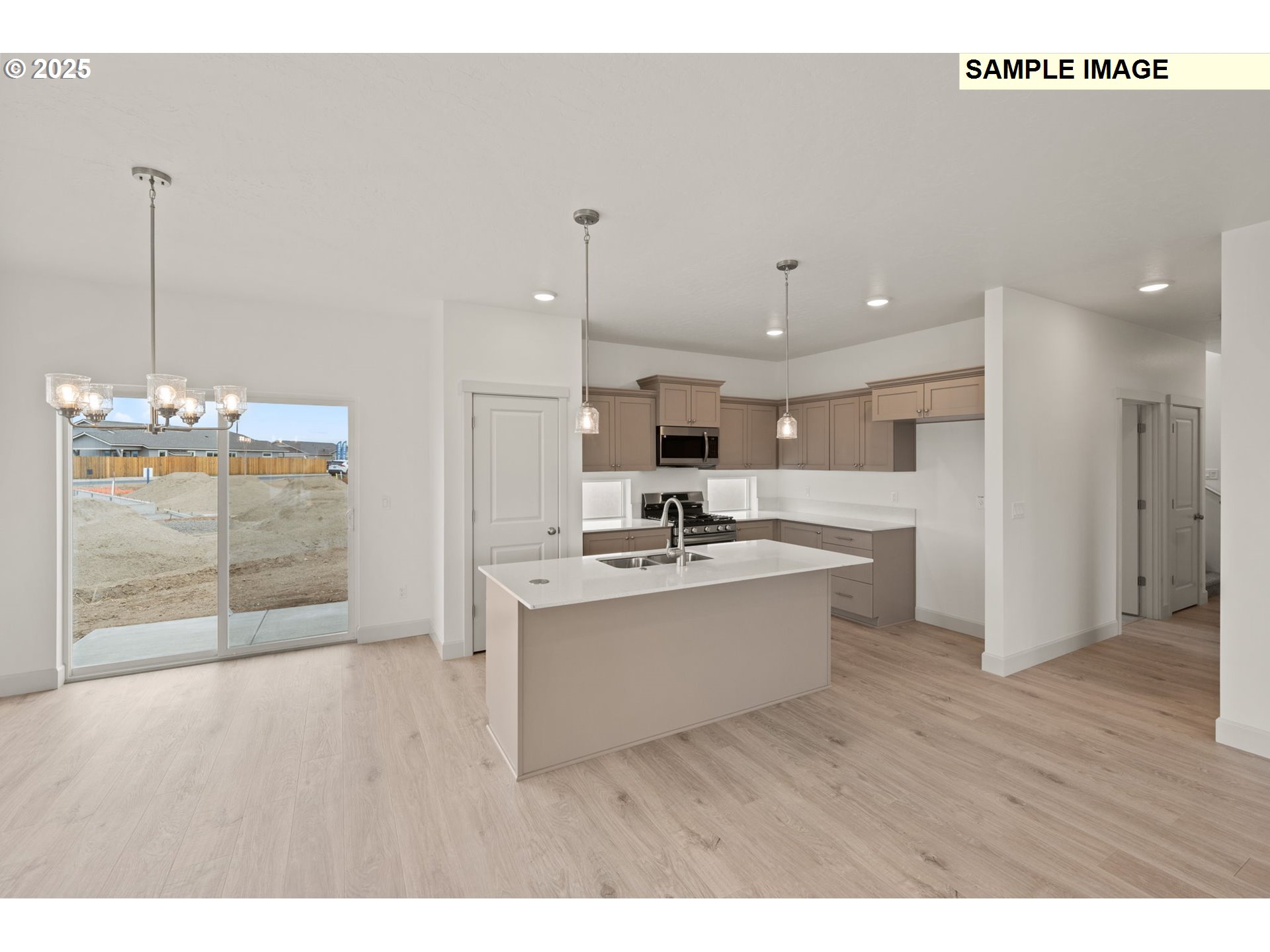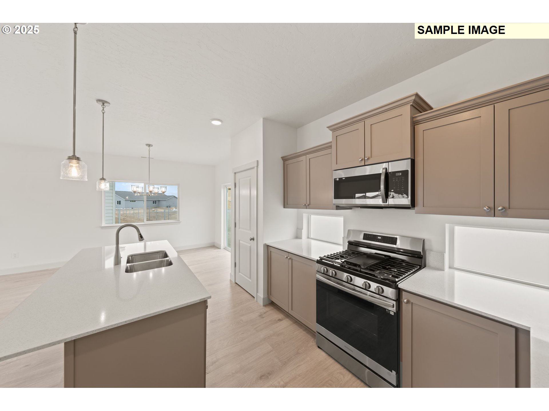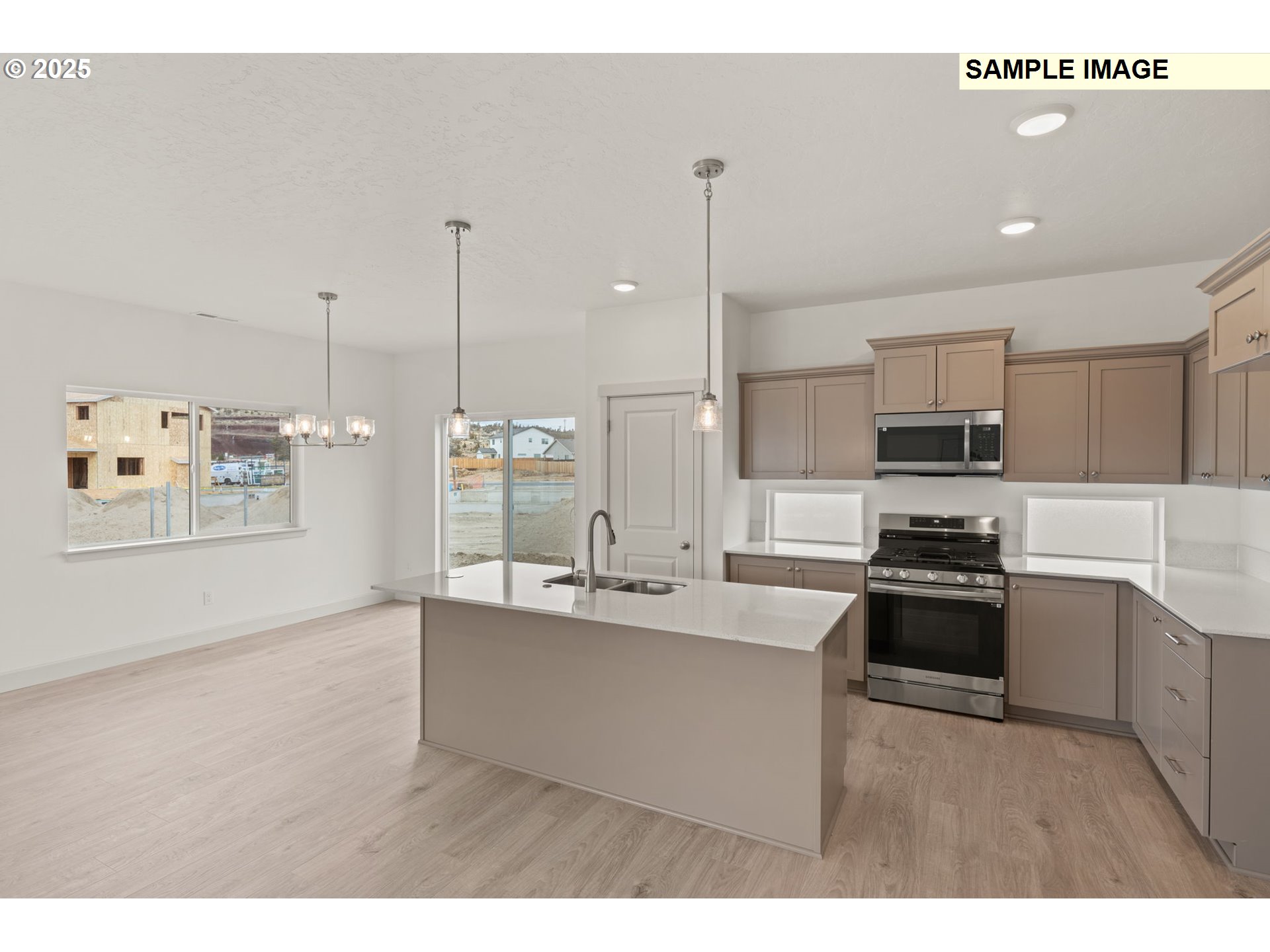 LOT:TE139 - This exquisite brand new 2427 SQFT two level home offers the perfect blend of contemporary design and comfortable living nestled in a quaint cul-de-sac in the desirable Cimmaron Terrace neighborhood in Hermiston OR. 4 bedroom 3 baths with luxurious primary suite with double sinks, freestanding soaking tub, and large walk-in closet. Deluxe chef's kitchen with quartz counters, island with farm sink, and stainless steel appliances including gas range and dishwasher. Open concept living, 9ft ceilings, great room, main level guest suite with full bath, 95% high efficiency forced air heating, air conditioning, dedicated laundry room, spacious loft / bonus room, gas fireplace, front and backyard landscaping, fully fenced, and uncovered side patio. The Douglas built by award winning builder MonteVista Homes.