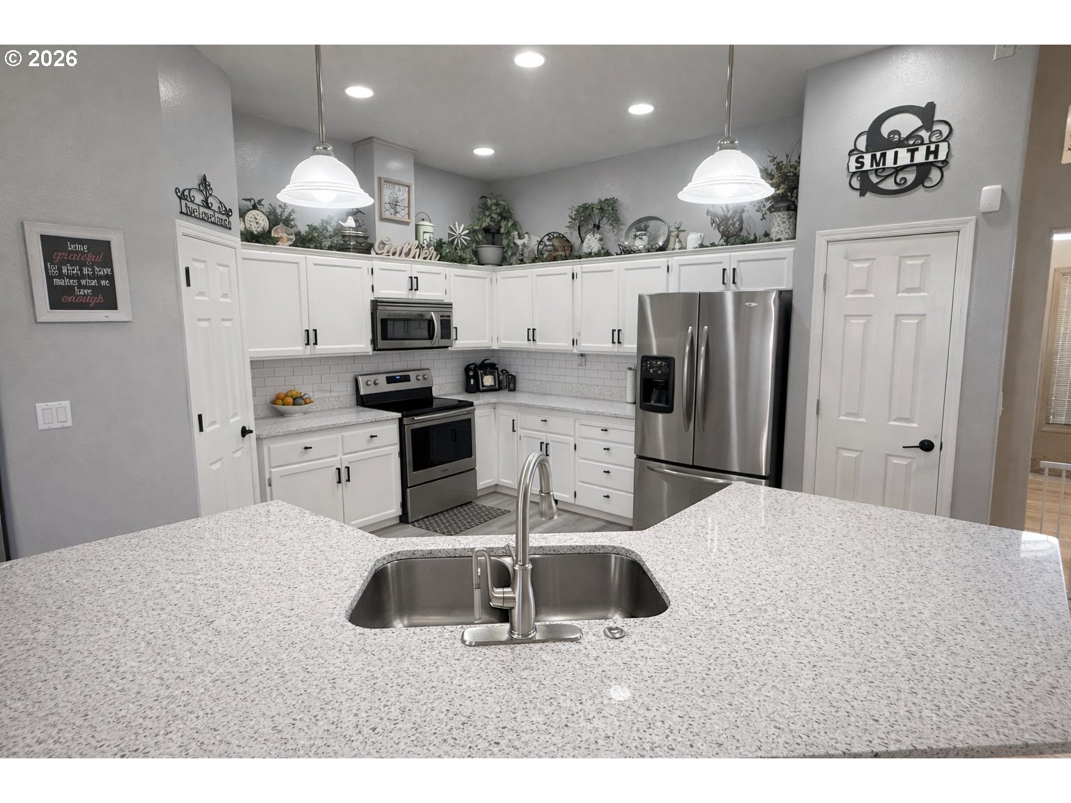 Dishwasher, Disposal, FreeStandingRange, Island, Microwave, Pantry, Quartz, StainlessSteelAppliance