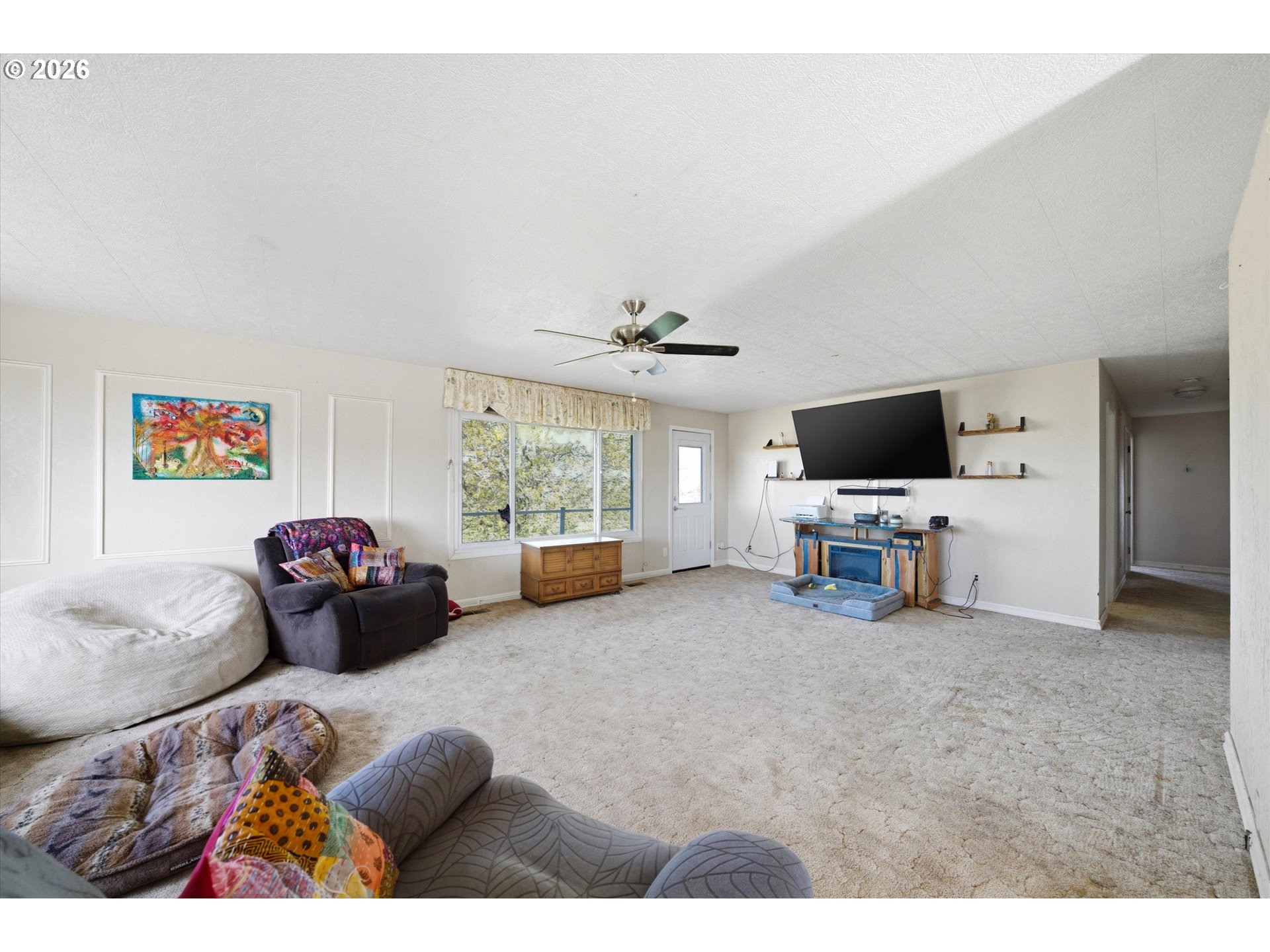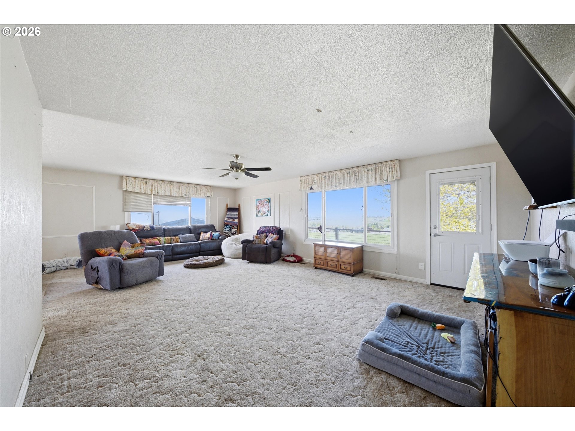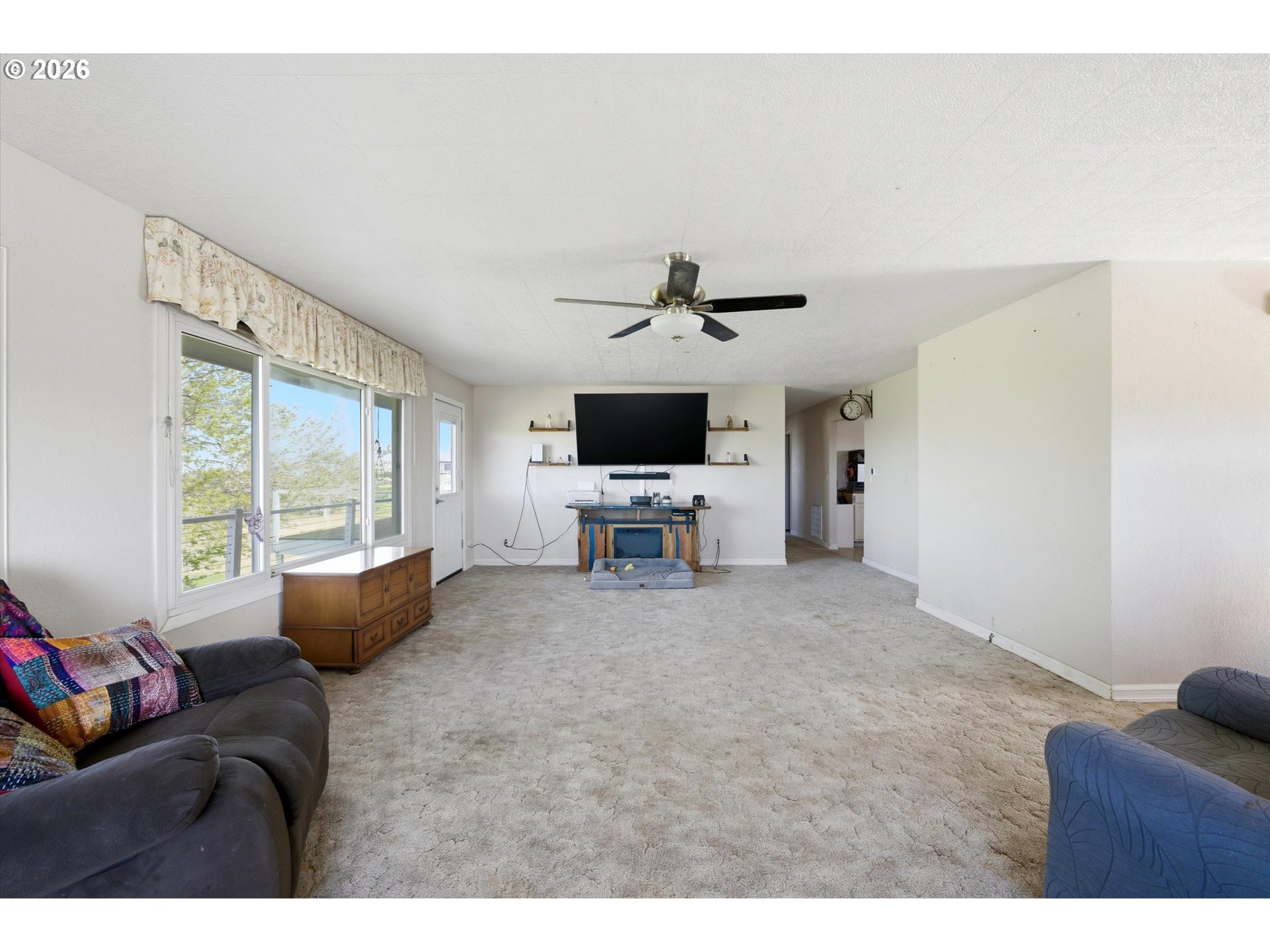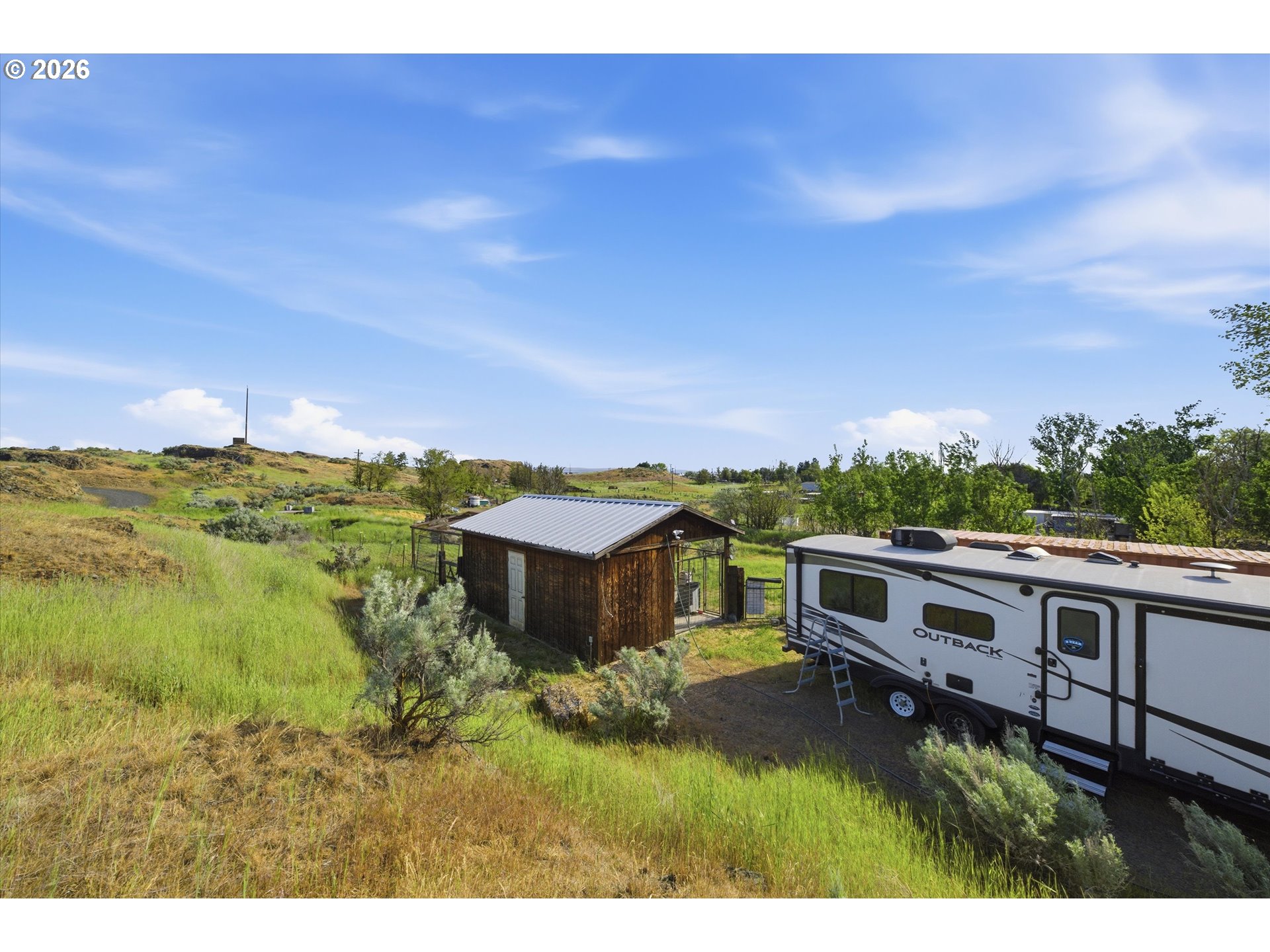 Spacious country retreat with 5 bedrooms, 3 bathrooms and 3,600sqft of comfortable living space on 5+ acres with full water rights. Enjoy peaceful private surroundings with stunning views from the wrap around porch. This property features a large shop, 2 large kennels, full RV hookups, and mature fruit trees. Inside, you'll find comfortable living spaces, a safe room for added security, and all kitchen appliances included for added convenience. Quiet, serene setting that feels remote, yet just minutes from town-giving the best of both worlds.