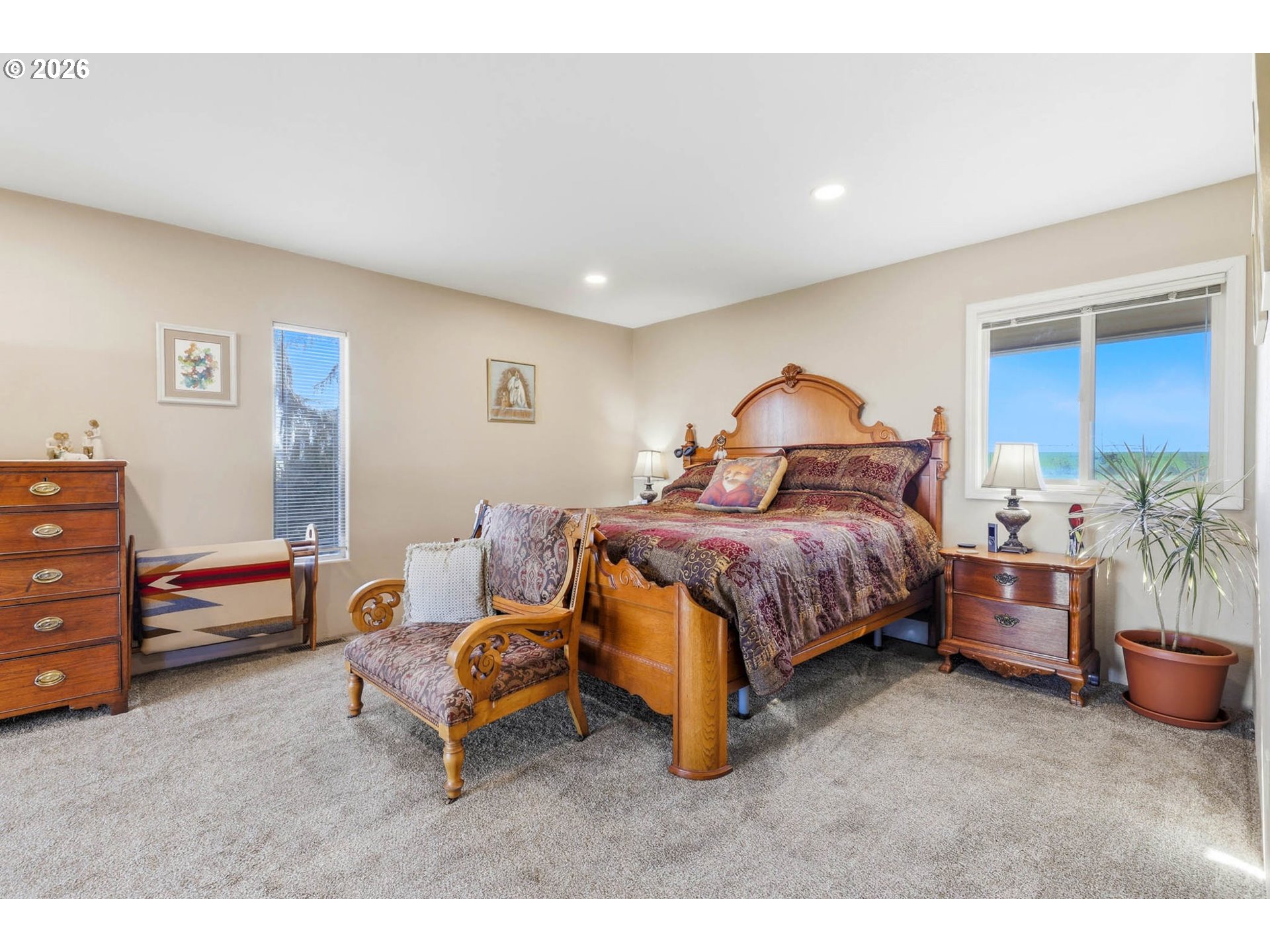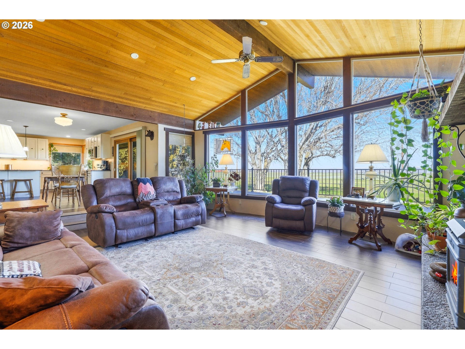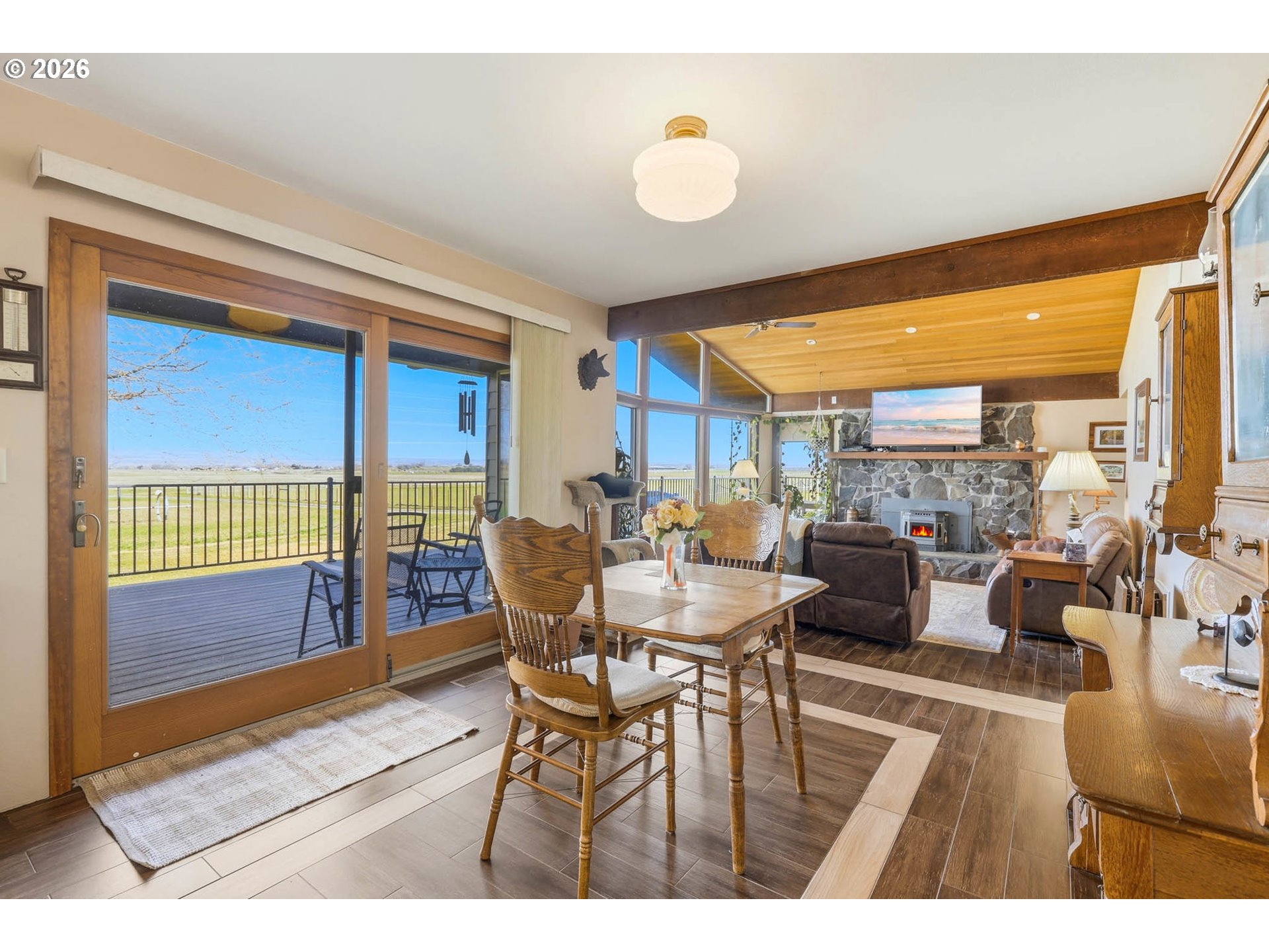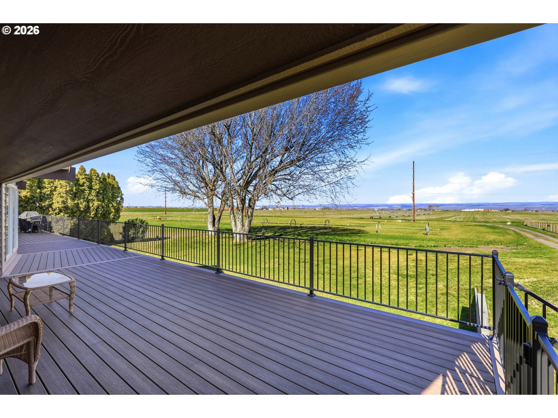 Here's the remarkable small farm lifestyle you’ve been searching for! Set on 15.45 irrigated acres and planted in a new crop of alfalfa. Ready for your animals, equipment, projects, and gardening. The centerpiece for projects is the 30x60 insulated shop. Features propane heat, a loft, dedicated office space, and a bathroom (sewer connection needed). Three 12-ft automatic roll-up doors provide access for equipment, RVs, trailers, or toys, supporting a small business operation, building or restoring. The 2908 sq ft home has been extensively updated with new flooring, paint, and entirely new kitchen, bathrooms and laundry. The kitchen is designed to be the gathering spot and opens to a dining area. From the dining you have access to the newly expanded upper deck—perfect for BBQ-ing and entertaining. The adjacent living room features a stone fireplace as its focal point and vaulted ceilings. The entire North-facing wall in the kitchen, dining and living has expansive windows offering views of the surrounding farm land and the Columbia River gorge. A bonus area off the kitchen serves as a sitting room or second eating area. The spacious primary suite highlights a fully remodeled bathroom with a tiled walk-in shower and dual shower heads. Doors from the suite lead out to the deck for private morning and evening moments. The lower level is built for entertainment, featuring a large game/TV area, a small kitchenette, two spare bedrooms, and a fully remodeled bathroom.This level provides access to the tuck-under garage, ideal for tinkering with small toys or use as a home gym. The home also includes an attached two-car garage, accessible from the upper living space. The homes exterior has been freshly painted and the roof was replaced in 2016. If your vision includes acreage, a substantial shop, and the opportunity to enjoy your own income-producing farm, this property delivers on all fronts. Schedule a private showing to see how it fits your needs.