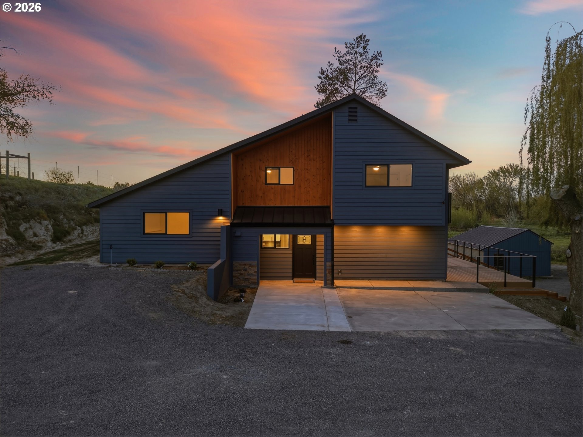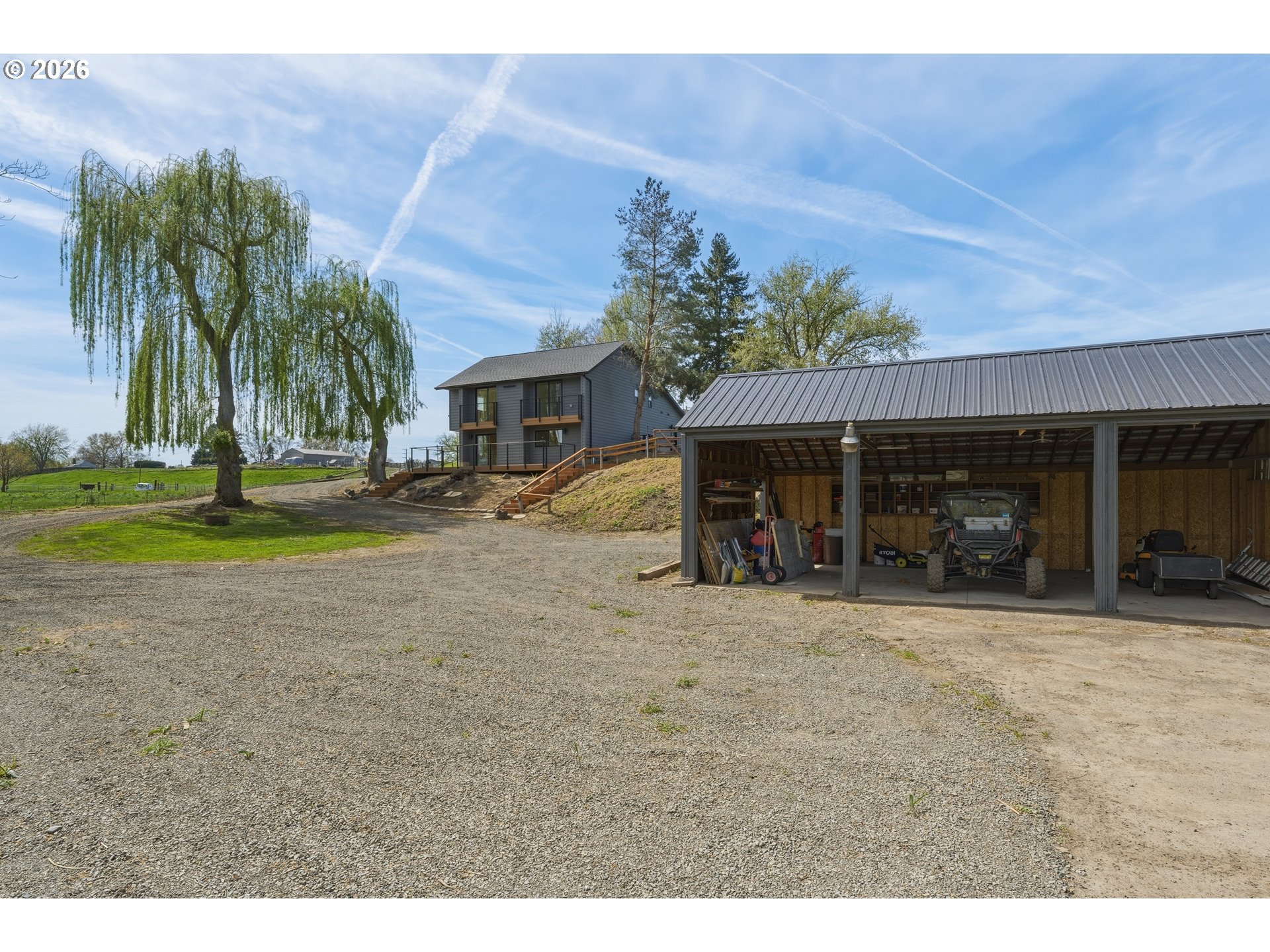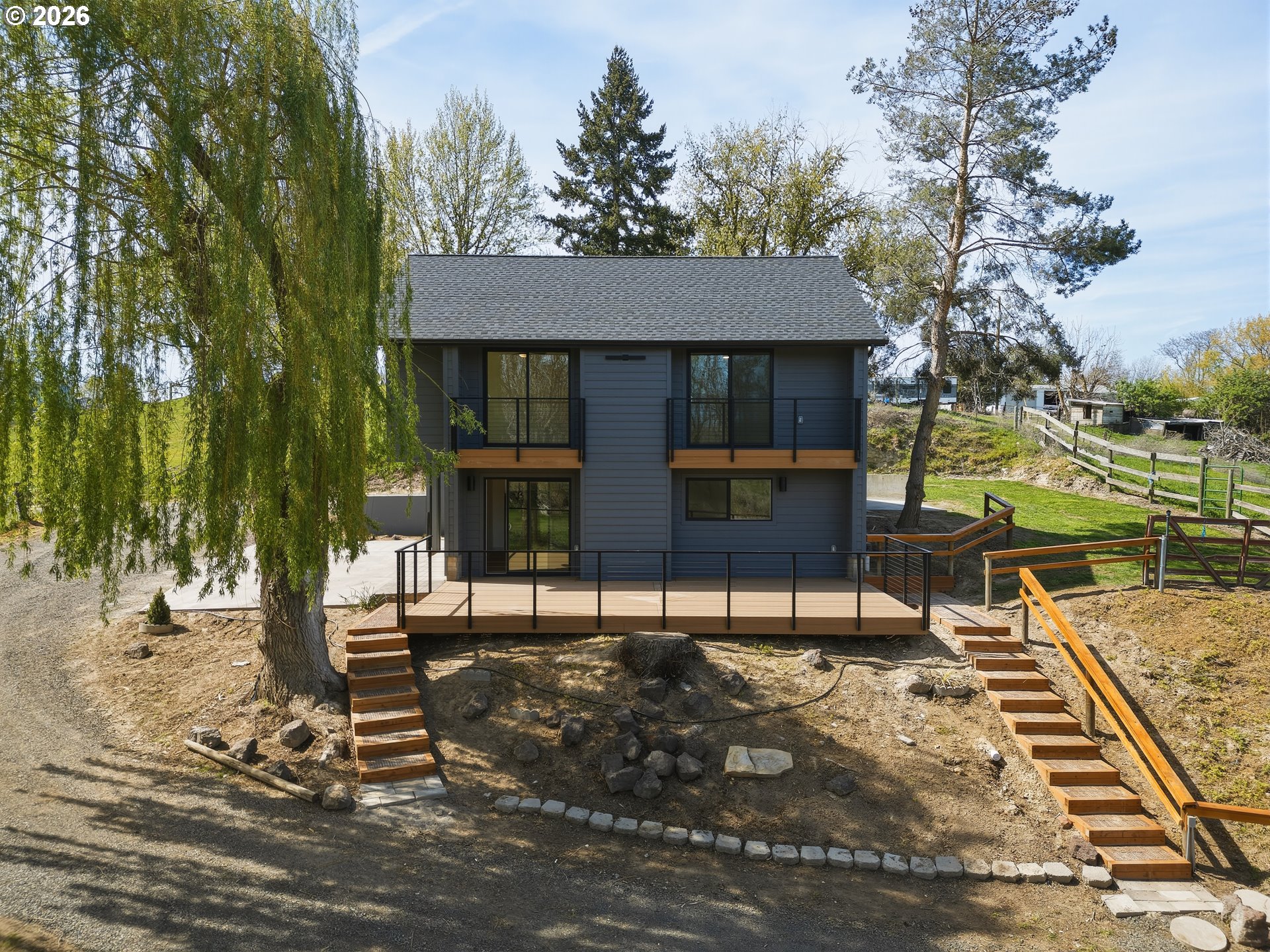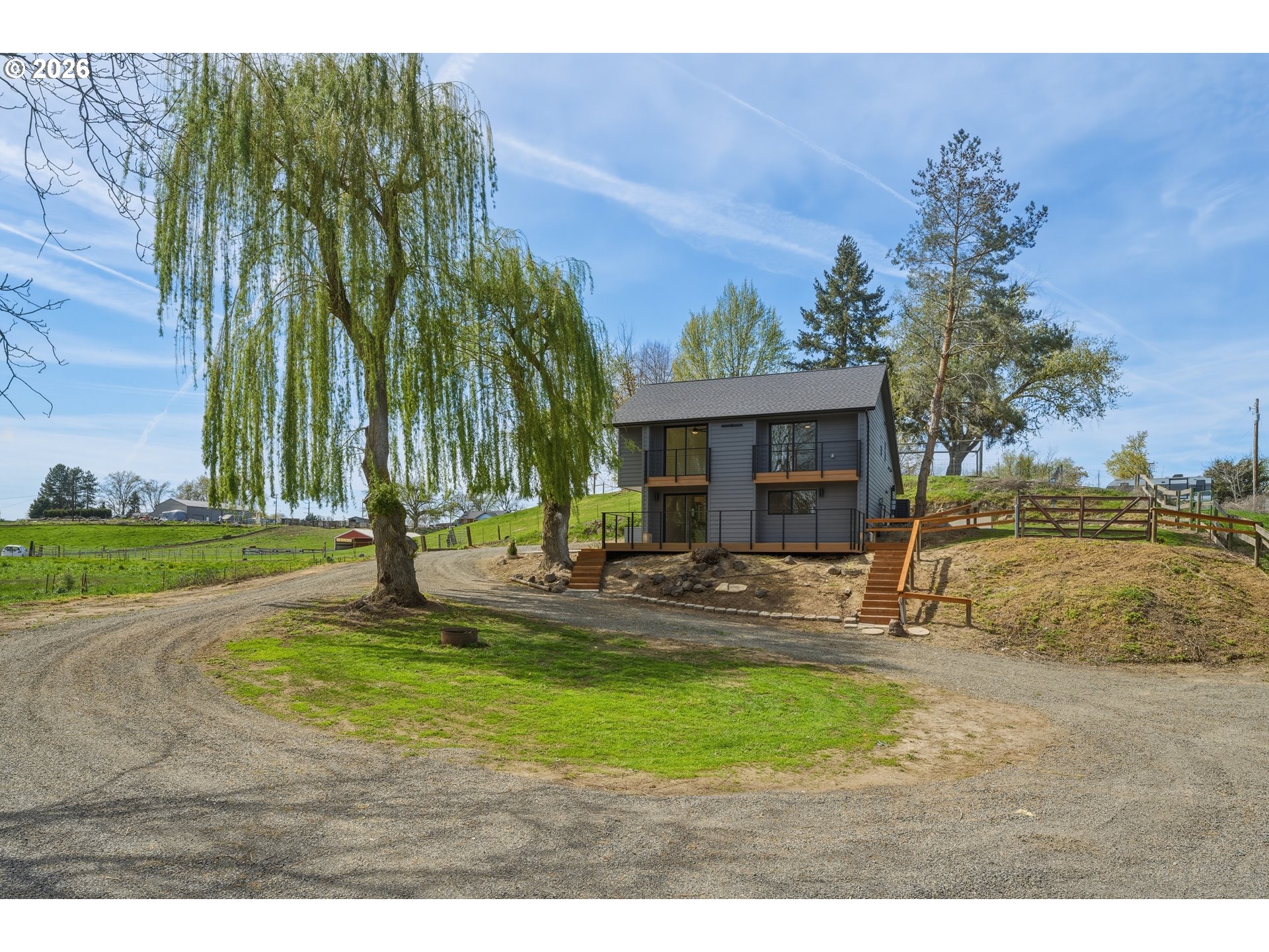 Set on 2.4 private acres, this completely updated countryside home offers peaceful living with plenty of room to roam. Inside you'll find high quality finishes and thoughtfully selected tile work throughout. The kitchen has been fully updated with new cabinetry, granite countertops, a pot filler, brand new Frigidaire appliances, and a versatile workstation sink—perfect for everyday living and hosting. Both bathrooms offer a spa-like experience with elegant tile designs and heated tile floors. The middle floor boasts an oversized laundry room with attic storage and an expansive bonus room ready to adapt to your needs—whether as a home office, gym, media room, or guest space. Designed for both relaxation and entertaining, the outdoor space includes seating areas on three sides of the house, two private bedroom balconies, and a beautifully crafted deck that complements the home’s bold architectural style. A three-bay covered parking area completes this property, rounding out a true one-of-a-kind space. All visits to the property require an appointment. Please no drive-bys- private lane with no turn around. Call your agent for a showing before this one is gone!