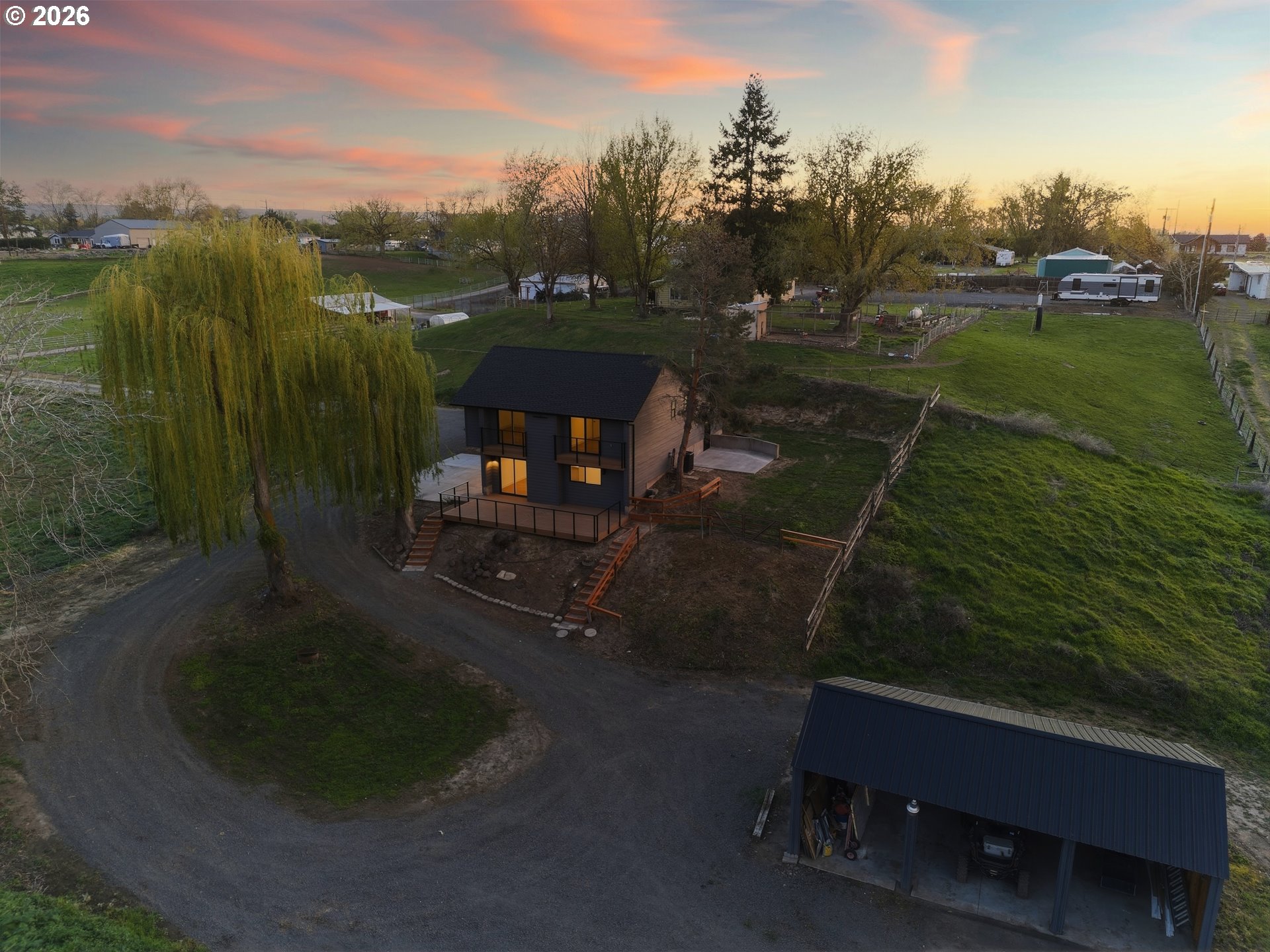 Deck, FirePit, Outbuilding, Patio, PrivateRoad, RVParking, Sprinkler, ToolShed, Yard