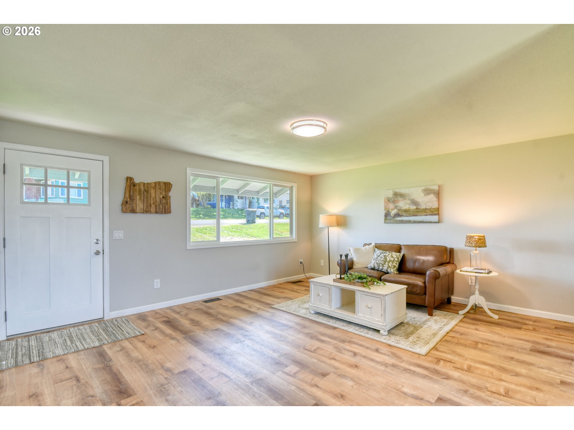 WELCOME HOME! Completely updated three bedroom/one bath home located on .18 acre corner lot in Pilot Rock. Light, bright and move in ready! New exterior paint, roof and vinyl windows. Beautiful LVP flooring throughout. New kitchen with a gorgeous sink and fancy faucet, butcher block countertops, built-in microwave, new appliances and a pantry. Large open living room and dining area. A really nice bathroom! Convenient attached single car garage with access to the kitchen and the backyard. New central heating and air. All appliances are included. Great opportunity to own an updated home on a corner lot and enough outdoor space to accommodate all your needs.