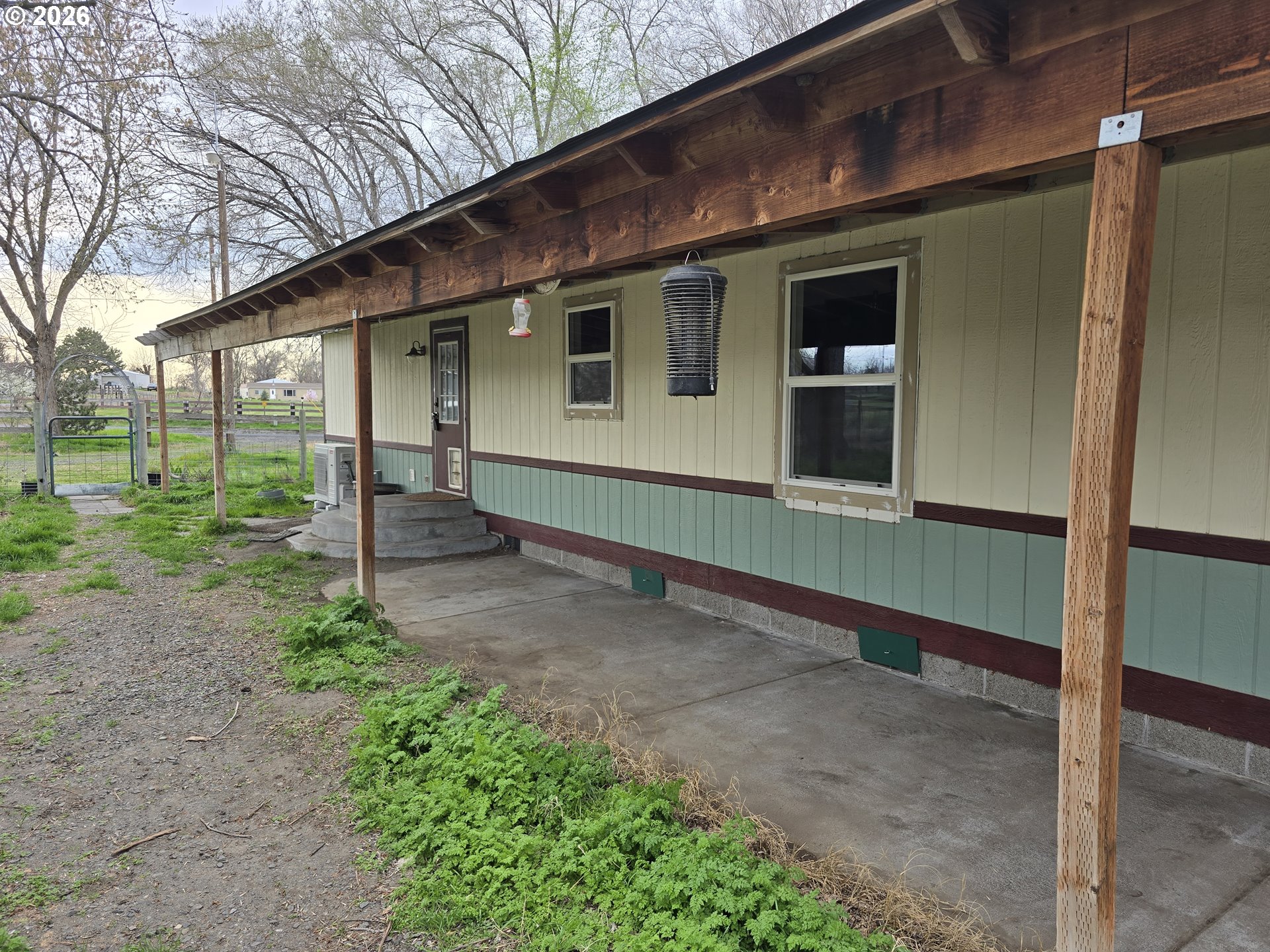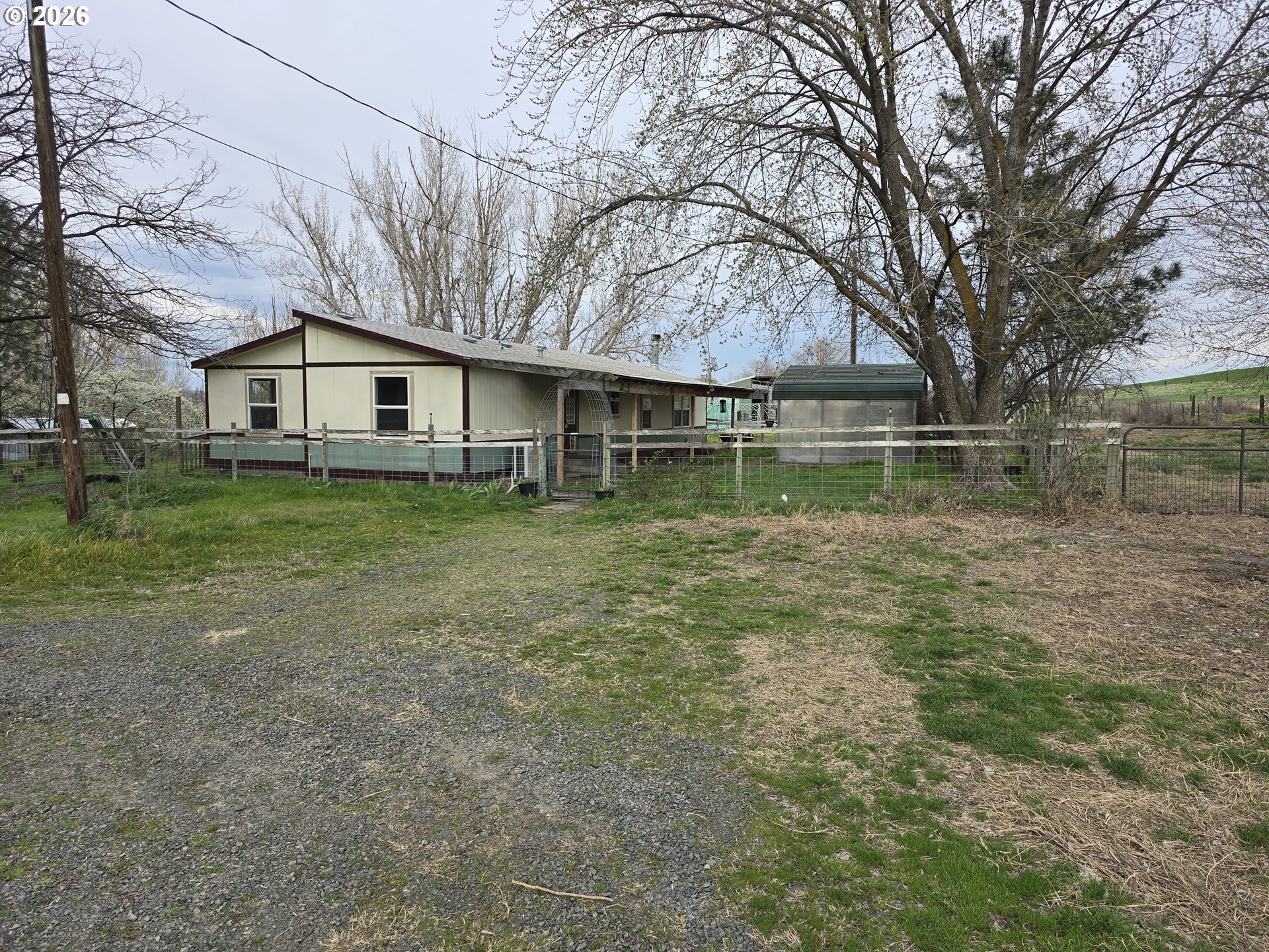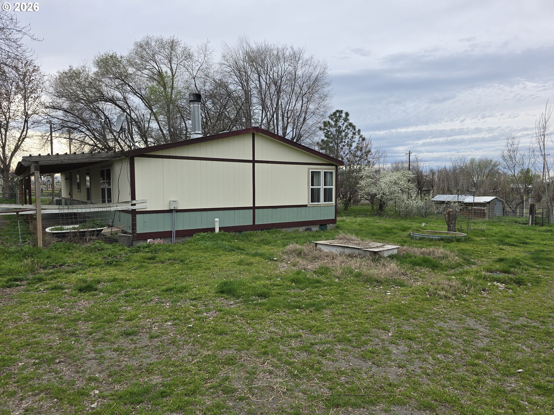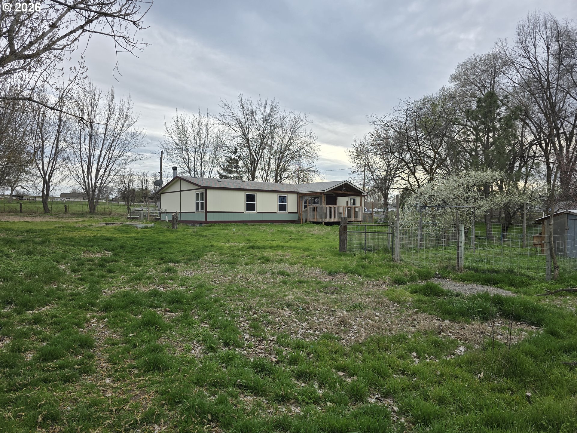 3 bed, 2 bath, 1,568 sq ft double-wide on two tax lots totaling 7.94 acres with 7.3 acres of water rights. Property is divided into four irrigated fields, with irrigation pipes included. Major updates already completed: HVAC system with Ecobee thermostat (2024), sandpoint well pump (2023), septic work (2020), and brand-new windows (2026). Home owner had an inspection completed and made many repairs throughout. Now the home is ready for your vision and renovations—great opportunity for customization, small farming, or investment. SOLD AS IS.