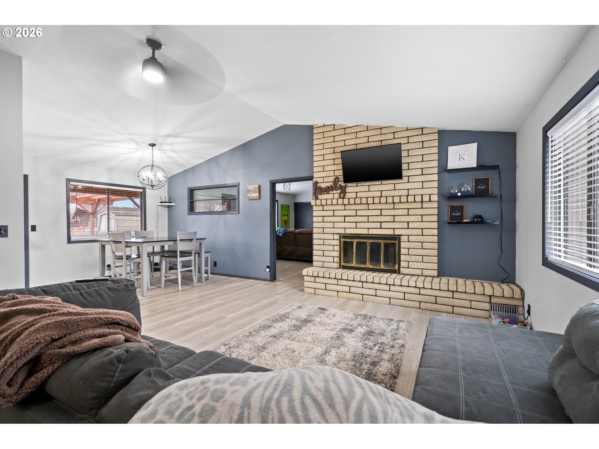 Welcome to 815 Quince Ave. This spacious 2378 sq. ft. home offers more than meets the eye. County shows this as a 3 bed, 2 bath, but there is a 4th bedroom with french doors leading to the adjacent fenced courtyard. This home has flexible space for guests, home office, hobbies, and a large family. You will love the inviting galley kitchen perfect for efficient meal prep and everyday living. A cozy gas fireplace and a warming wood burning fireplace create warm space to gather. Vaulted ceilings for that open feel, ceiling fans, LVP, and wall to wall carpet in the bedrooms. Home also features a water softener, 2 car garage, large courtyard for gatherings and relaxation on a fenced and cross fenced back yard which provides RV parking, raised garden beds, storage, and an outbuilding. Located on a public road with a large corner lot for space, versatility, and functionality. Make it your dream home. New and fresh interior paint and flooring throughout.