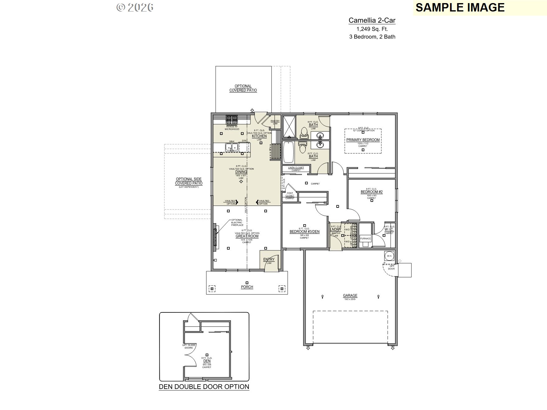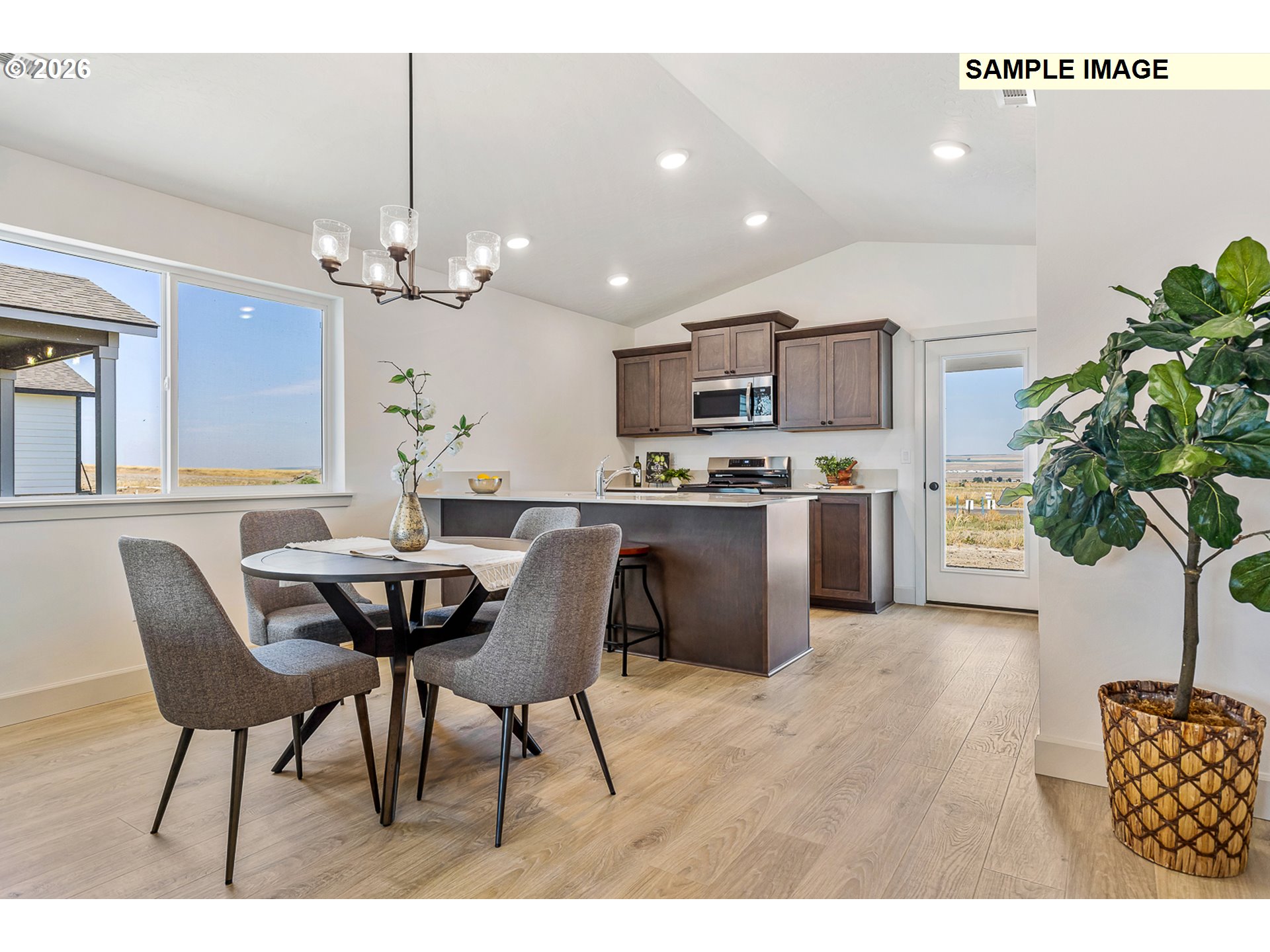 LOT:UM10 - Under construction - Estimated completion May 2026 - Brand new 1249 SQFT one level home in the Upland Meadows neighborhood in Hermiston OR. 3 bedroom 2 bath with luxurious primary suite with walk-in shower and large closet. Deluxe chef's kitchen with quartz countertops, pantry, and stainless steel appliances including gas range and dishwasher. The Camellia floor plan built by award winning builder MonteVista Homes. Great room open design, vaulted ceilings, 95% high efficiency forced air heating, air conditioning, electric fireplace, dedicated laundry room, and covered patio.