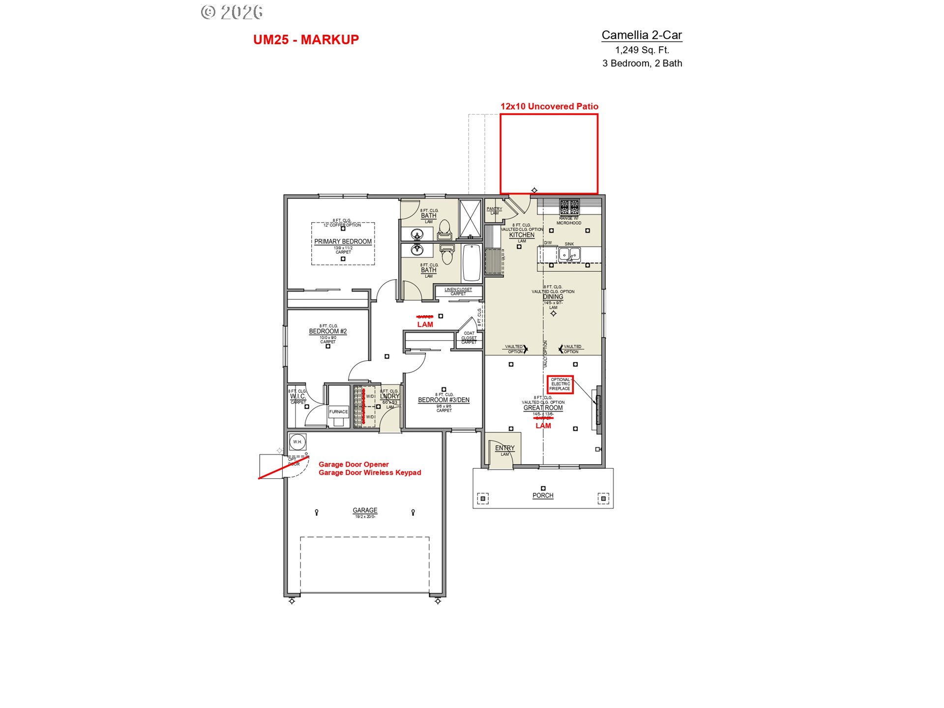 LOT:UM25 - Under construction - Estimated completion June 2026 - Brand new 1,249 SQFT one level home in the new Upland Meadows neighborhood in Hermiston OR. 3 bedroom 2 bath with luxurious primary retreat with large closet and ensuite. Deluxe chef's kitchen with quartz countertops, pantry, and stainless steel appliances including gas range and dishwasher. The Camellia floor plan built by award winning builder MonteVista Homes. Great room open design, vaulted ceilings, 95% high efficiency forced air heating, air conditioning, electric fireplace, dedicated laundry room, and concrete patio.