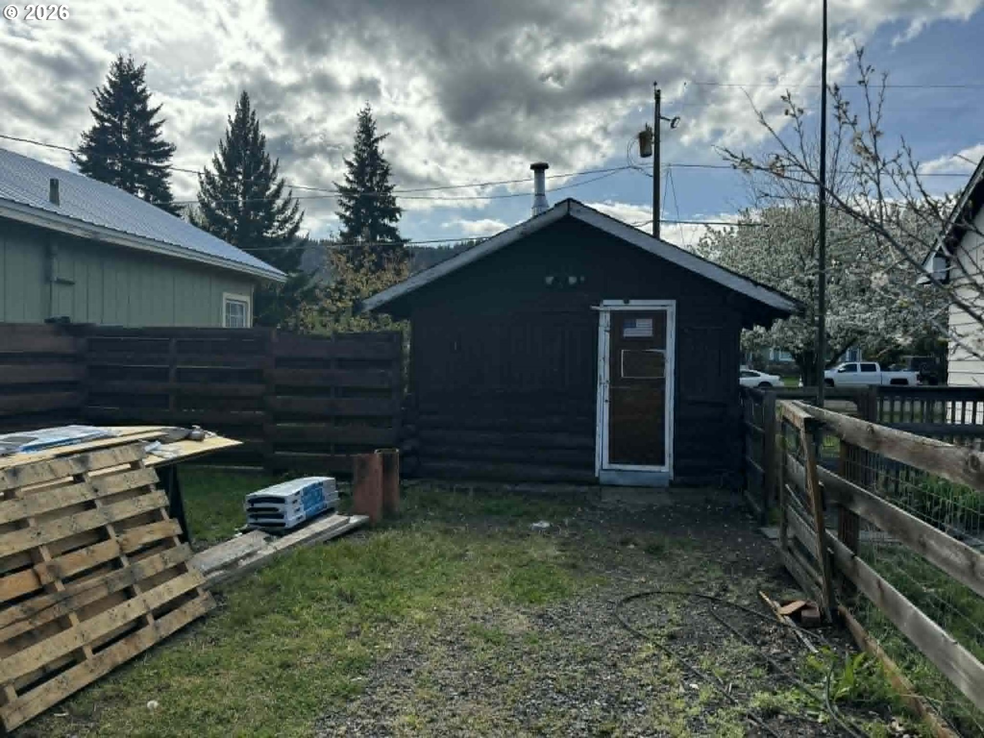 Located in La Grande, this property offers a unique opportunity with flexibility for a variety of uses. Situated on a 0.10 acre lot, the property features a small workshop with a log cabin-style exterior, providing immediate utility for storage, hobbies, or workspace. The property may allow for the construction of a home with a footprint of 22 feet or less in width, or placement of a modular cottage home, making this an appealing option for those seeking a smaller-scale build or efficient living setup. Buyers to verify all building and placement requirements directly with the city. Conveniently located within city limits, the property offers close proximity to local amenities, services, and utilities while still providing a functional space to work, build, or invest. Whether you’re looking for a project site, future development potential, or a dedicated workspace, this property offers a range of possibilities. Buyer to perform due diligence regarding permitted uses, utilities, and development potential.