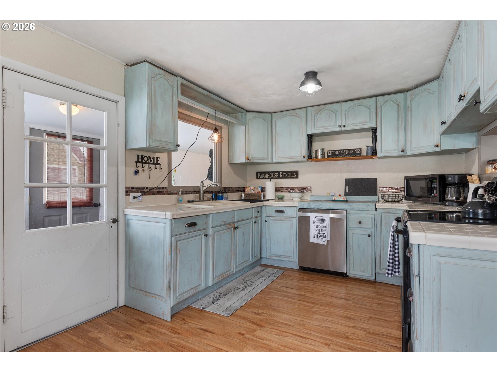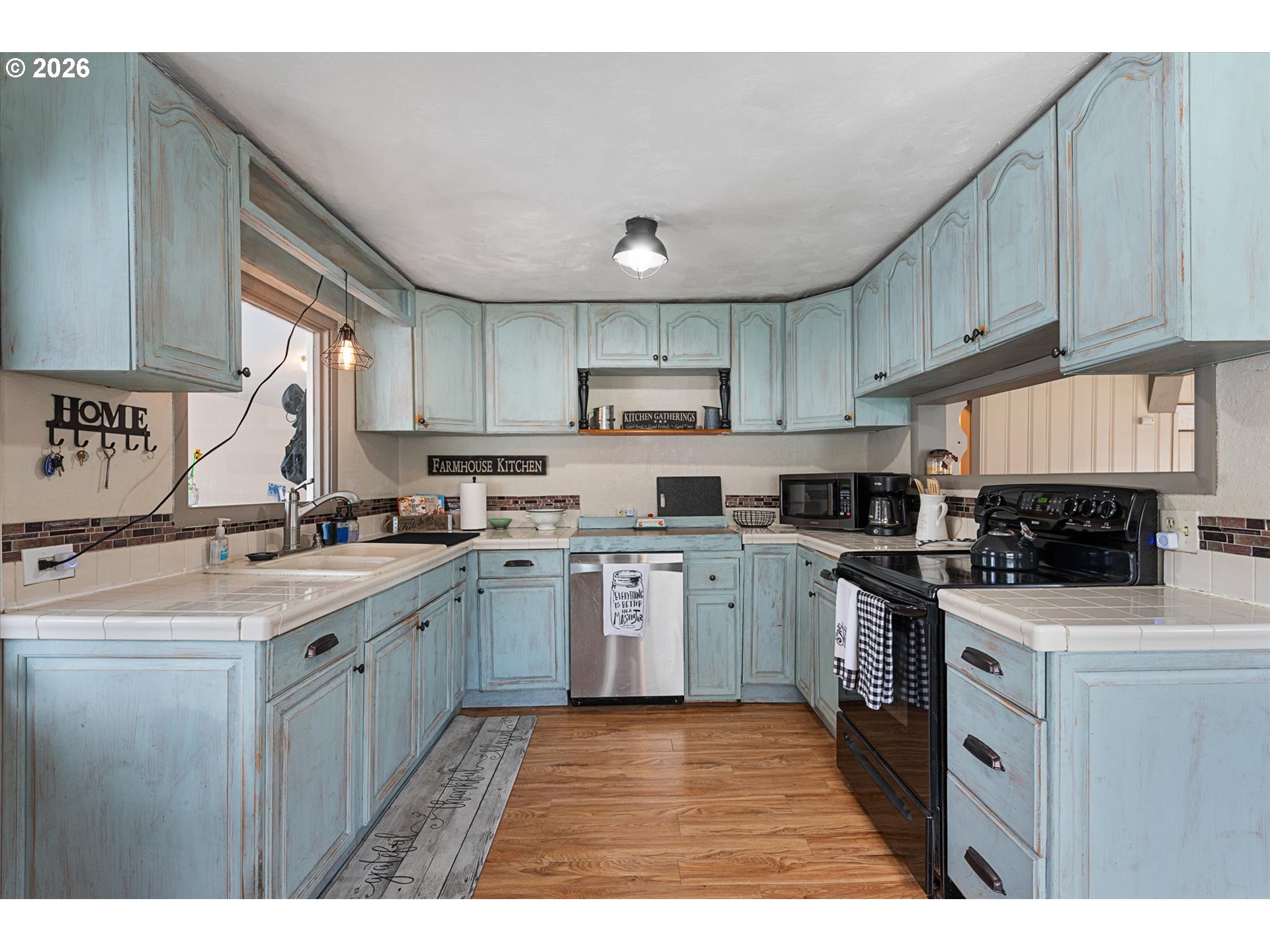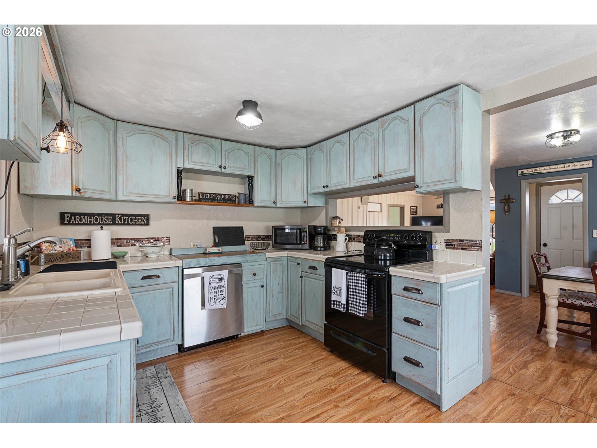 Dishwasher, FreeStandingRange, FreeStandingRefrigerator, PlumbedForIceMaker, StainlessSteelAppliance, Til
