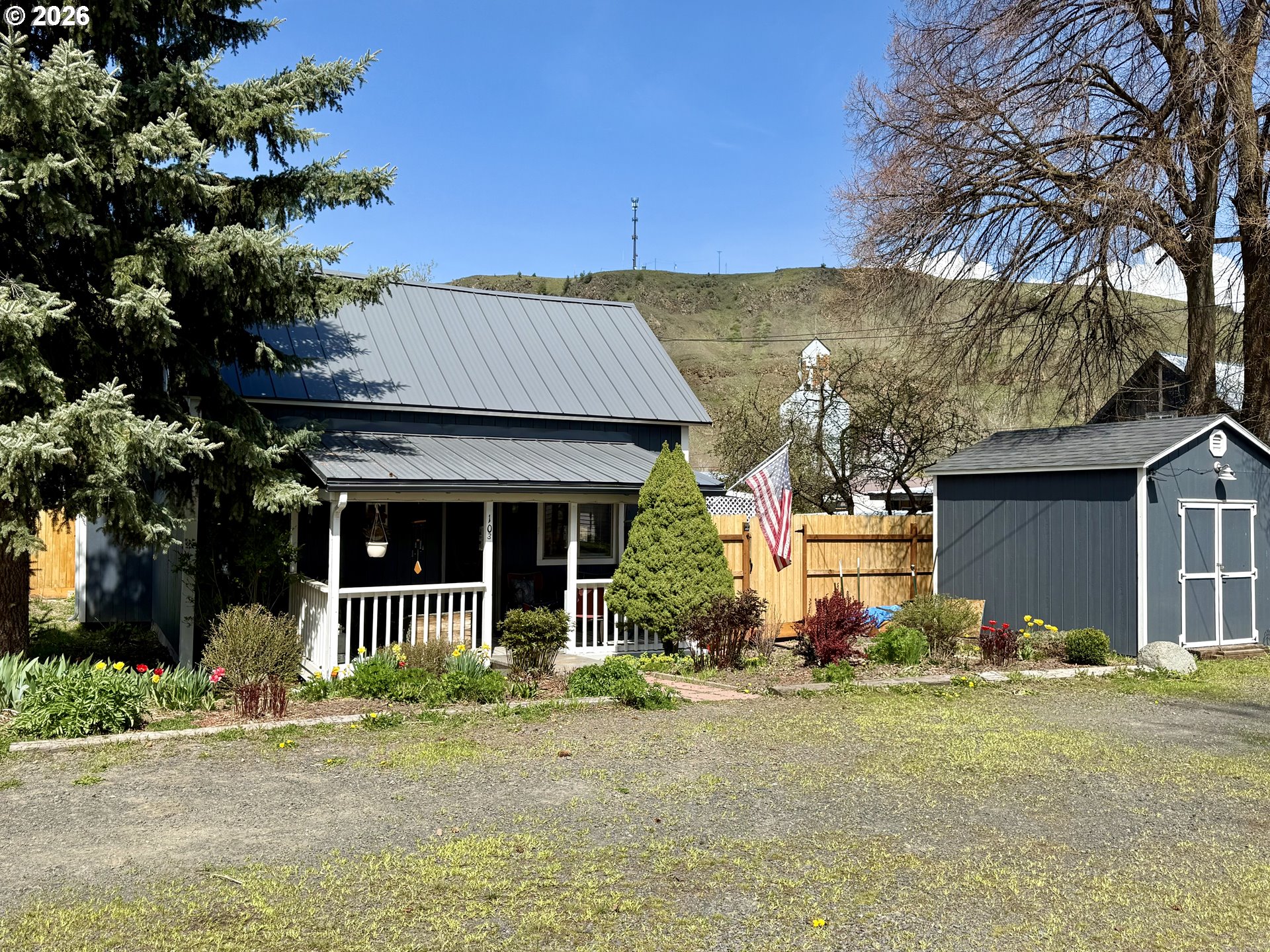 Welcome Home!! Step in from your inviting front covered porch to a bright open living area featuring new flooring and fresh interior paint that flows throughout this 3 bedroom 2 full bath residence. The heart of the home is a spacious kitchen with newer appliances included, conveniently located next to a dedicated laundry room, that comes with the washer and dryer. You will appreciate the Significant updates, including a brand new lock tight metal roof, fresh exterior paint, offering true peace of mind. Outside, the property is a private oasis featuring a large back patio, and deck with a lush yard, mature trees, all secured by a new full privacy fence. Hobbyists and gardeners will love the multiple outbuildings, which include a dedicated workshop and a fenced garden area ready for planting. Garage with easy alley access is just another bonus this property has to offer. Nestled in a quiet neighborhood perfect for evening entertaining and conveniently located to all that the quaint town of Wallowa has to offer! Pack your bags and fall in love on 4th street!!