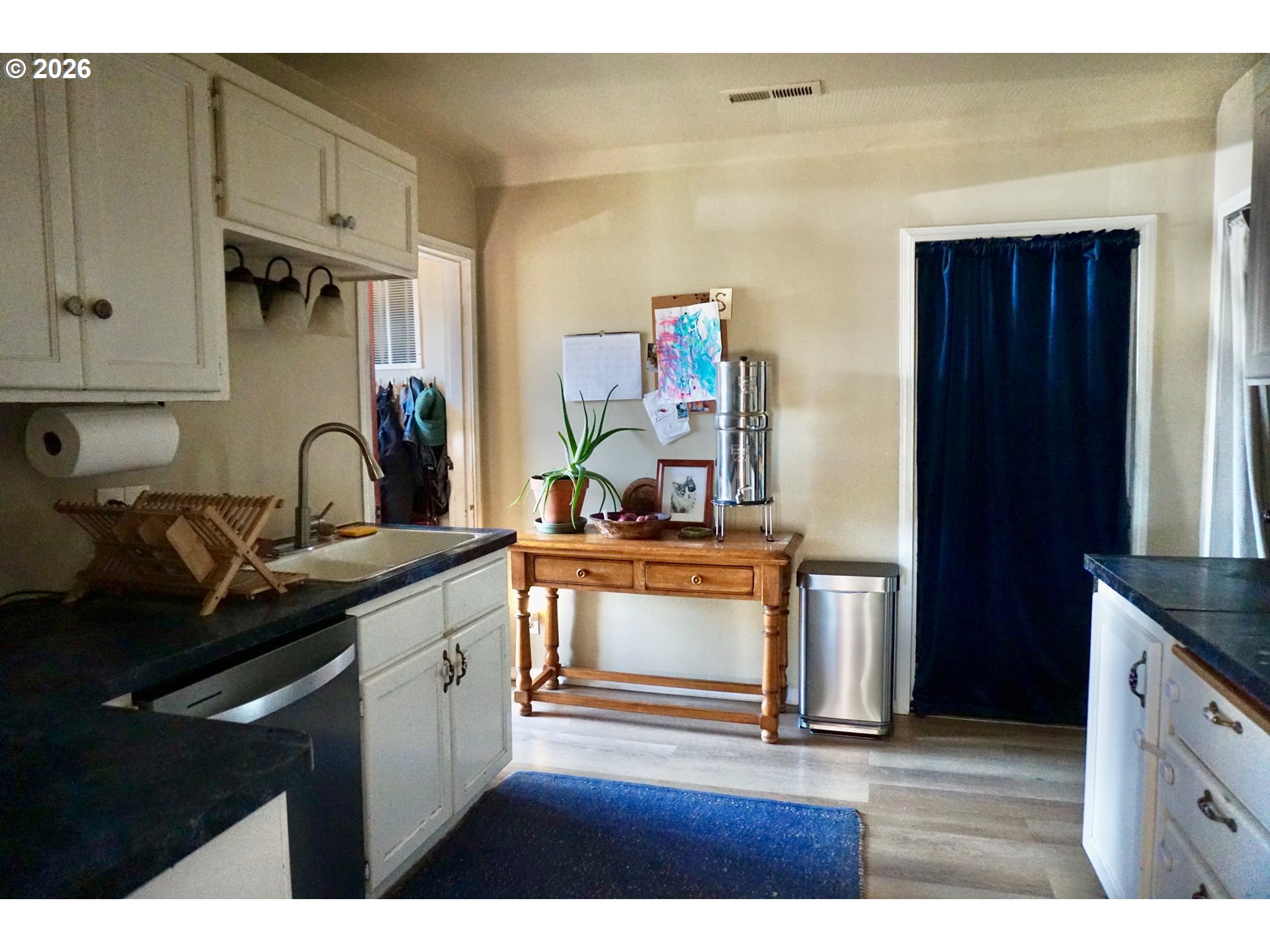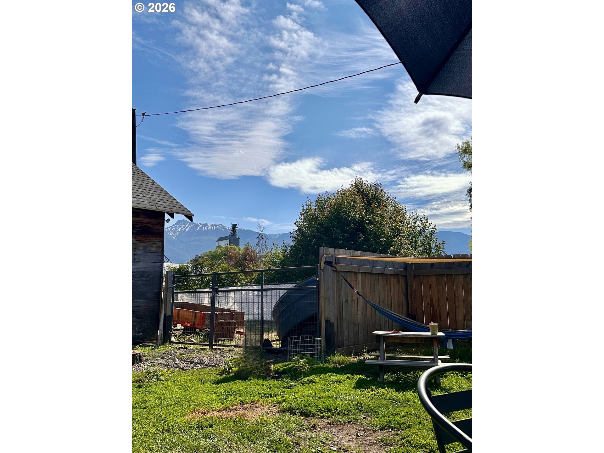 1919 Craftsman in the heart of Enterprise — 1,680 sq ft, 3 bedrooms, 1 fully renovated bathroom (2025), new kitchen appliances, fresh flooring throughout, and original hardwood character. The Wallowa Mountains frame nearly every window. The 720 sq ft workshop is a rare find — solid construction, endless possibilities for a woodshop, art studio, or home business. Nearly half the size of the main house. Established cottage garden with peonies, roses, lilacs, hydrangeas, raised beds, fruit trees, and a handmade chicken coop. Fenced and ready for your homestead vision. Walk to Enterprise's Main Street in minutes. Quiet neighborhood, strong community, and mountain access at your doorstep. Move-in ready.