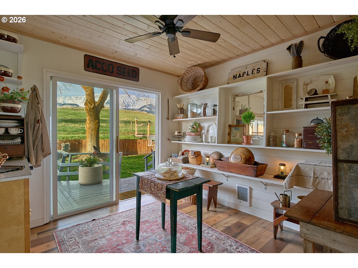 Just 1.7 miles from Wallowa Lake, this updated home offers comfort, character, and a functional layout with views of the Wallowa Mountains and Seven Devils.Recent improvements include updated electrical and a new water heater. Heating is provided by a new propane fireplace, mini split system for efficient heating and air conditioning, along with zoned electric heat for added flexibility.Inside, wood plank flooring, pine doors, and abundant natural light create a warm, inviting feel. The updated bathroom features a classic clawfoot tub, adding a touch of vintage style.Enjoy the outdoors from the 334 sq ft back deck or the new covered front porch with cedar accents. The backyard borders an open field, creating a more expansive feel, and includes a water feature, herb garden, and a mix of mature trees, crabapple, maple, and birch for summer shade, along with plum and lilac.The property also features an insulated 20x20 shop with a new 220 electric panel and propane heater, a 6x8 garden shed, two-car carport, and ample parking.This 2 bed, 2 bath home offers a well-rounded combination of updates, usable space, and a beautiful setting close to Wallowa Lake, with additional thoughtful features throughout that are best appreciated in person.