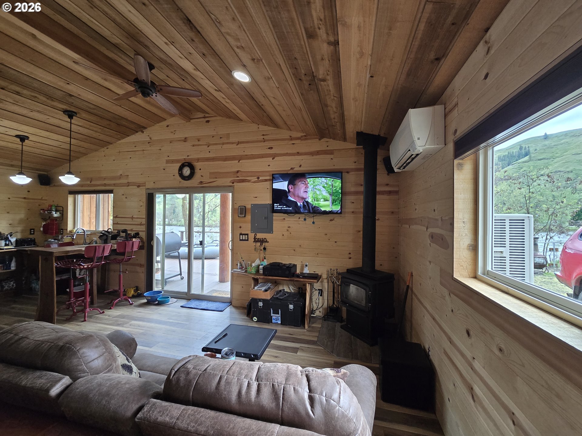 Have you ever dreamt of a Utopia right on the River?? Experience this one of a kind Troy Oregon Property with 110 feet of Grande Ronde River frontage! A Fishermen's Paradise! This meticulously cared for property checks all the boxes. The main cabin has a beautiful pine tongue and groove walls and cedar vaulted ceiling with a storage loft and mini-split, this is anything but roughing it!! A full bathroom with fun lighting and a stacking washer and dryer unit. The open kitchen with all appliances has gorgeous handmade black walnut counters. The wood stove offers heat and adds to the cozy atmosphere! Experience the expansive deck with the most Amazing views in every direction a perfect place for kicking back and relaxing or entertaining! There is a wall tent on a deck with a metal roof that makes the quaint bunkhouse with power and its own woodstove and sliding door a bonus. There is a 2 bay shed that is great for firewood and parking your toys. The extra shed with shelves and power makes a great place to store all your essentials and supplies. there is plenty of parking space for Rvs or extra tent space. This property has a well and newer septic system with 1,000 gallon tank. all this behind a fully fenced and gated, convenient location right in the desirable town of Troy! Dont let this one pass you by!! Meet you in Troy!!