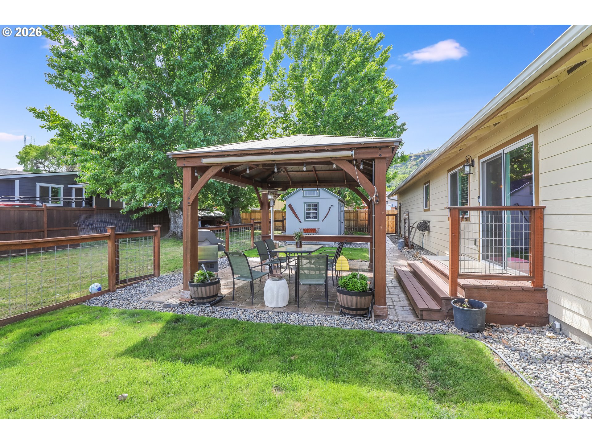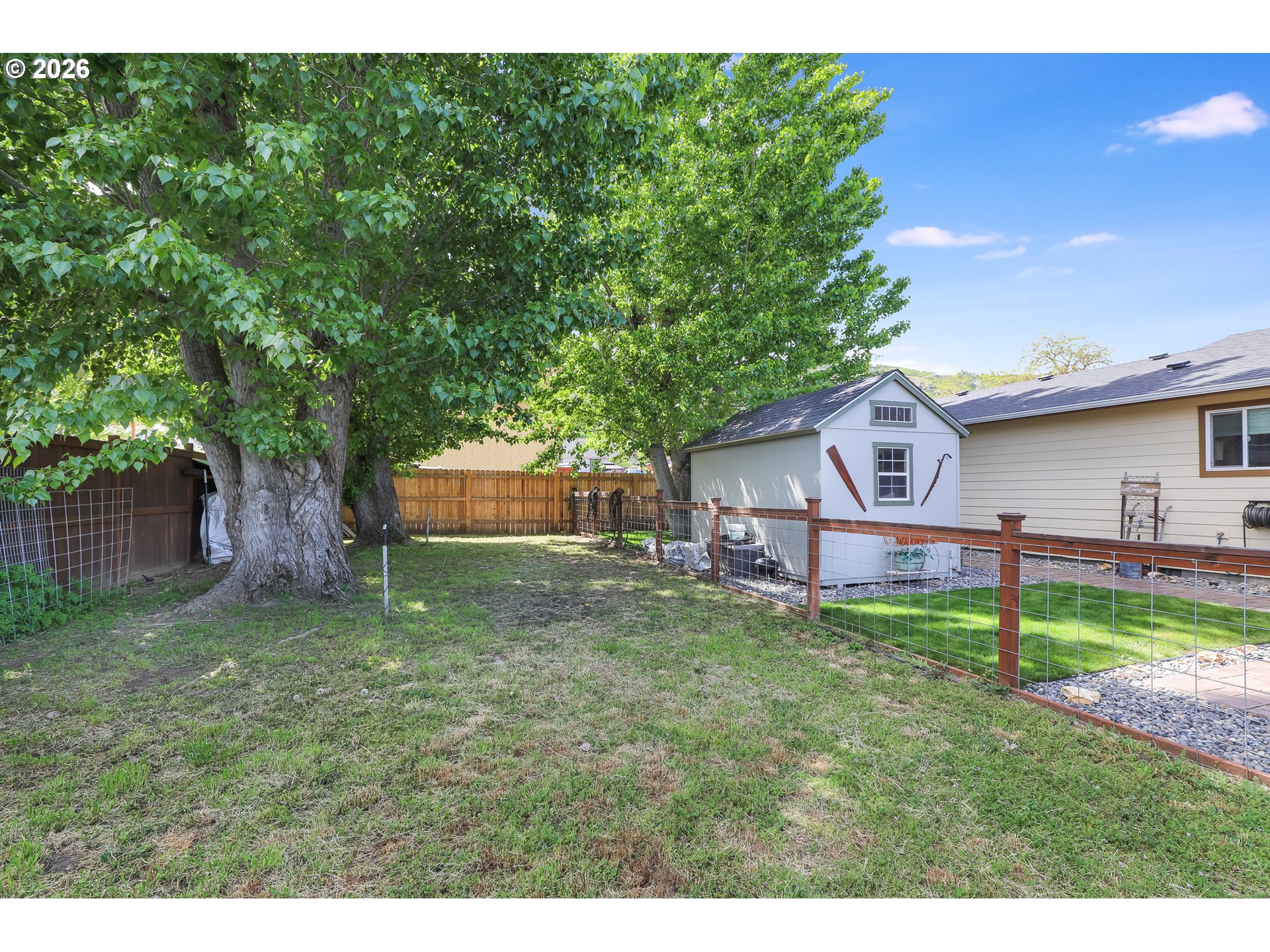 Deck, Fenced, Garden, Patio, Porch, RaisedBeds, Sprinkler, ToolShed, Yard