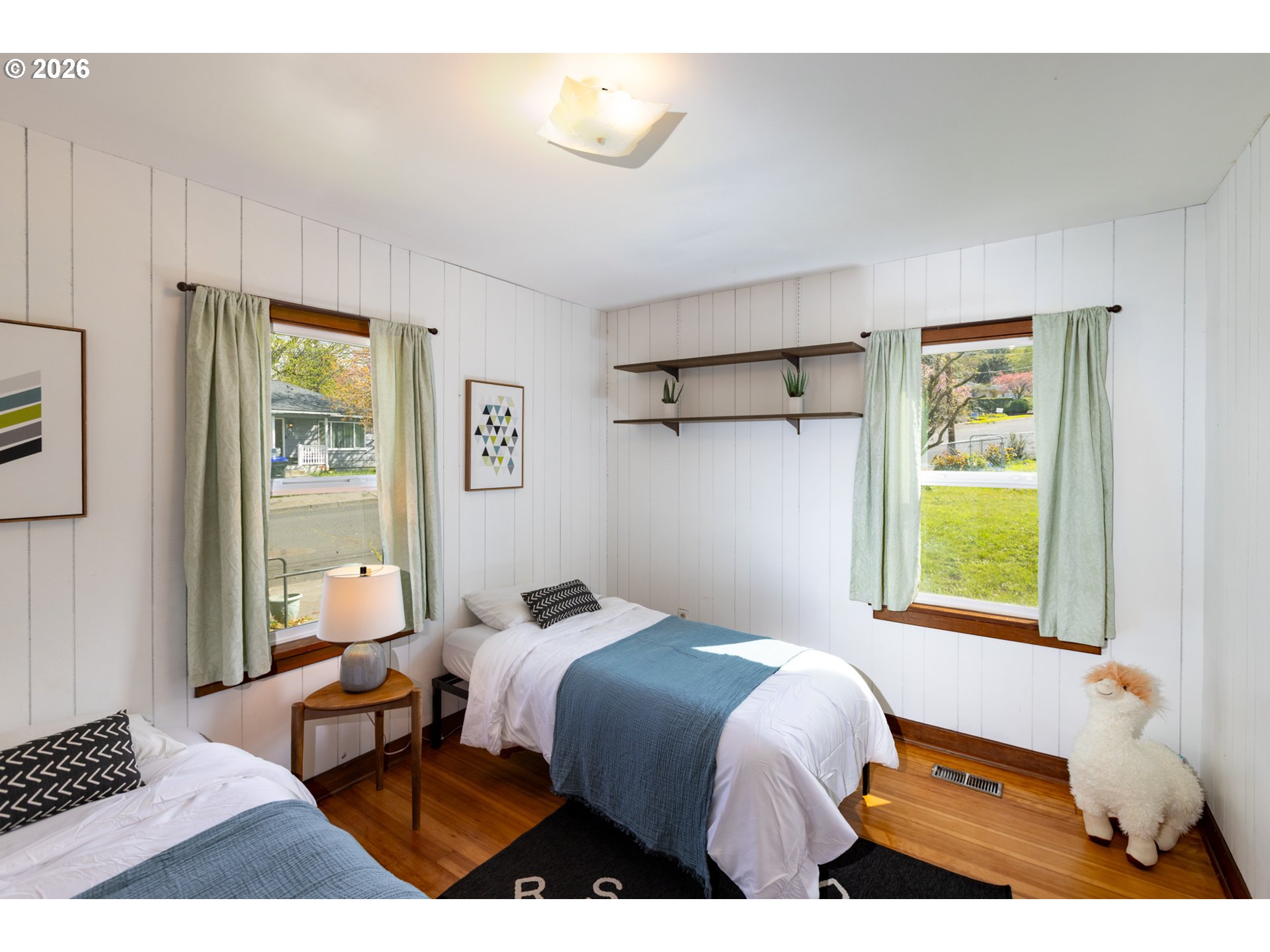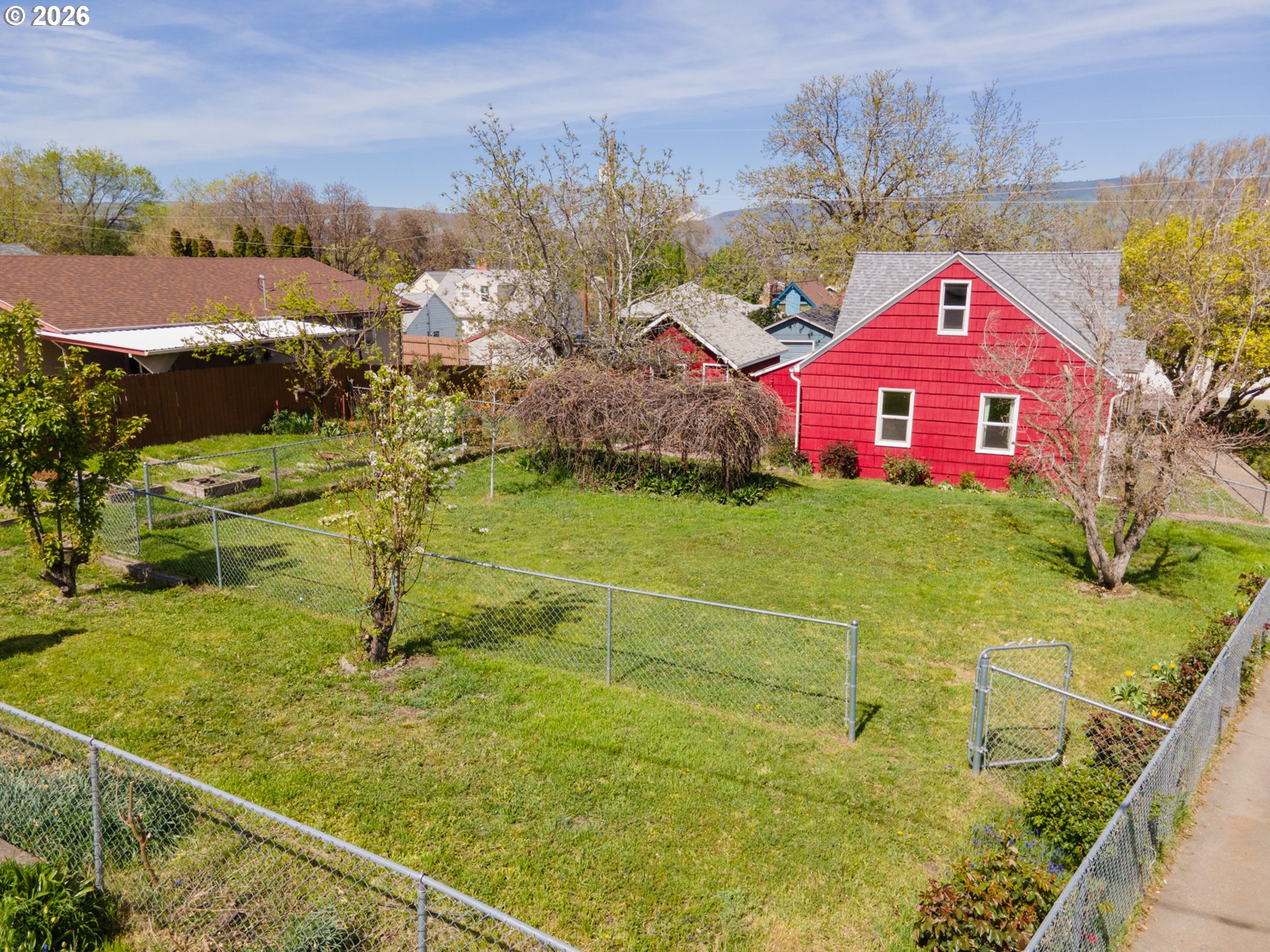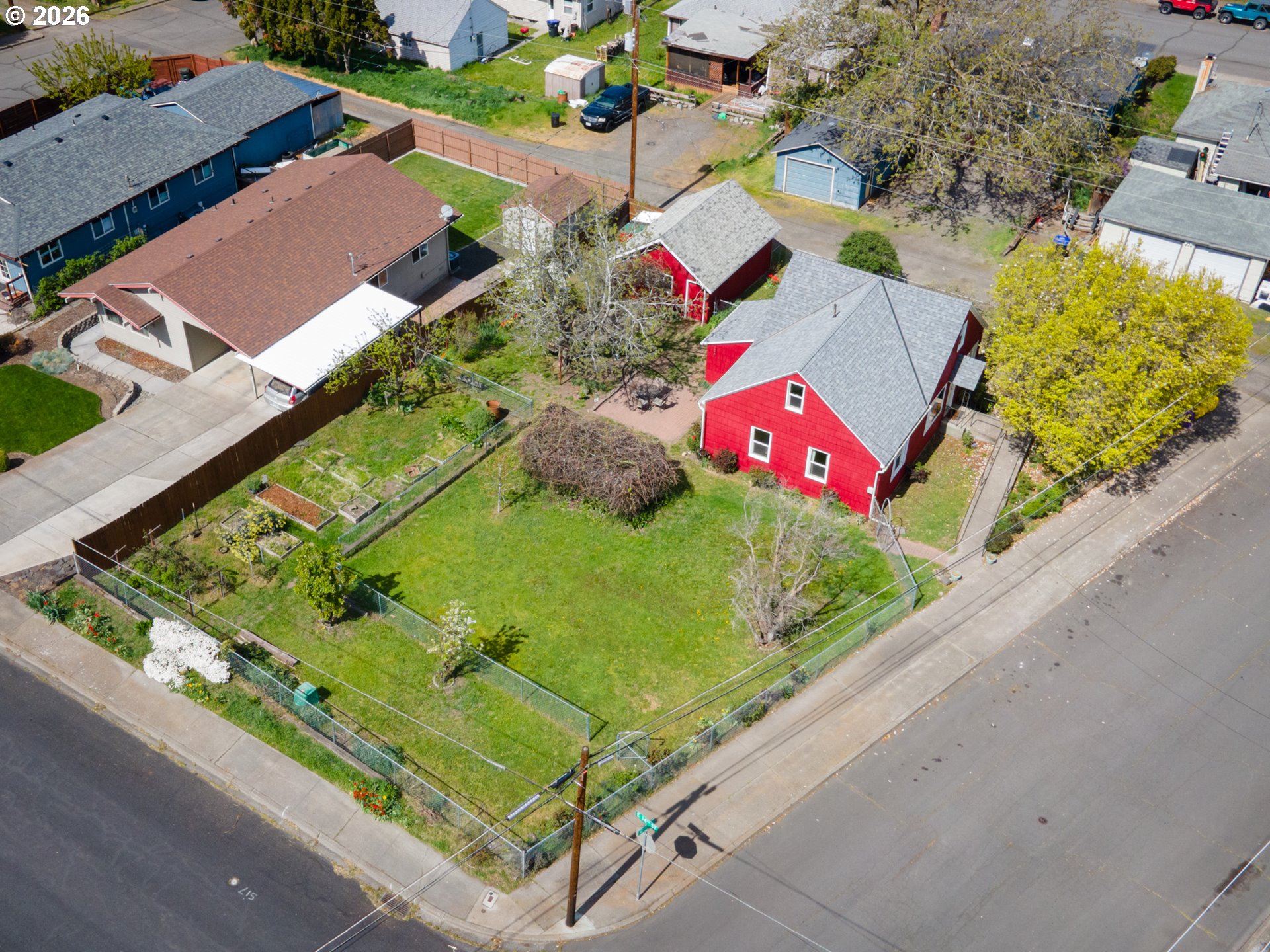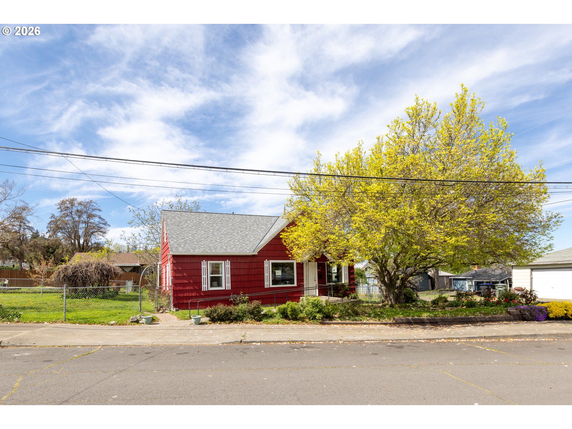 Welcome to this gardeners’ paradise on a spacious double lot in a quiet neighborhood, just a short walk to downtown. This charming 1937 cottage with cedar shingle siding offers a wonderful blend of vintage character and thoughtful updates.The home features two bedrooms on the main level, with an additional bedroom and bonus room in the beautifully finished attic—perfect for flexible living space. Gleaming oak and clear fir wood floors create a warm, inviting atmosphere throughout. A practical mudroom with washer and dryer provides convenient access to the garden and garage.Outside, the fully fenced property is thoughtfully divided into three separate areas, ideal for pets, gardening, or hobby farming, and includes a chicken coop for your backyard homestead dreams. Enjoy a rich variety of established plantings, including producing walnut, pear, and apricot trees, along with raspberries, blackberries, and a table grape arbor. A colorful array of flowers, including many roses, enhances the setting, while two outdoor water spigots make irrigation easy.Major improvements include updated plumbing, insulation, and electrical systems, along with vinyl windows and a new roof installed in 2016. Two heat pumps provide efficient heating and cooling—one serving the main level and a separate mini-split for the upper floor. Foundation and floor stabilization work was completed by TerraFirma in 2018. An access ramp to the front door adds convenience and ADA accessibility.The oversized detached 16x20 garage includes power and offers ample space for a workshop and storage; with an updated garage door, it can also accommodate a vehicle.A rare blend of charm, functionality, and outdoor abundance, this unique property is ready to welcome you home.