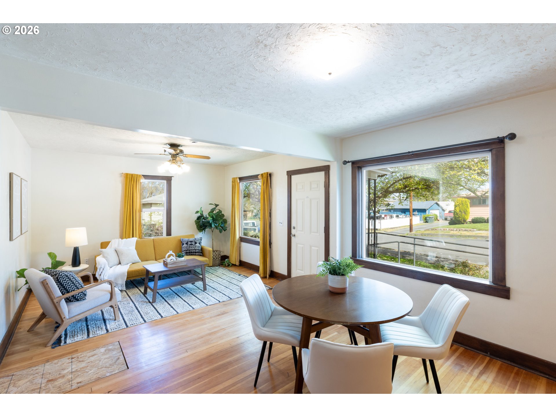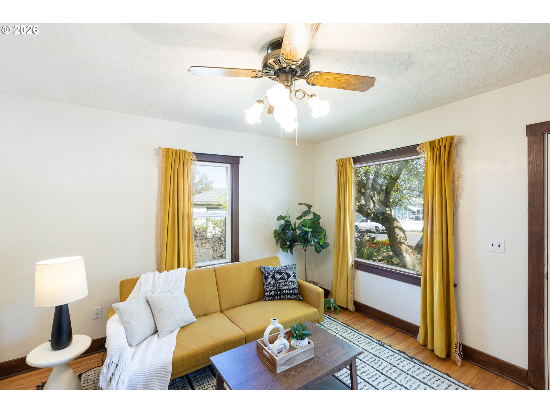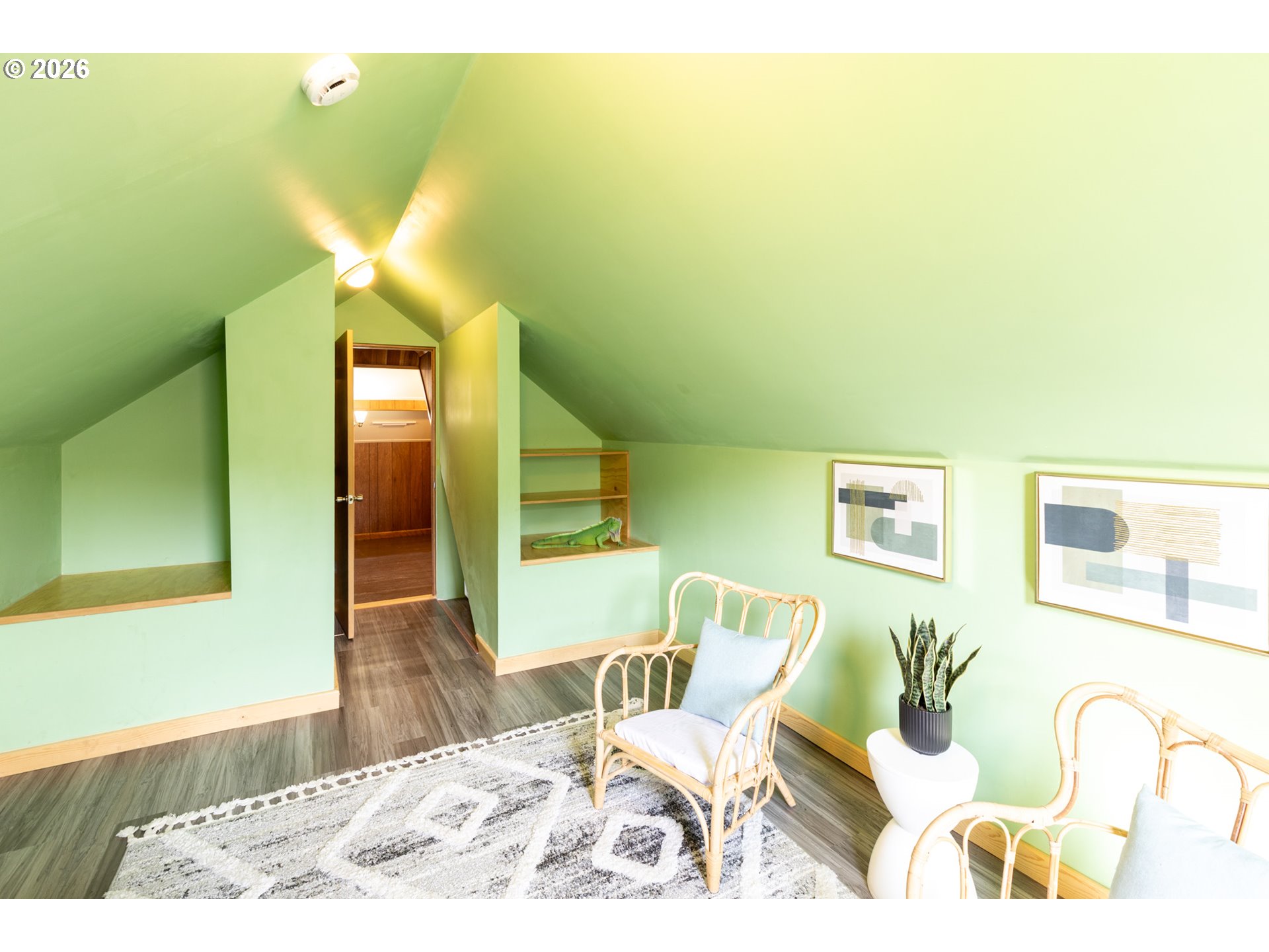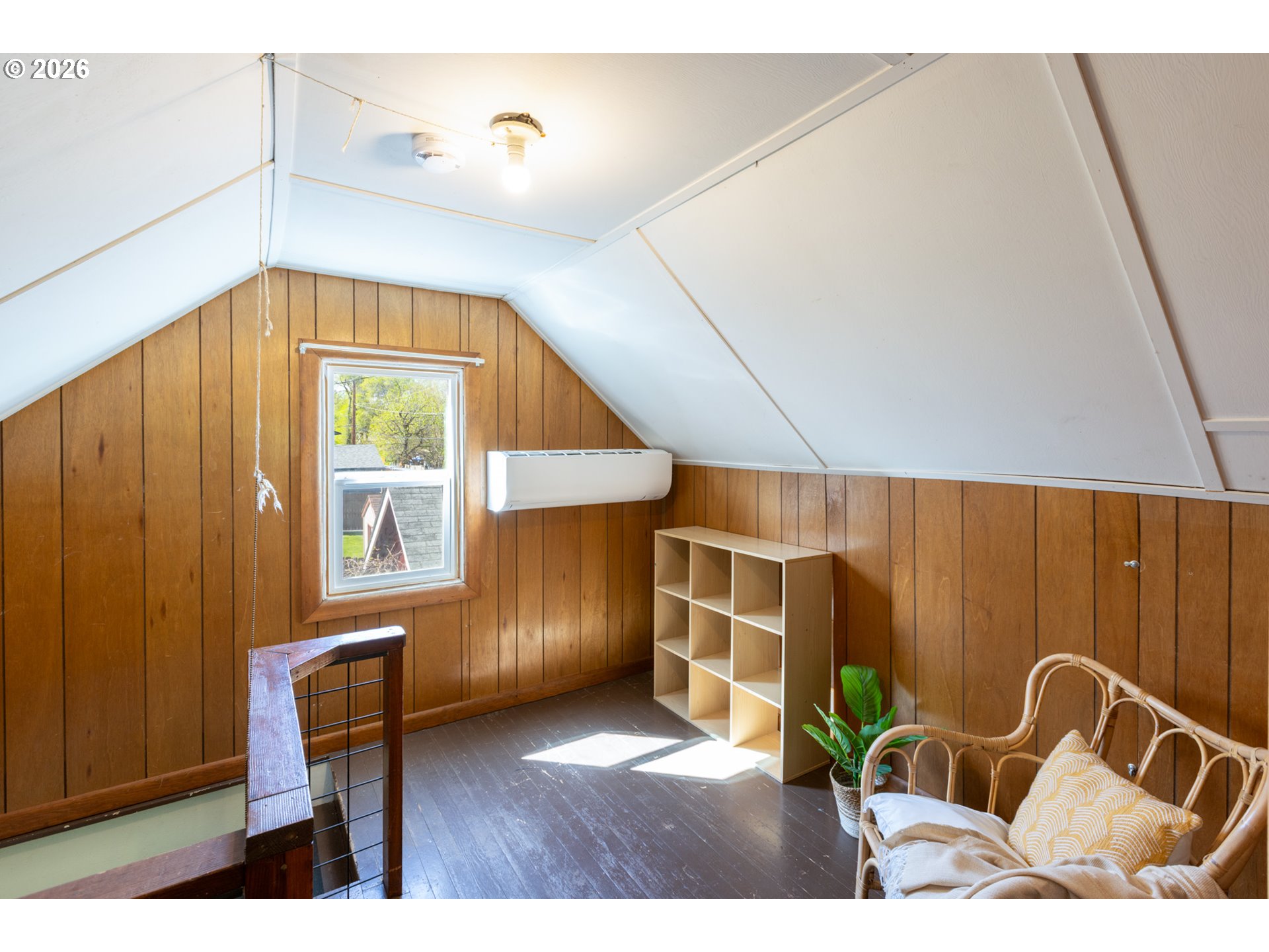 Welcome to this gardeners’ paradise on a spacious double lot in a quiet neighborhood, just a short walk to downtown. This charming 1937 cottage with cedar shingle siding offers a wonderful blend of vintage character and thoughtful updates.The home features two bedrooms on the main level, with an additional bedroom and bonus room in the beautifully finished attic—perfect for flexible living space. Gleaming oak and clear fir wood floors create a warm, inviting atmosphere throughout. A practical mudroom with washer and dryer provides convenient access to the garden and garage.Outside, the fully fenced property is thoughtfully divided into three separate areas, ideal for pets, gardening, or hobby farming, and includes a chicken coop for your backyard homestead dreams. Enjoy a rich variety of established plantings, including producing walnut, pear, and apricot trees, along with raspberries, blackberries, and a table grape arbor. A colorful array of flowers, including many roses, enhances the setting, while two outdoor water spigots make irrigation easy.Major improvements include updated plumbing, insulation, and electrical systems, along with vinyl windows and a new roof installed in 2016. Two heat pumps provide efficient heating and cooling—one serving the main level and a separate mini-split for the upper floor. Foundation and floor stabilization work was completed by TerraFirma in 2018. An access ramp to the front door adds convenience and ADA accessibility.The oversized detached 16x20 garage includes power and offers ample space for a workshop and storage; with an updated garage door, it can also accommodate a vehicle.A rare blend of charm, functionality, and outdoor abundance, this unique property is ready to welcome you home.