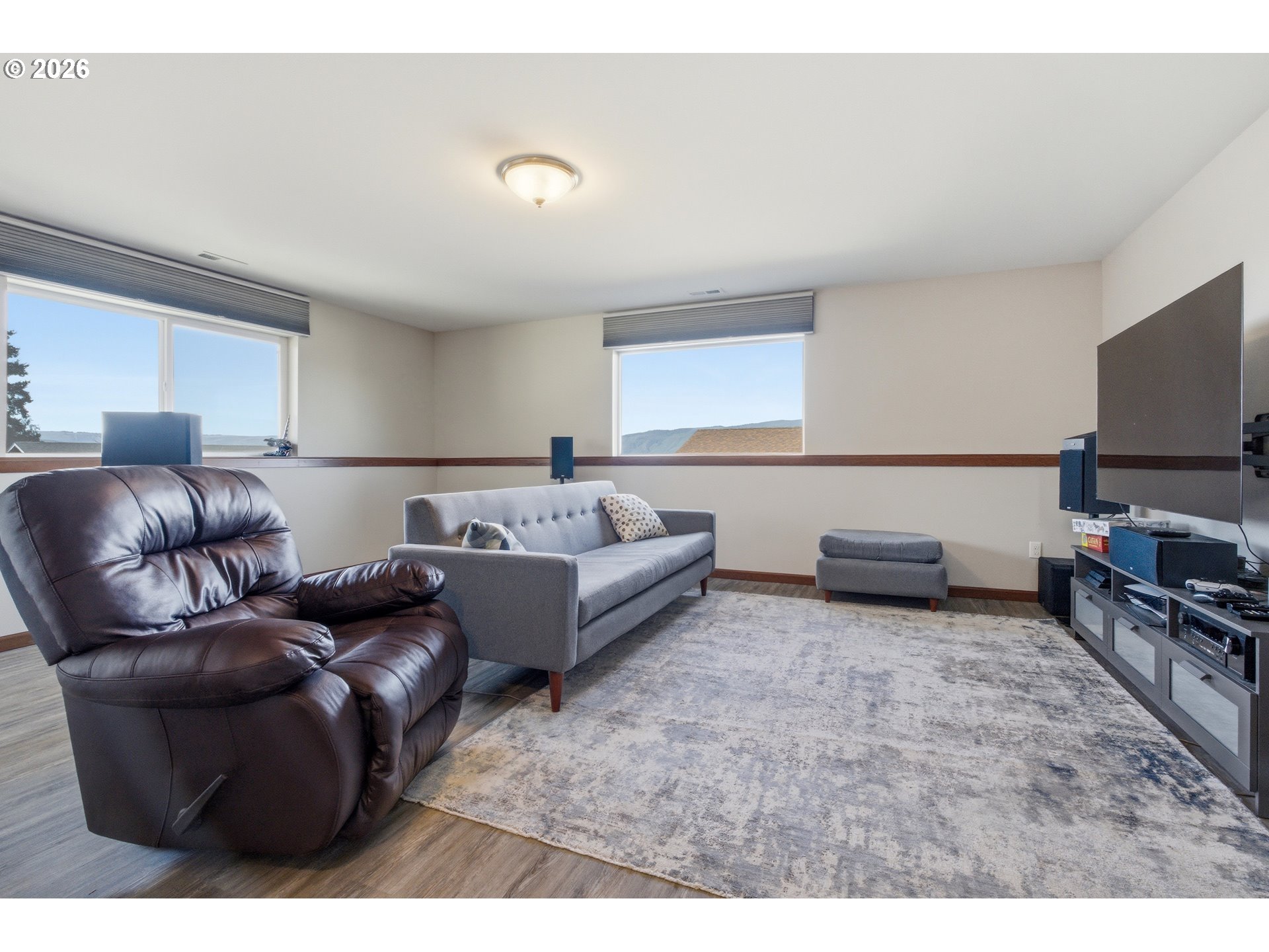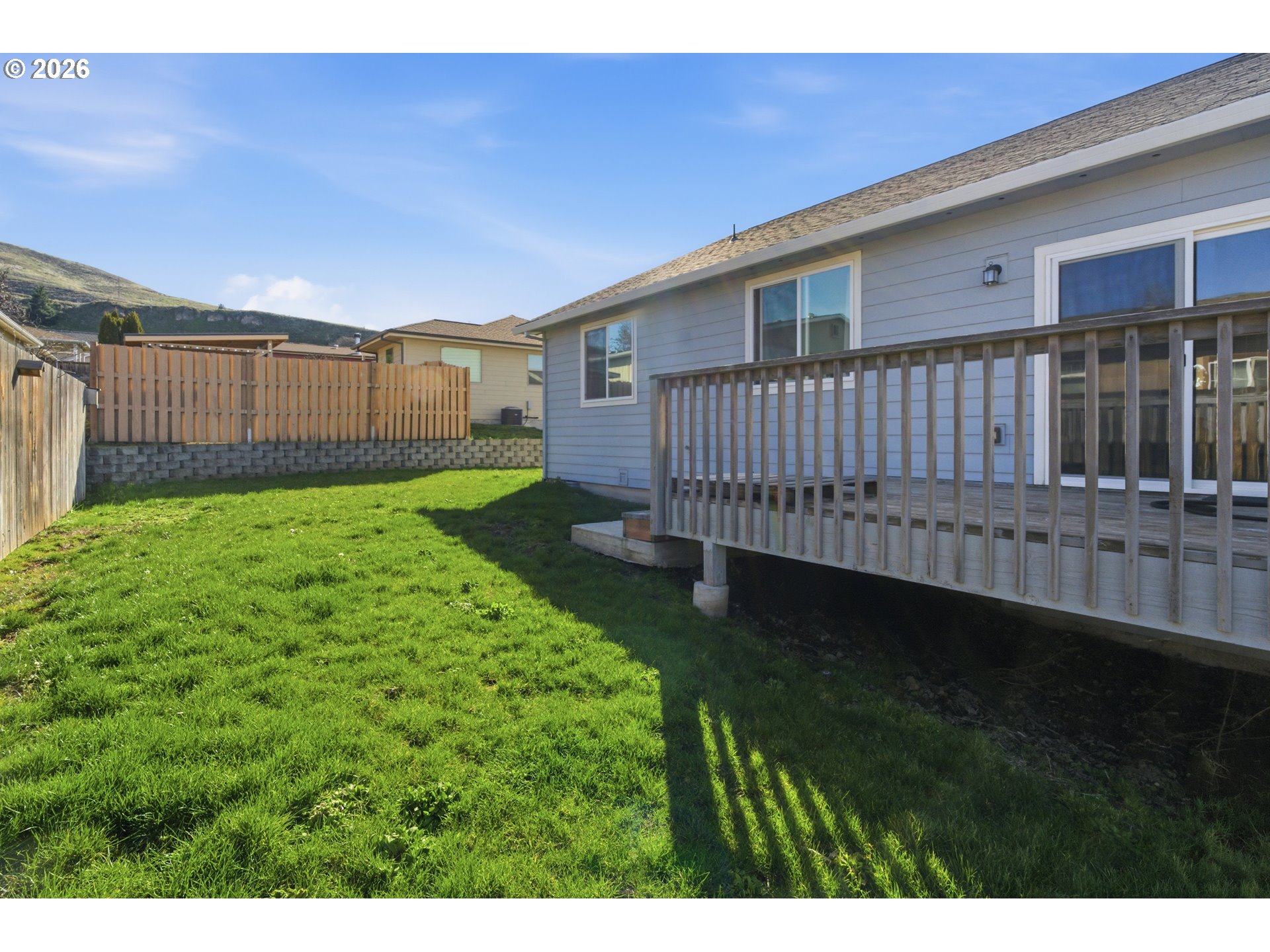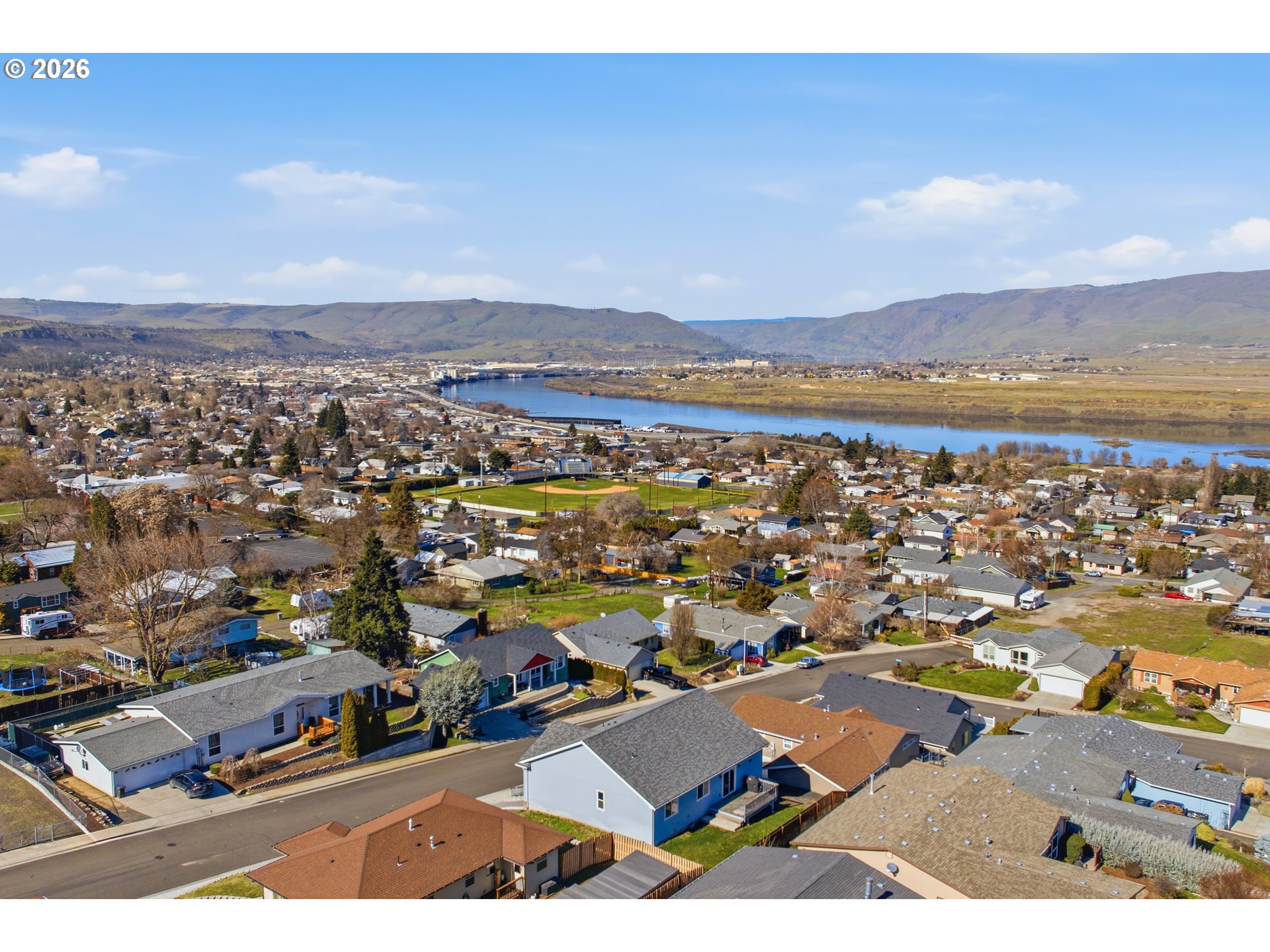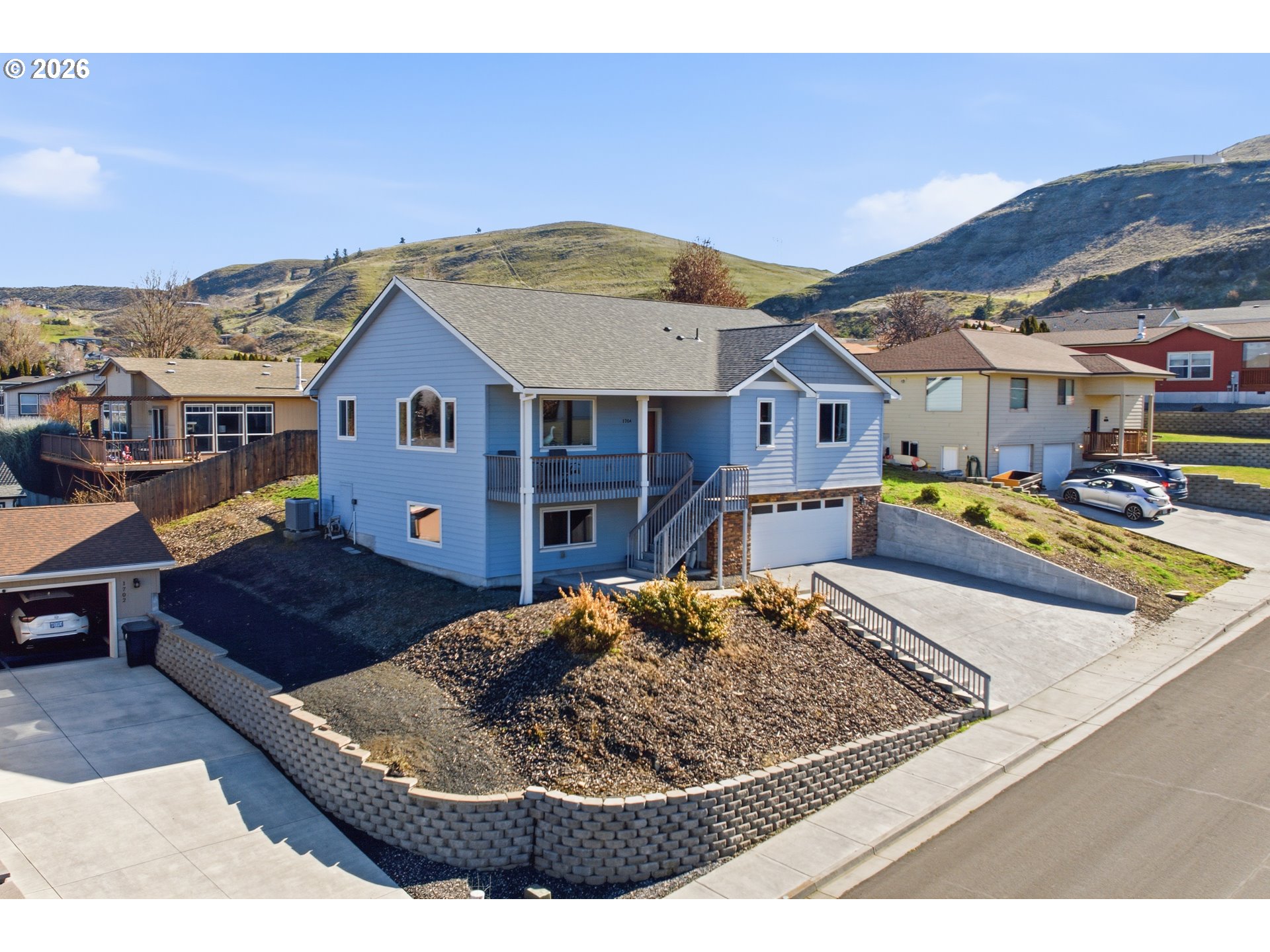 This thoughtfully designed 3-bedroom, 2.5-bath home offers elevated Columbia River and city light views from a quiet hillside setting in The Dalles. Built in 2019, the 2,202 square foot layout balances comfort and functionality, with a main-level living design that captures natural light and frames the surrounding landscape.Vaulted ceilings and expansive windows create an open, airy feel throughout the primary living spaces. The kitchen anchors the home with granite countertops, hickory cabinetry, pantry storage, and island seating — seamlessly connecting to the dining and living areas for both everyday living and effortless entertaining. The main-level primary suite provides a private retreat, complete with a walk-in closet and tiled bath.The daylight lower level expands the home’s versatility, offering a spacious bonus room and half bath ideal for a media space, home office, gym, or guest overflow. An oversized two-car garage provides additional storage and functionality.Outdoor living is equally inviting, with deck space positioned to take in river and valley views, along with a fenced backyard and irrigation for easy maintenance.Conveniently located near downtown amenities while maintaining a sense of elevation and privacy, this home blends scenic beauty, modern construction, and flexible living space in one of The Dalles’ most desirable settings.