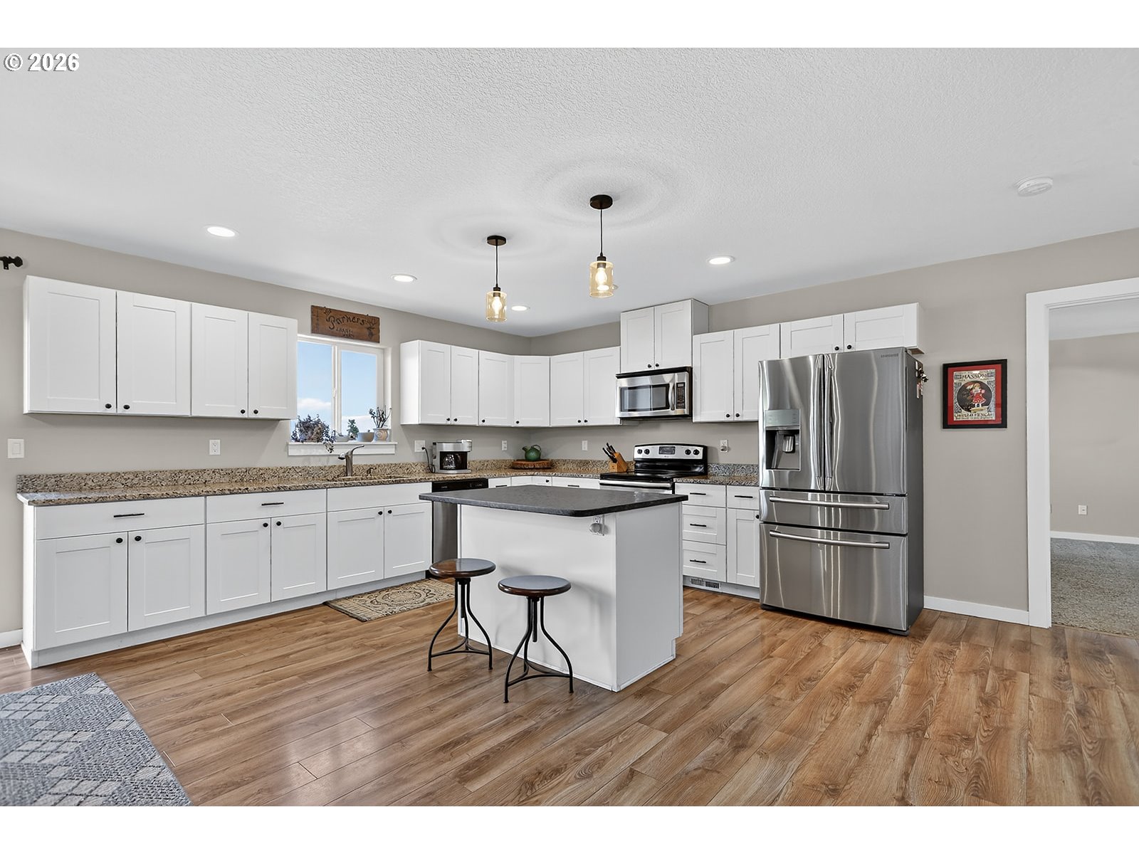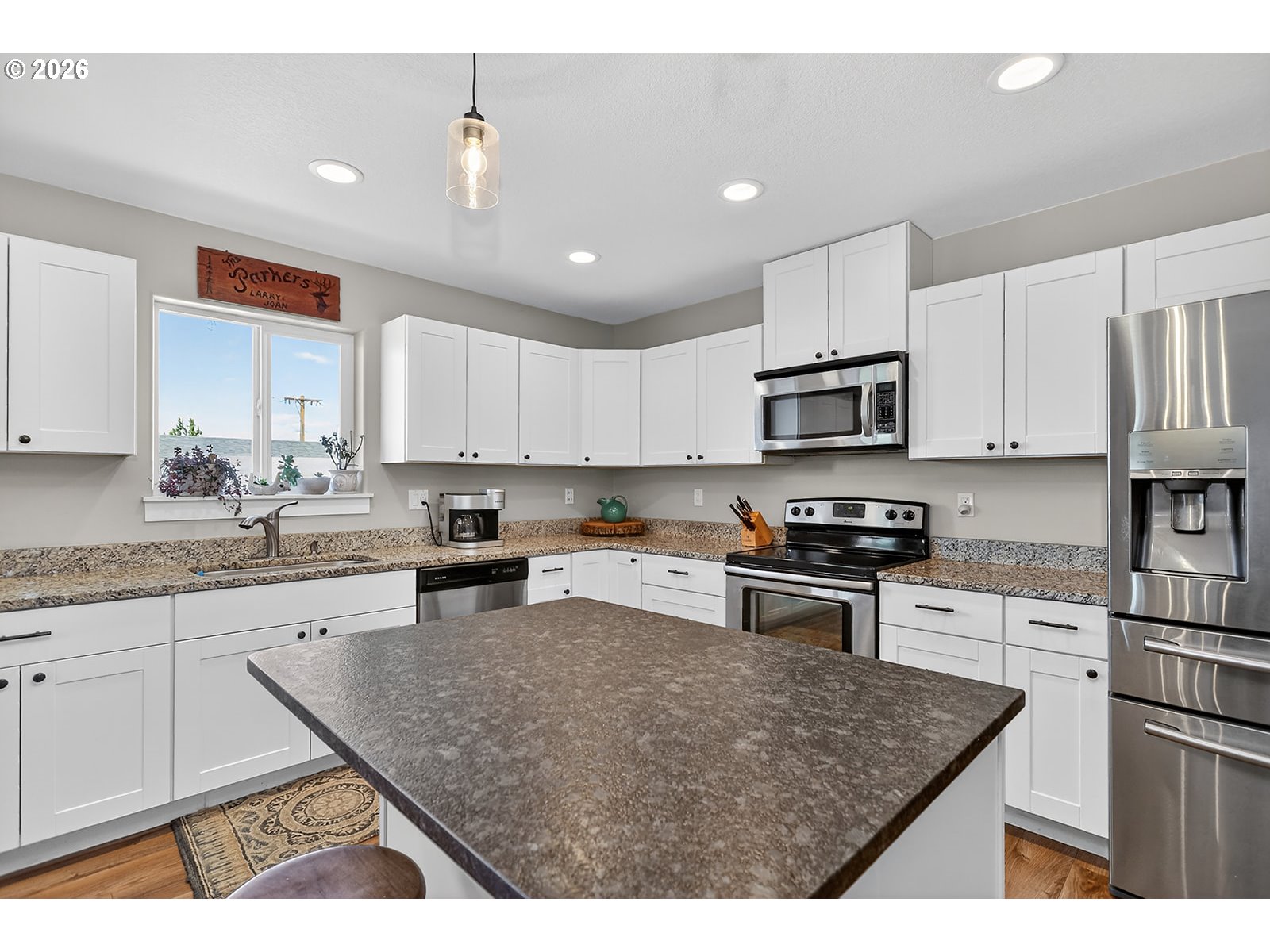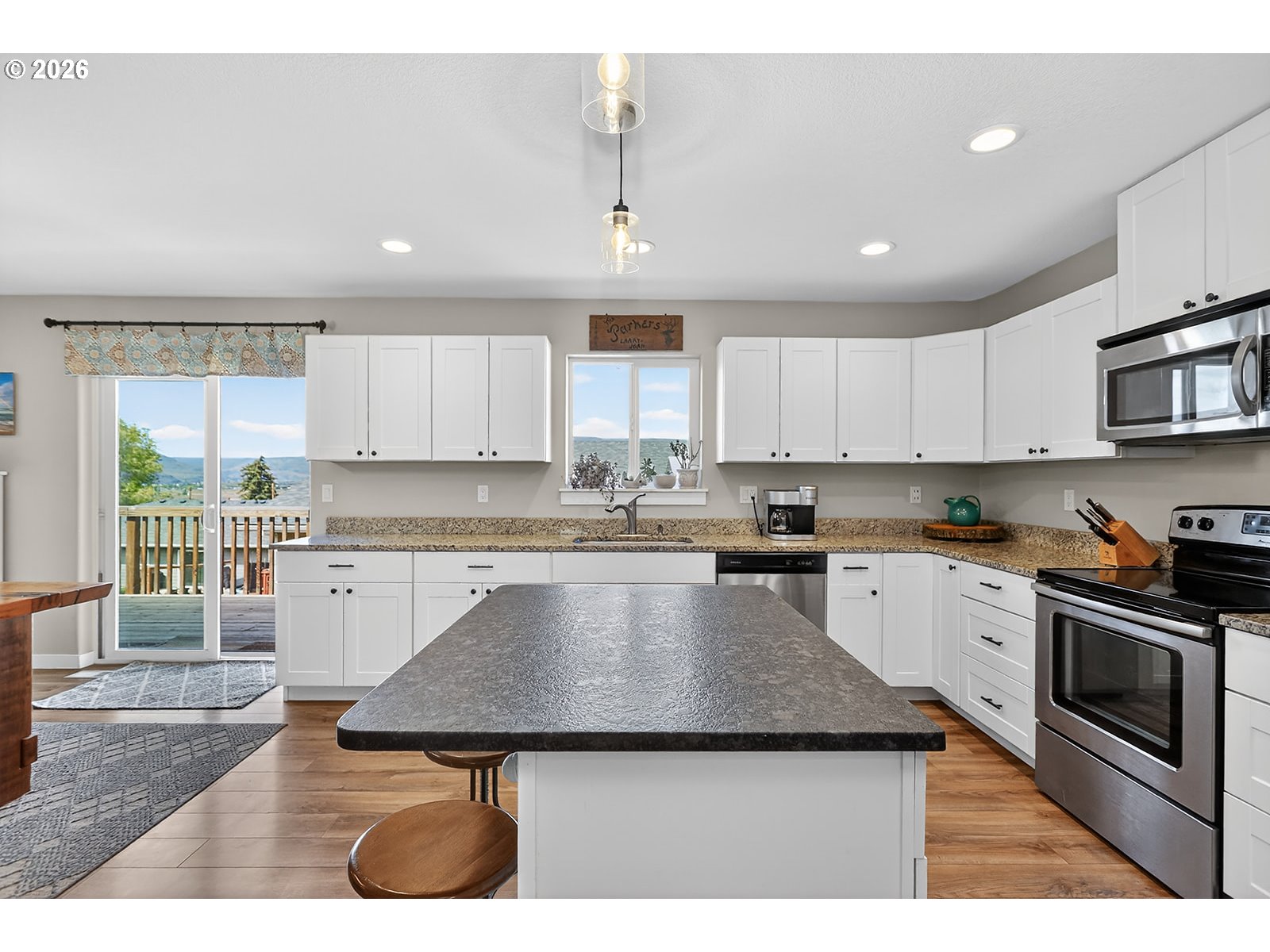 Beautifully maintained single-level home on the east side of The Dalles. This well-built residence features an open-concept kitchen featuring stainless steel appliances and granite countertops and a dining and living area that flows seamlessly for a comfortable space and out to the back deckâperfect for everyday living and entertaining. The spacious primary suite includes an ensuite bathroom and a walk-in closet. Three additional well-appointed bedrooms are situated on the opposite side of the home, along with a full bathroom, offering a functional and private layout. A dedicated laundry room leads into the finished two-car garage. The wide driveway and gravel side yard provide ample space for boat and RV parking. The back yard is fully fenced and accessible oversized crawlspace provides additional storage. Enjoy the ease of low-maintenance living in a great location near Thompson Track, with convenient access to the highway and all local amenities.