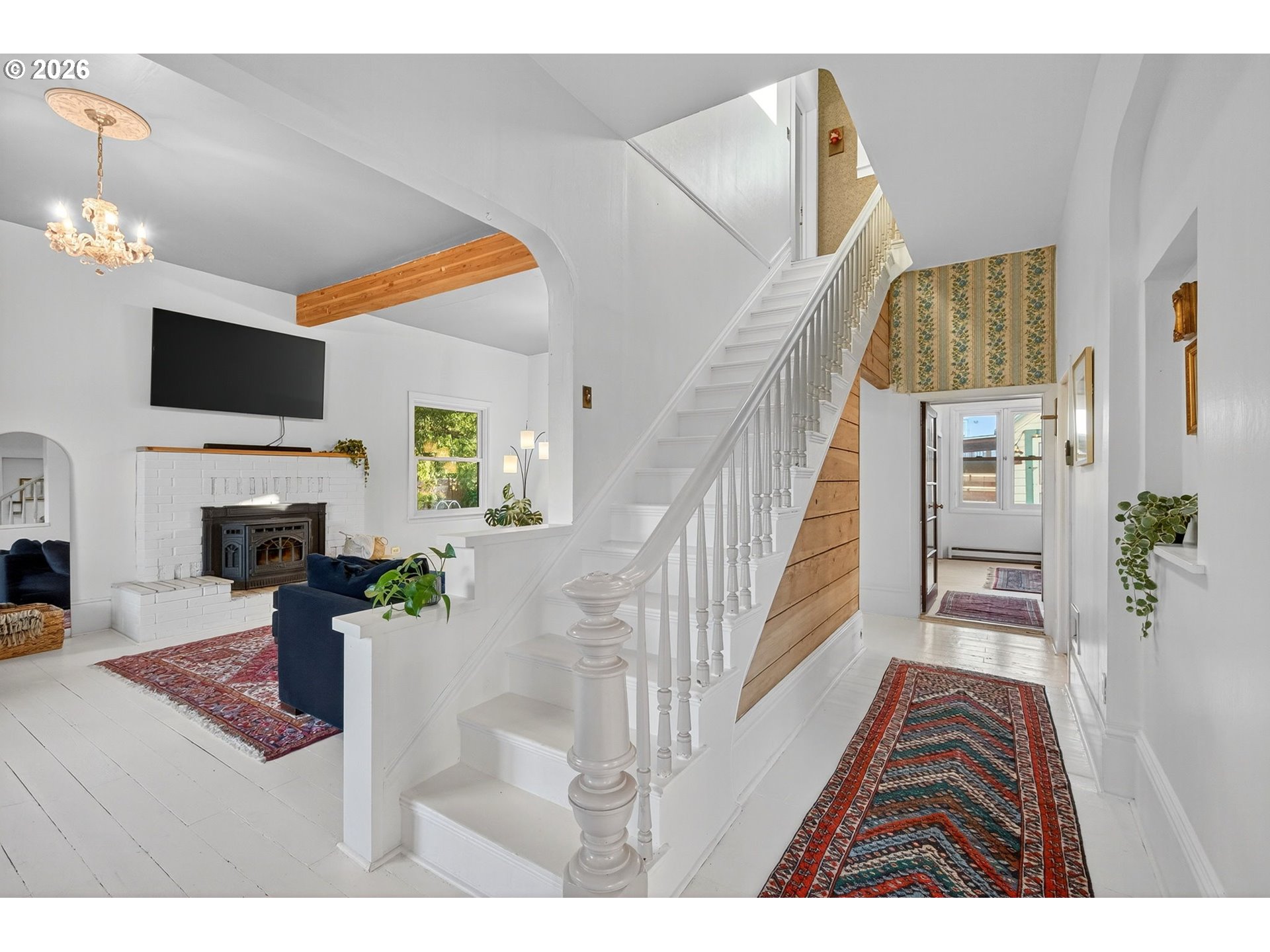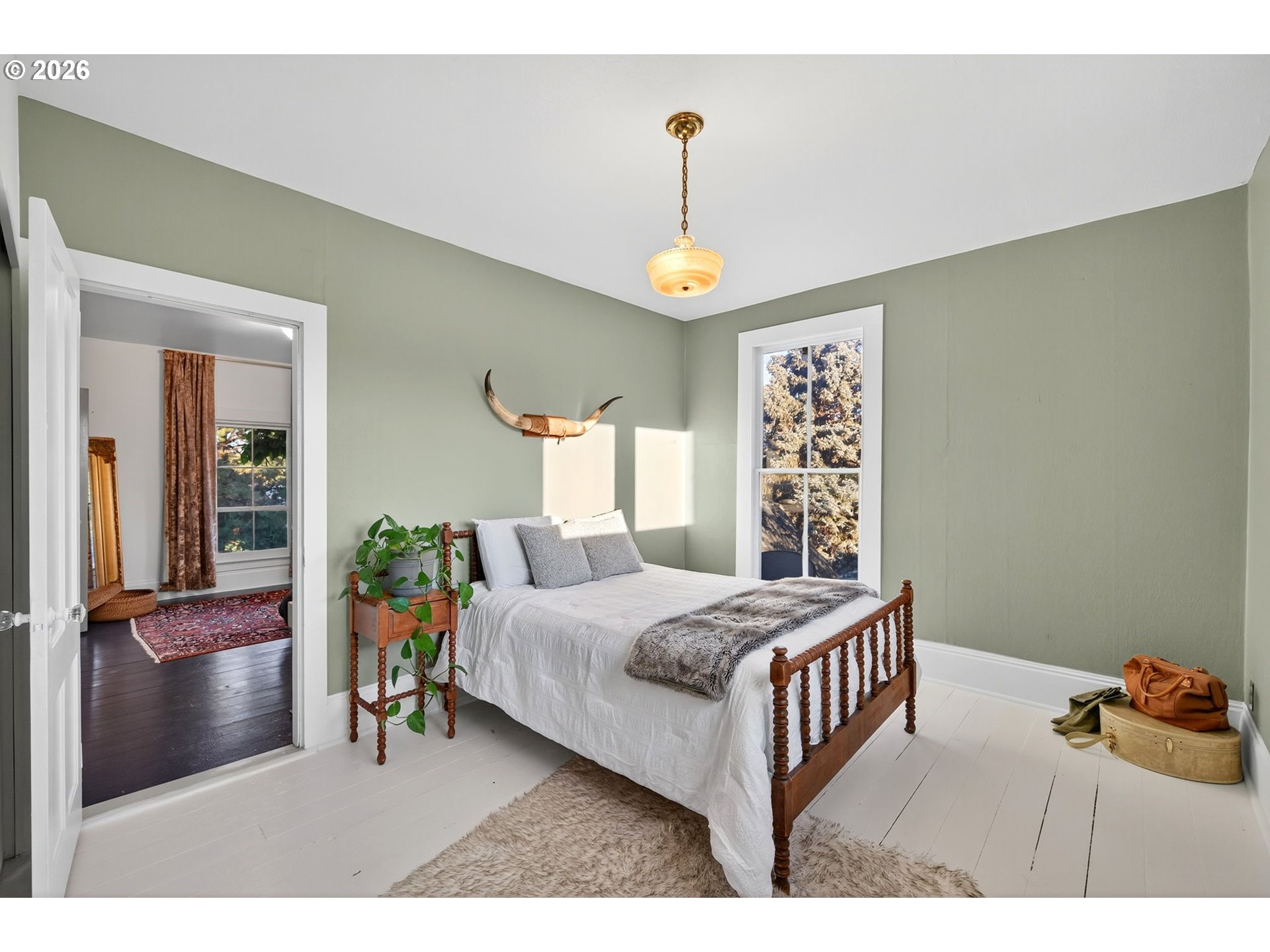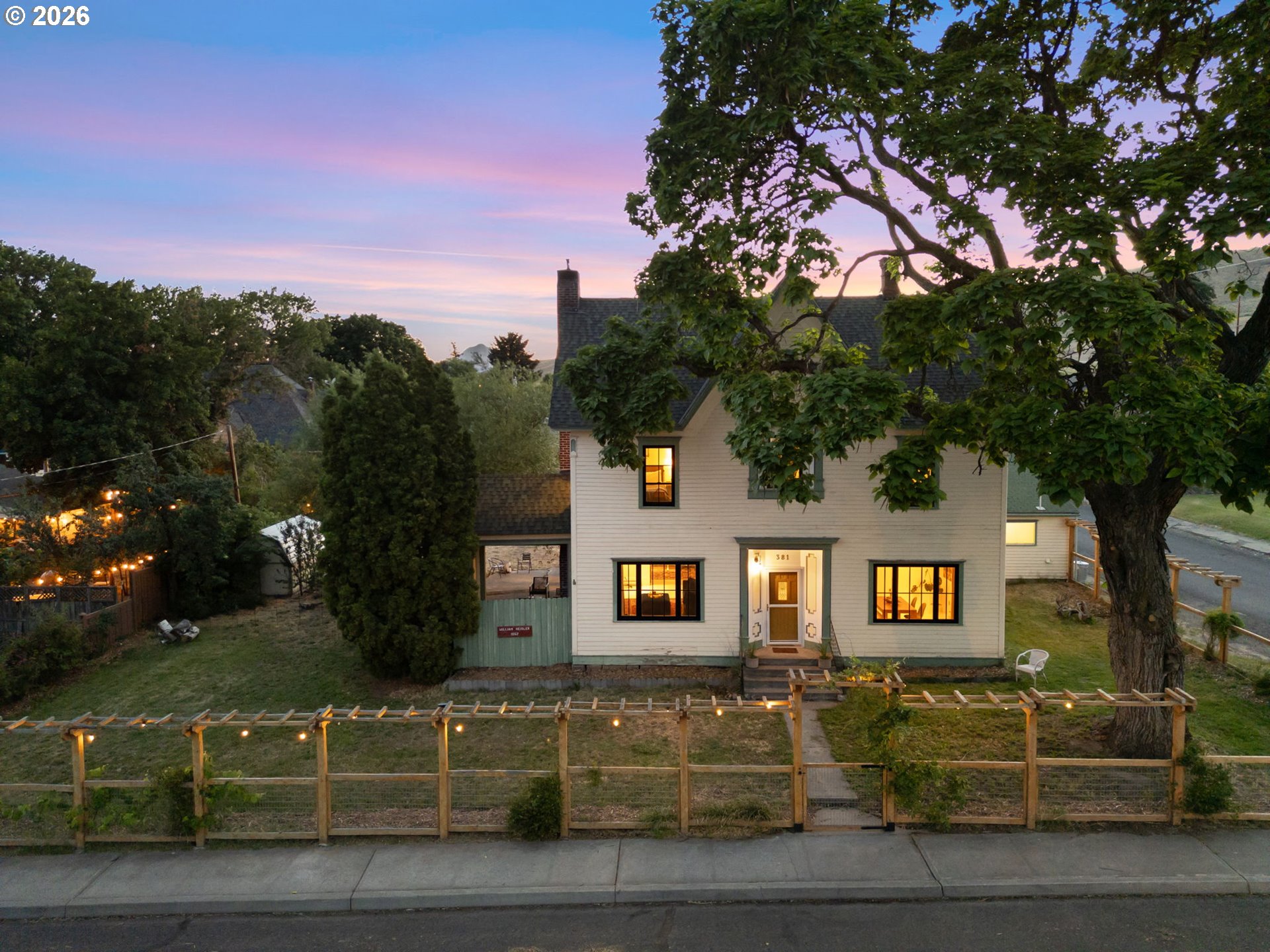 Set on a sunny corner lot in the heart of Dufur, Oregon, this 4-bedroom, 2-bath home offers 2,552 sq ft of historic character, thoughtful updates, and sweeping views of Mt. Hood and the surrounding high-desert landscape. Inside, 11.5-foot ceilings, original wood floors, and expansive windows create a light-filled, airy feel throughout. Modern upgrades include updated plumbing and electrical, high-efficiency Fibrex by Andersen windows, and energy-efficient mini splits. These improvements bring comfort and efficiency while preserving the home’s original integrity. The outdoor spaces reflect the pace and practicality of small-town living, with a fenced yard, covered patio, raised garden beds, chicken coop, garden shed, and original ice cellar. This is a rare combination of function and heritage. An attached two-car garage adds everyday convenience. Built in 1862 by William Heisler, one of Dufur’s earliest settlers, this is one of the town’s oldest surviving homes. It has been carefully maintained for over 160 years and remains deeply rooted in the history of the area. What sets this property apart is its connection to Dufur itself, a close-knit, character-rich town where life moves a little slower and community still matters. Walk to local cafés, markets, and seasonal events, and experience a lifestyle shaped by open skies and a strong sense of place. With easy access to The Dalles, the Columbia River Gorge, Mt. Hood recreation, and the Deschutes River, this location offers both quiet retreat and proximity to some of the Pacific Northwest’s most iconic landscapes. A rare opportunity to own a piece of Oregon history, set in one of the Columbia Gorge’s most authentic and quietly compelling communities.
