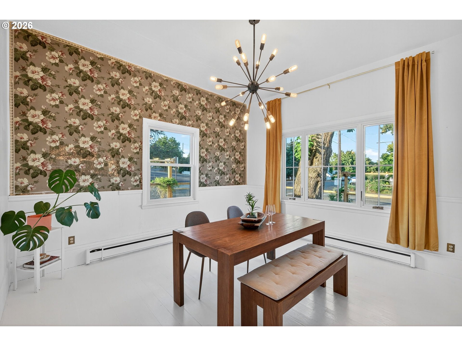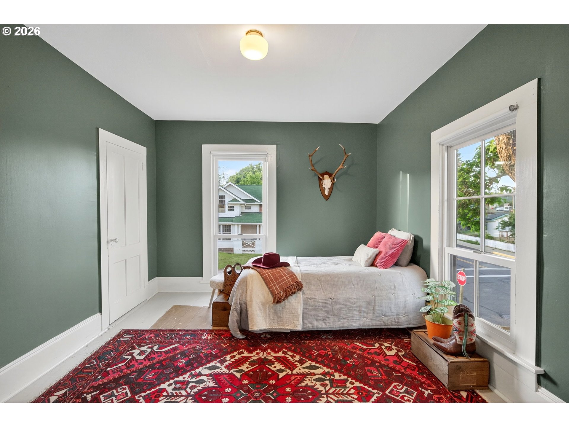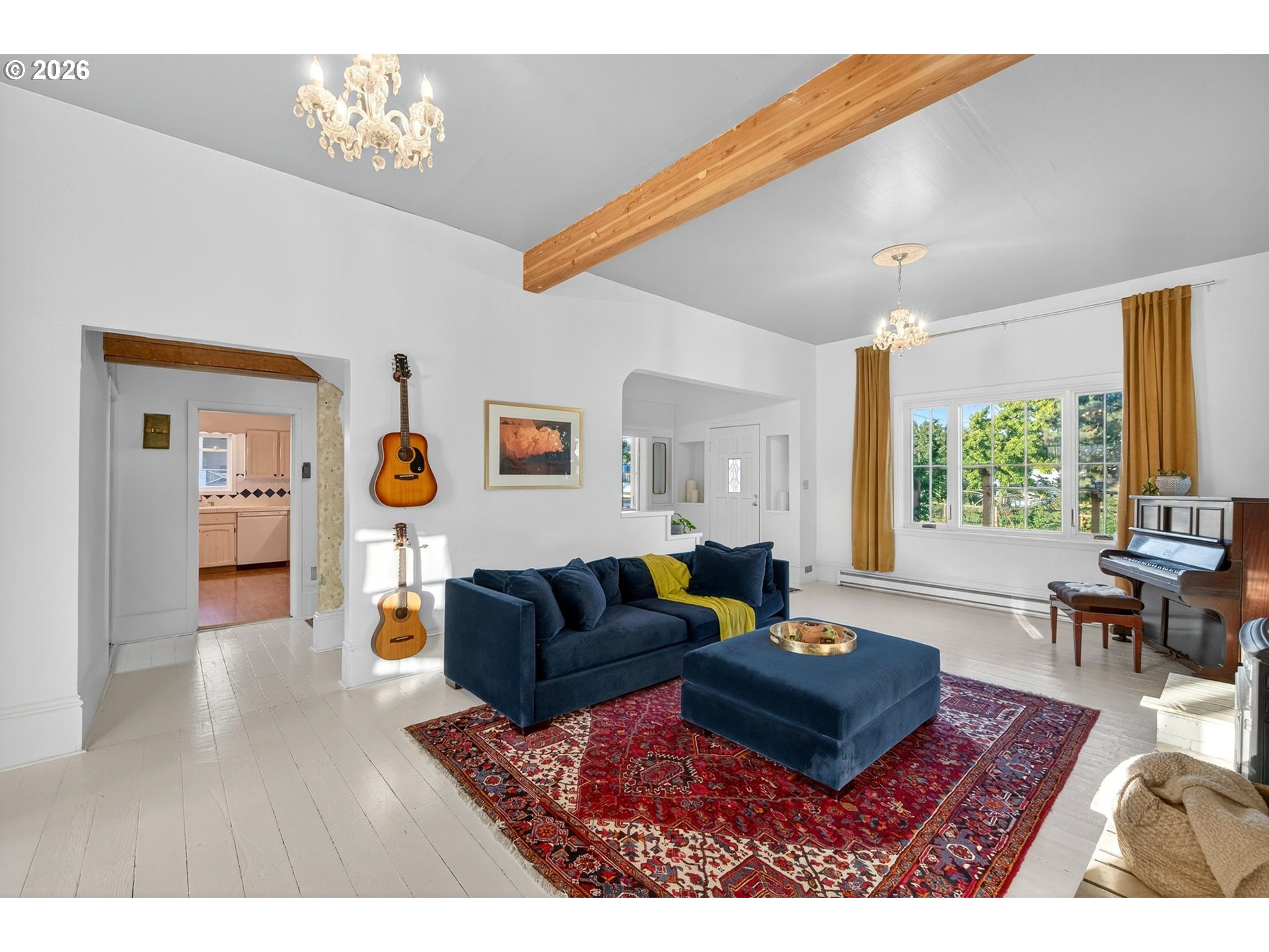 Set on a sunny corner lot in the heart of Dufur, Oregon, this 4-bedroom, 2-bath home offers 2,552 sq ft of historic character, thoughtful updates, and sweeping views of Mt. Hood and the surrounding high-desert landscape. Inside, 11.5-foot ceilings, original wood floors, and expansive windows create a light-filled, airy feel throughout. Modern upgrades include updated plumbing and electrical, high-efficiency Fibrex by Andersen windows, and energy-efficient mini splits. These improvements bring comfort and efficiency while preserving the home’s original integrity. The outdoor spaces reflect the pace and practicality of small-town living, with a fenced yard, covered patio, raised garden beds, chicken coop, garden shed, and original ice cellar. This is a rare combination of function and heritage. An attached two-car garage adds everyday convenience. Built in 1862 by William Heisler, one of Dufur’s earliest settlers, this is one of the town’s oldest surviving homes. It has been carefully maintained for over 160 years and remains deeply rooted in the history of the area. What sets this property apart is its connection to Dufur itself, a close-knit, character-rich town where life moves a little slower and community still matters. Walk to local cafés, markets, and seasonal events, and experience a lifestyle shaped by open skies and a strong sense of place. With easy access to The Dalles, the Columbia River Gorge, Mt. Hood recreation, and the Deschutes River, this location offers both quiet retreat and proximity to some of the Pacific Northwest’s most iconic landscapes. A rare opportunity to own a piece of Oregon history, set in one of the Columbia Gorge’s most authentic and quietly compelling communities.