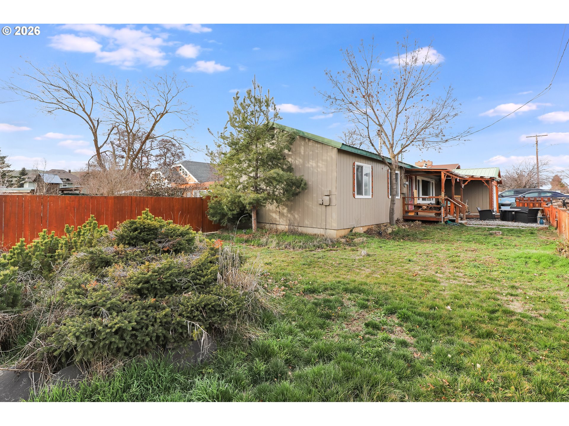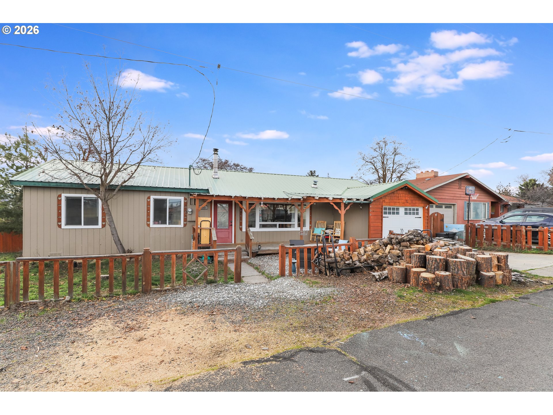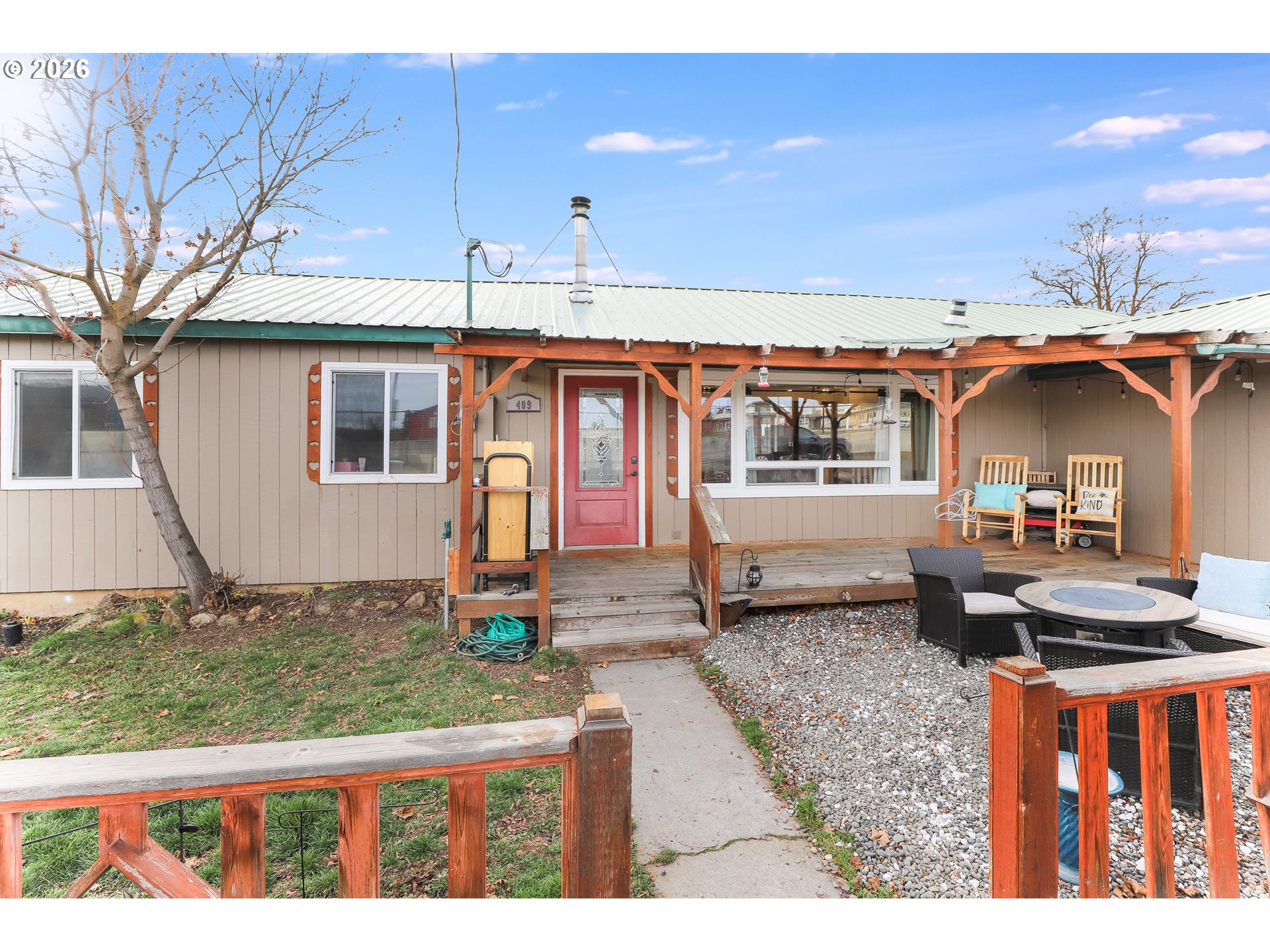 Small-town charm meets everyday comfort in this inviting home in Dufur! This 3-bedroom, 1-bath home offers 1,092 sq ft of easy living on a spacious corner lot with a fully fenced backyard perfect for pets, play, or relaxing outdoors.Inside, you’ll find vinyl flooring throughout and a bright kitchen featuring stainless steel appliances and a convenient eat-at bar for casual meals or entertaining. A cozy wood stove adds warmth and character, making the living space feel extra inviting during cooler months.The home also includes a bonus flex room ideal for a home office, hobby space, workout area, or guest overflow. A one-car garage with attic storage provides extra room for tools, gear, and seasonal items.Enjoy your morning coffee or unwind in the evening on the front patio, while the metal roof adds durability and low-maintenance peace of mind. With its functional layout, great outdoor space, and welcoming small-town atmosphere, this home is a fantastic opportunity to enjoy life in Dufur.