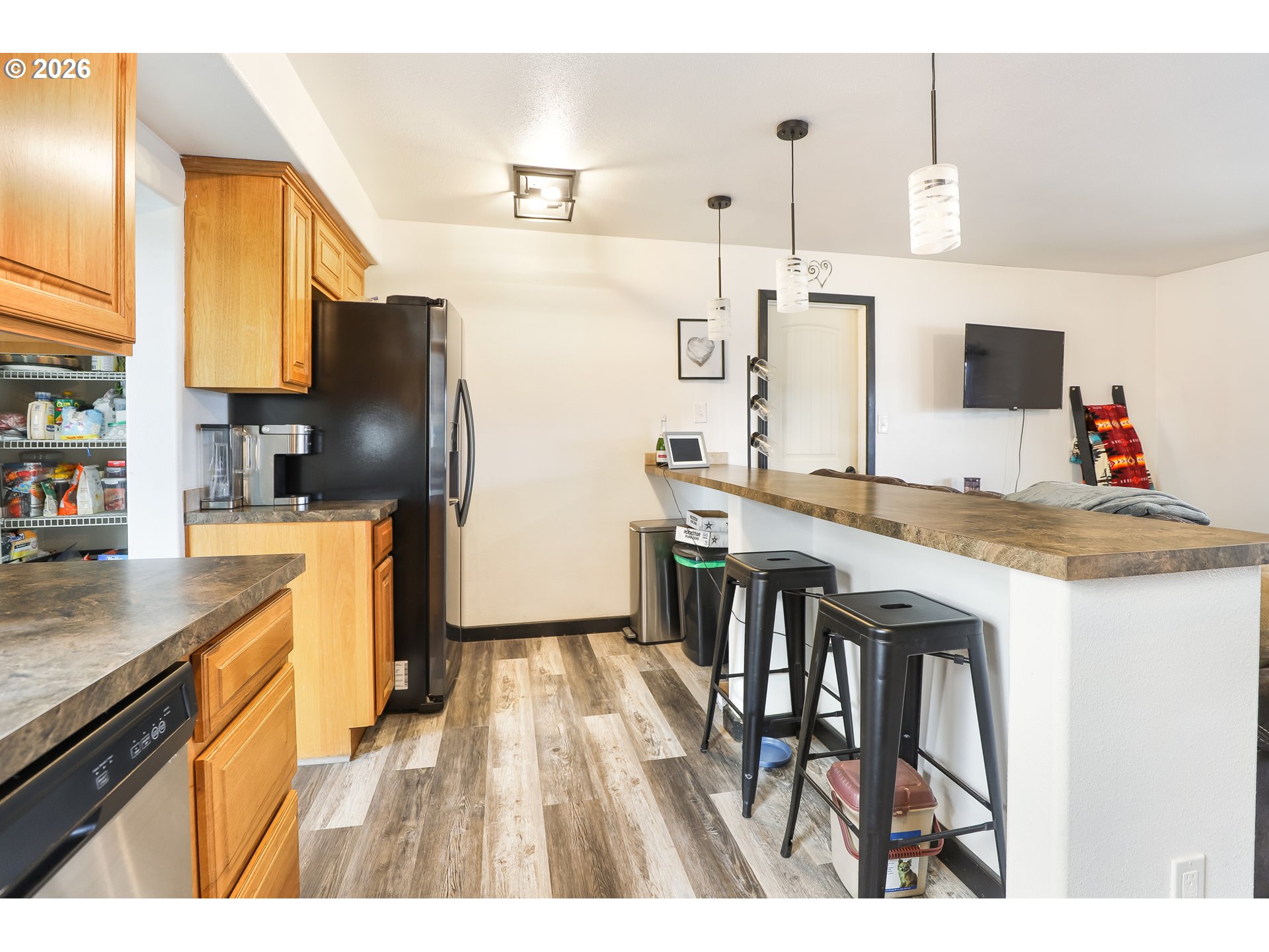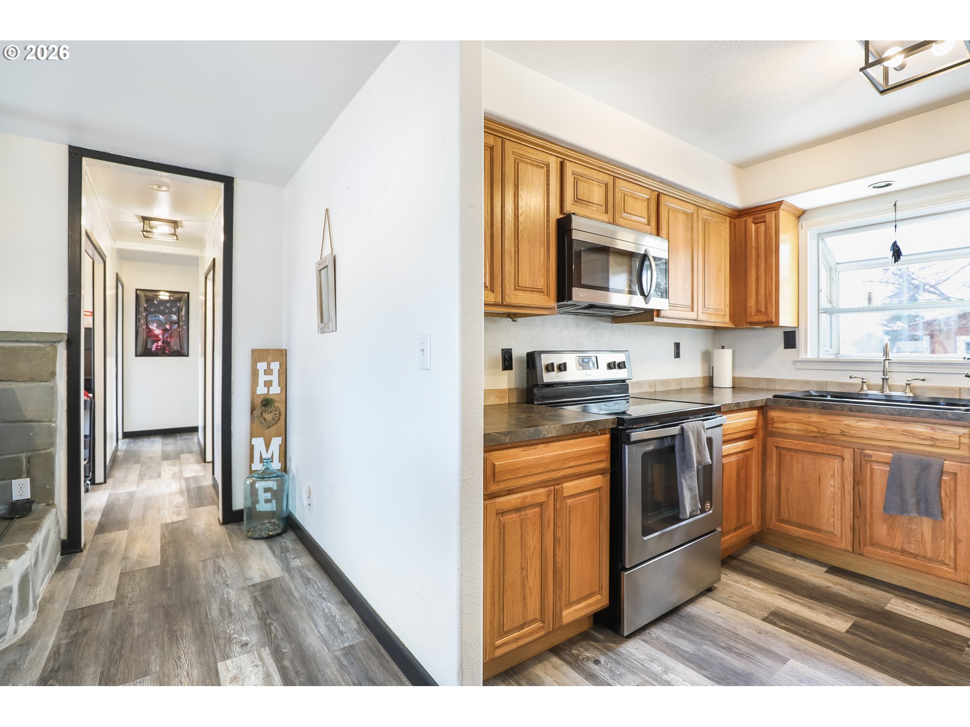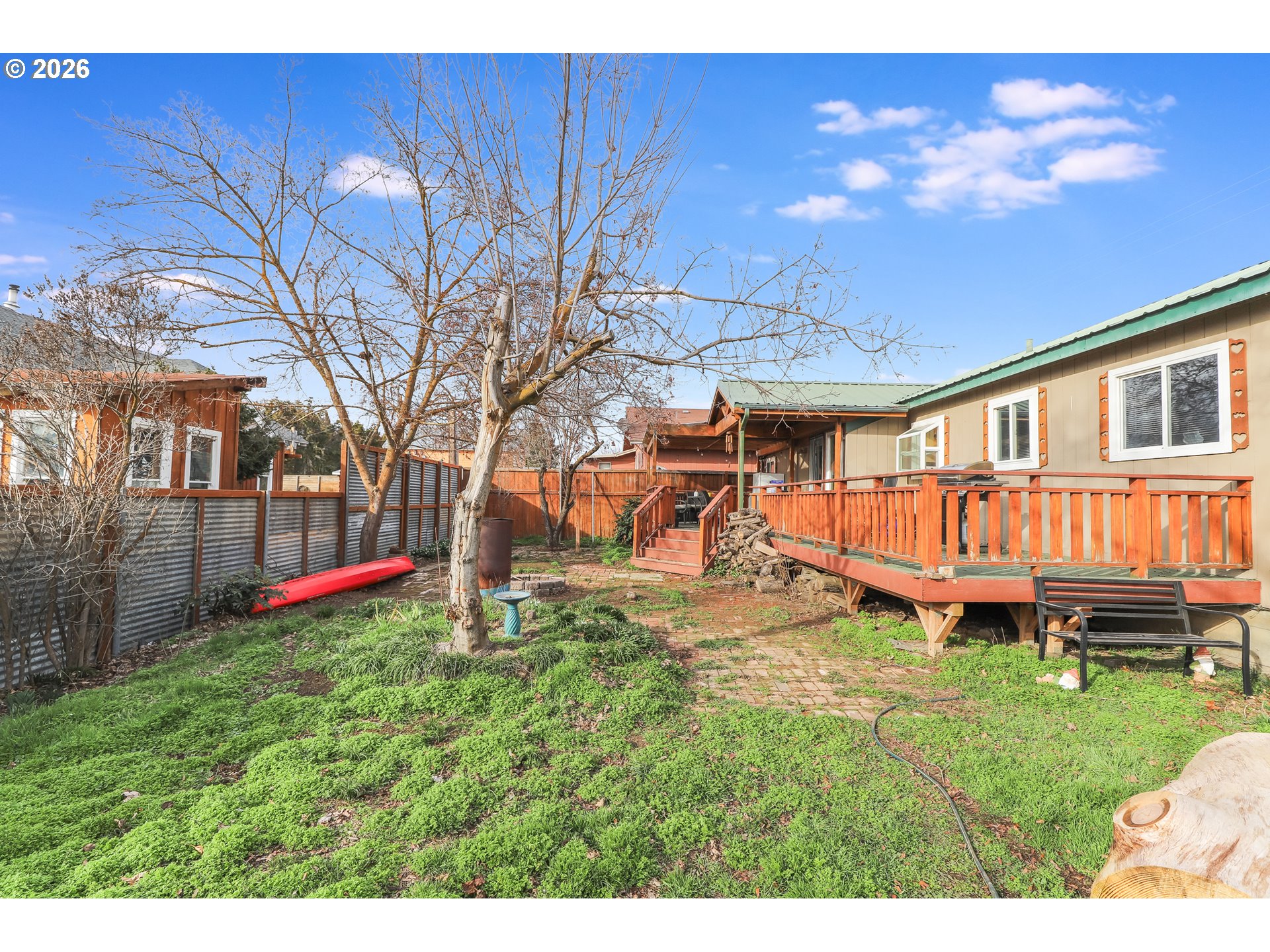 Small-town charm meets everyday comfort in this inviting home in Dufur! This 3-bedroom, 1-bath home offers 1,092 sq ft of easy living on a spacious corner lot with a fully fenced backyard perfect for pets, play, or relaxing outdoors.Inside, you’ll find vinyl flooring throughout and a bright kitchen featuring stainless steel appliances and a convenient eat-at bar for casual meals or entertaining. A cozy wood stove adds warmth and character, making the living space feel extra inviting during cooler months.The home also includes a bonus flex room ideal for a home office, hobby space, workout area, or guest overflow. A one-car garage with attic storage provides extra room for tools, gear, and seasonal items.Enjoy your morning coffee or unwind in the evening on the front patio, while the metal roof adds durability and low-maintenance peace of mind. With its functional layout, great outdoor space, and welcoming small-town atmosphere, this home is a fantastic opportunity to enjoy life in Dufur.