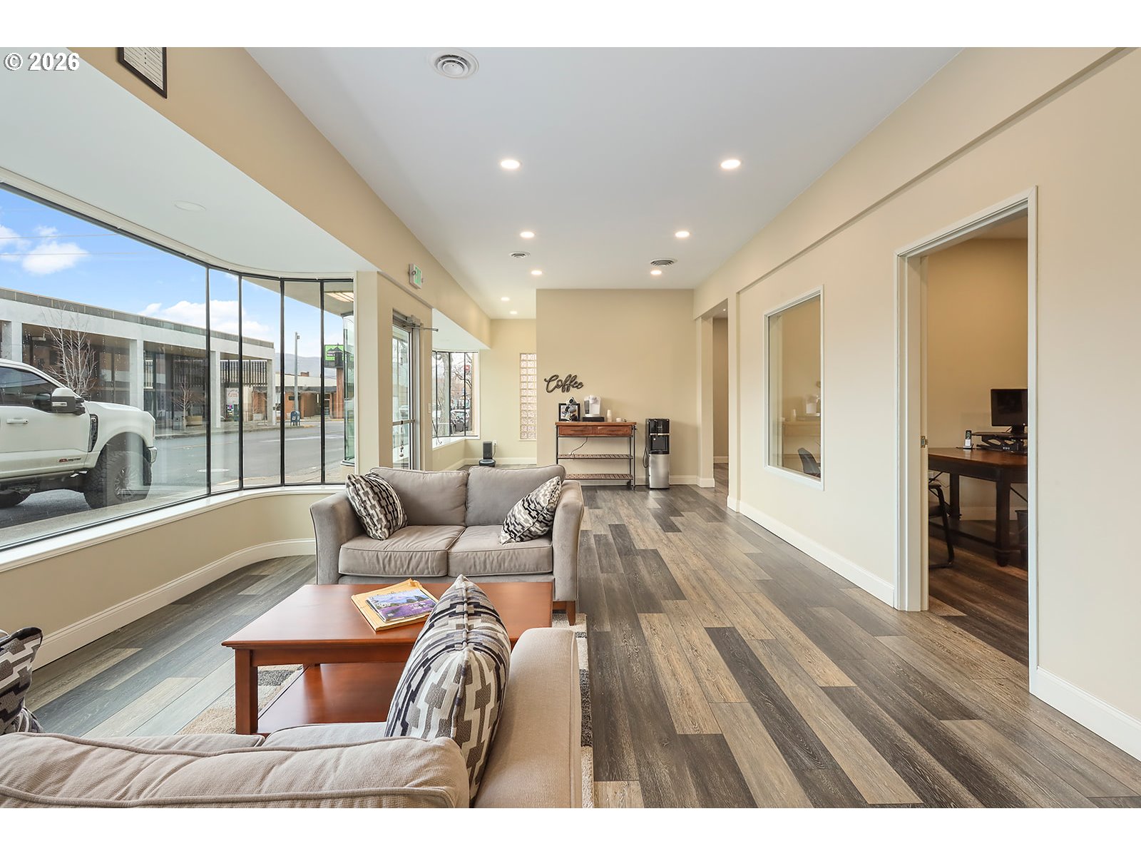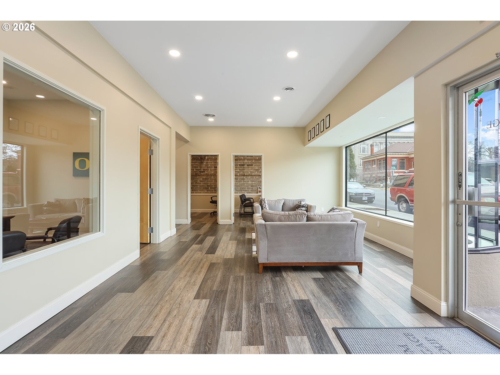 Incredible price reduction on a recently remodeled commercial building in the heart of The Dalles Business district. This can be used in the current office space setting (5 offices) or converted to a business showroom or a retail store. Great alley access with private 4 vehicle parking. There is also an additional 1300+- building that needs a roof replacement ( or could be torn down, city has approved) and can be used for storage. There is a full bathroom with shower and a small kitchenette. The building should be worry free for years to come. Updates: electrical, plumbing, HVAC, newer roof on main building, flooring, sheetrock and interior exterior paint. It is basically a new building. Liberal CBC Zoning allows for a broad range of business opportunities. Clean Phase 2 on file, all items have been removed from the storage building.